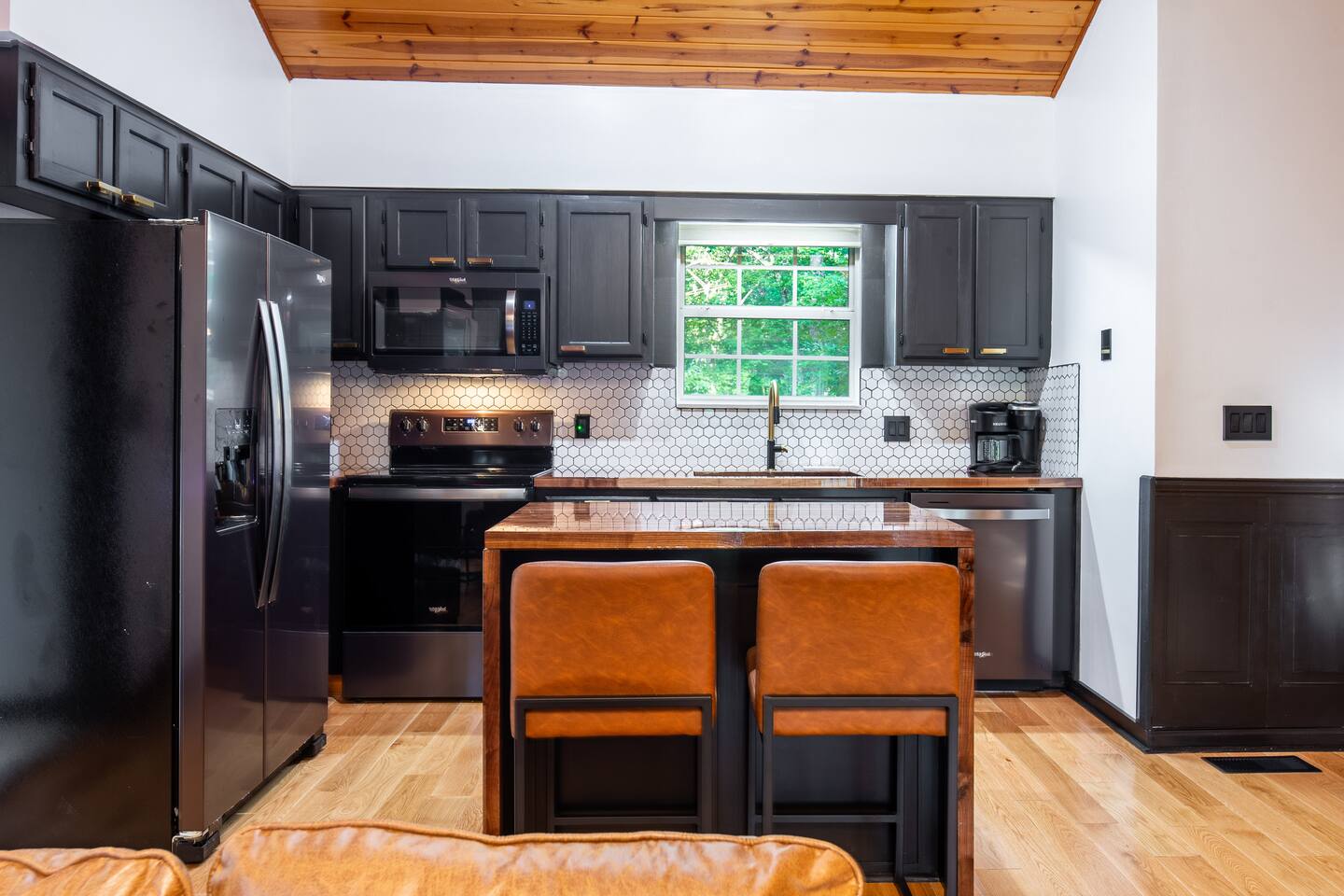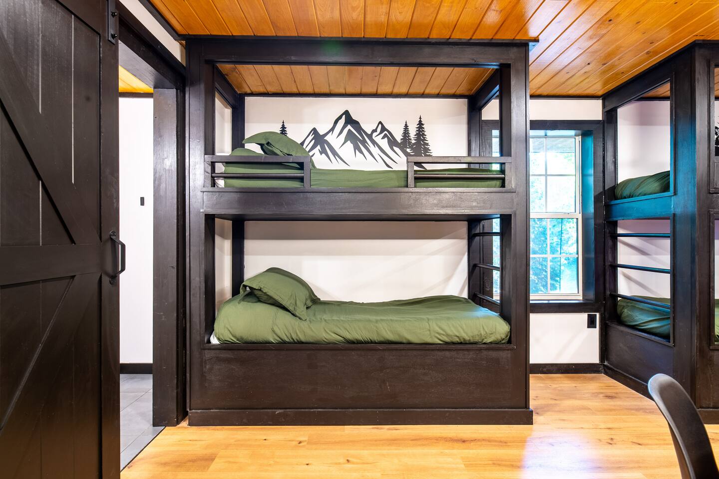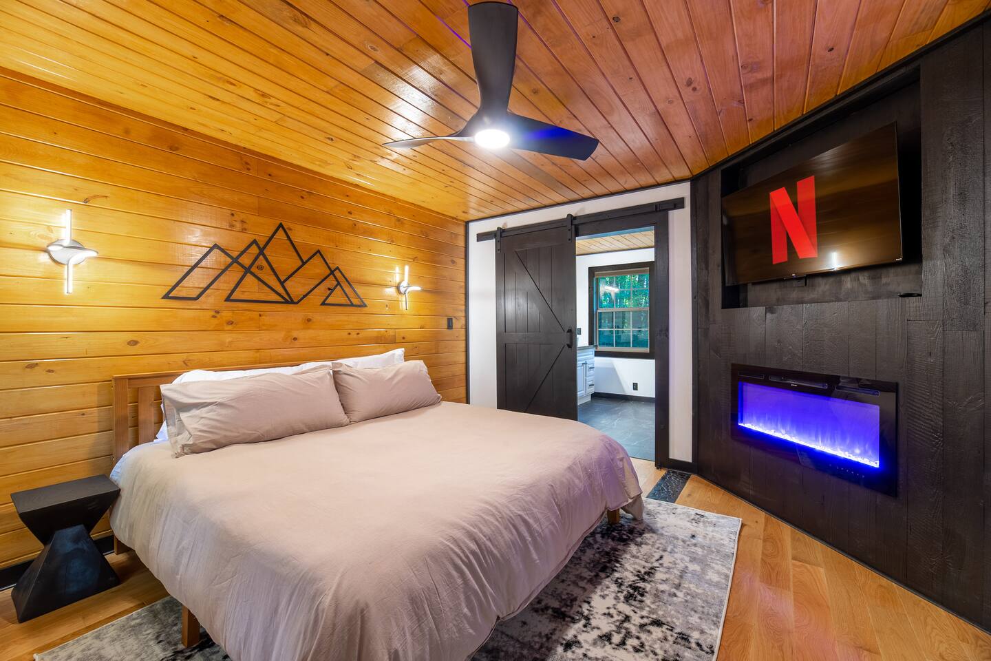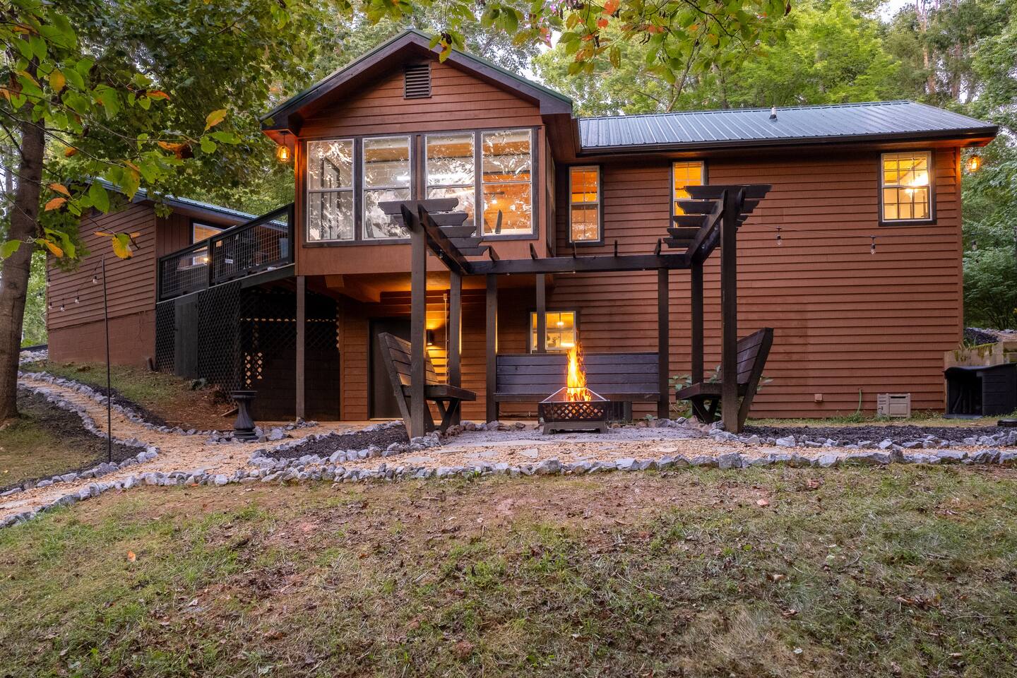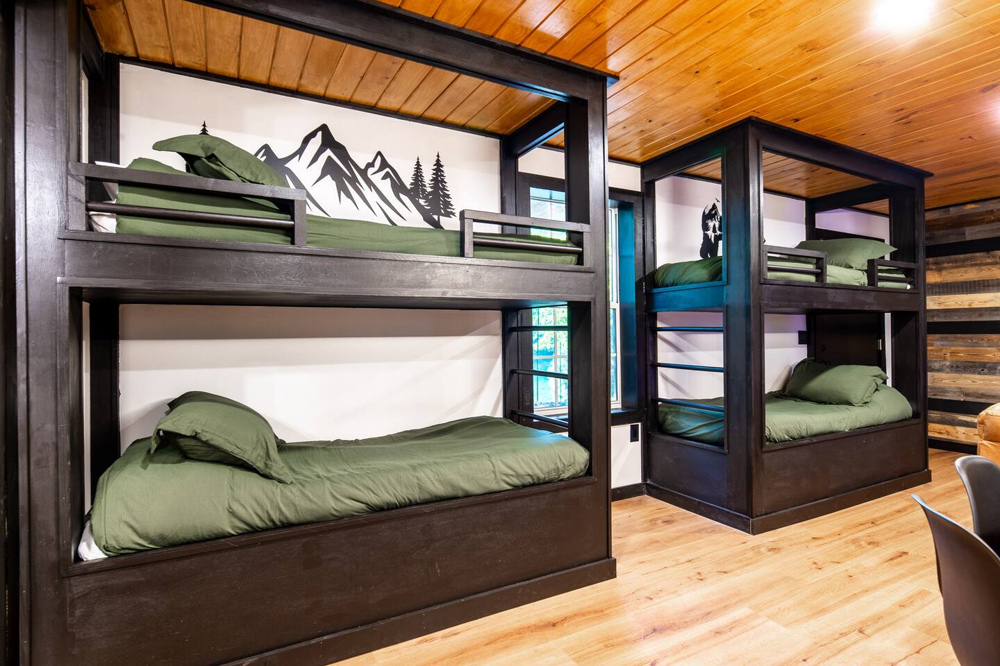 Family time awaits you at Fox Meadow Lodge, a modern take on the classic mountain cabin, offering panoramic views of nature. This spacious two-story retreat features two King en-suite bedrooms, one Queen bedroom, three Twin Bunk Beds, 4 Full bathrooms, a Barn Movie Theatre, Arcade/Game room, Hot Tub, Fire Pit Pergola (for the whole family), Firepit with bench (for couples- overlooking the meadow) and a Mini Golf Course, making it the perfect getaway for families and friends! Nestled in the mountains this cabin provides easy access to all the attractions of the Smoky Mountains while offering a peaceful, scenic retreat. Come for the views and entertainment, leave with memories that will last a lifetime. Parking: There is ample parking at the cabin for up to 5 vehicles. Main Floor: Step inside to a warm and welcoming space featuring one King Suite, a full bathroom with common access, one Queen bedroom. The Kitchen features a waterfall butcher block island with bar seating for two. Prepare meals in the gourmet kitchen with high-end appliances stocked with all the essential cookware as well as salt/pepper/olive oil. At the coffee station you will find complementary k-cups for your enjoyment. The dining room has panoramic windows allowing for a unique dining experience and is perfect for large shared meals, while the private deck offers a peaceful spot to barbeque or soak in the hot tub while enjoying morning coffee or evening wine. Each bathroom has custom tile and is stocked with plenty of towels, conditioner/shampoo/bodywash, hand soap, lotion, and a hairdryer (under the vanity). The Living Room features a stacked stone floor to ceiling electric fireplace with a smart TV and two comfy couches. Lower Level: As you descend down stairs you will find a room specifically geared for kiddos! This area offer a large sectional and 6 Twin Beds with as large round table in the center of room perfect for board games or coloring. There is a full bathroom with a bathtub perfect for the bath time. As you venture past the kids area you will find another King Suite with custom tile walk-in shower. The bathrooms are stocked with plenty of towels, conditioner/shampoo/bodywash, hand soap, lotion, and a hairdryer (under the vanity). Outdoors/Exterior: You will find far more than just views of wildlife and nature while enjoying the outdoors of Fox Meadow Lodge, such as, a Fire Pit Pergola with seating for 12, custom 6 hole Mini Golf Course, oversized sand box and kids play area, Barn Theatre with seating for 12. On the Main LVL Deck you will find a BBQ Grill and a Hot Tub with built in drink ledge. ✨ Book now and start planning your dream mountain getaway! ✨ Amenities that are included: 🔥Electric fireplace in every room 🛁 Hot Tub 🪵 Outdoor fire pit Pergola 📺 Smart TV in every room 🔊 High speed internet 🧴Shampoo, conditioner and body wash in every bathroom 🧼 Dish washer (pods provided) 🍞 Toaster ☕️ Coffee Maker (coffee pods provided to get you started) ♨️ Microwave 🎬 Barn Movie Theatre 🎱Pool Table 🕹️Arcade 🍿 Popcorn Maker 🧺 Washer and dryer (detergent and dryer sheets provided) 👔 Iron + board 💆♀️ Hair dryer 🛏️ Plenty of towels, blankets and pillows ⛳️ Mini Golf course 🏜️ Kids sand pit area