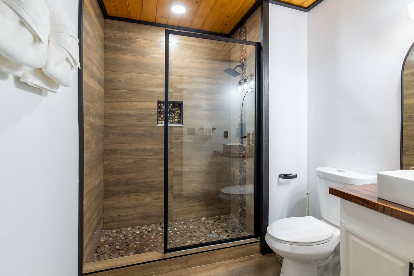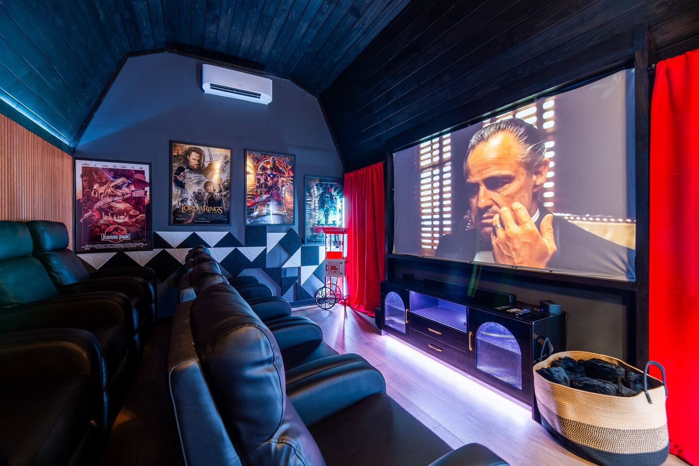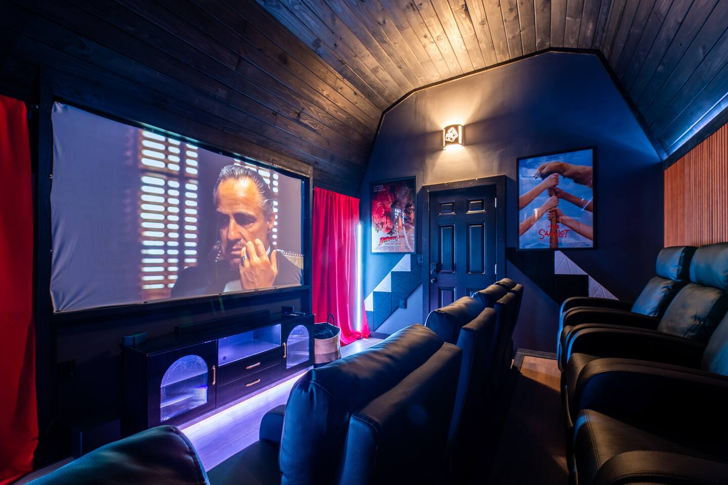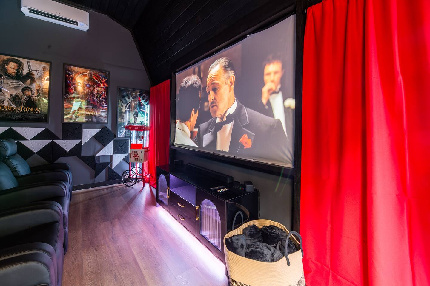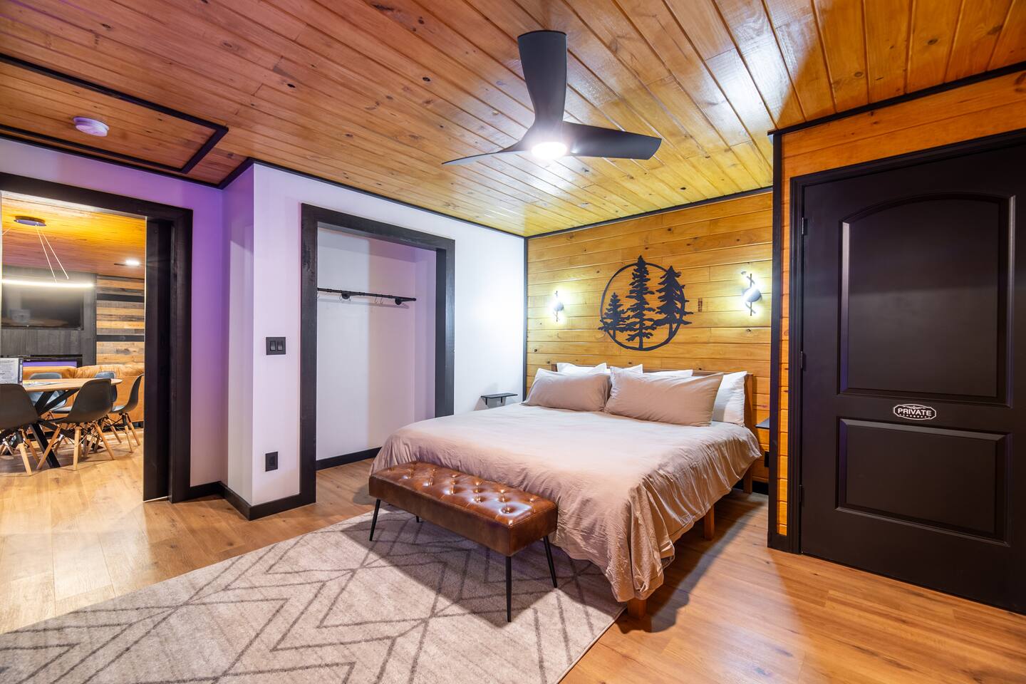 Family time awaits you at Fox Meadow Lodge, a modern take on the classic mountain cabin, offering panoramic views of nature. This spacious two-story retreat features two King en-suite bedrooms, one Queen bedroom, three Twin Bunk Beds, 4 Full bathrooms, a Barn Movie Theatre, Arcade/Game room, Hot Tub, Fire Pit Pergola (for the whole family), Firepit with bench (for couples- overlooking the meadow) and a Mini Golf Course, making it the perfect getaway for families and friends! Nestled in the mountains this cabin provides easy access to all the attractions of the Smoky Mountains while offering a peaceful, scenic retreat. Come for the views and entertainment, leave with memories that will last a lifetime. Parking: There is ample parking at the cabin for up to 5 vehicles. Main Floor: Step inside to a warm and welcoming space featuring one King Suite, a full bathroom with common access, one Queen bedroom. The Kitchen features a waterfall butcher block island with bar seating for two. Prepare meals in the gourmet kitchen with high-end appliances stocked with all the essential cookware as well as salt/pepper/olive oil. At the coffee station you will find complementary k-cups for your enjoyment. The dining room has panoramic windows allowing for a unique dining experience and is perfect for large shared meals, while the private deck offers a peaceful spot to barbeque or soak in the hot tub while enjoying morning coffee or evening wine. Each bathroom has custom tile and is stocked with plenty of towels, conditioner/shampoo/bodywash, hand soap, lotion, and a hairdryer (under the vanity). The Living Room features a stacked stone floor to ceiling electric fireplace with a smart TV and two comfy couches. Lower Level: As you descend down stairs you will find a room specifically geared for kiddos! This area offer a large sectional and 6 Twin Beds with as large round table in the center of room perfect for board games or coloring. There is a full bathroom with a bathtub perfect for the bath time. As you venture past the kids area you will find another King Suite with custom tile walk-in shower. The bathrooms are stocked with plenty of towels, conditioner/shampoo/bodywash, hand soap, lotion, and a hairdryer (under the vanity). Outdoors/Exterior: You will find far more than just views of wildlife and nature while enjoying the outdoors of Fox Meadow Lodge, such as, a Fire Pit Pergola with seating for 12, custom 6 hole Mini Golf Course, oversized sand box and kids play area, Barn Theatre with seating for 12. On the Main LVL Deck you will find a BBQ Grill and a Hot Tub with built in drink ledge. ✨ Book now and start planning your dream mountain getaway! ✨ Amenities that are included: 🔥Electric fireplace in every room 🛁 Hot Tub 🪵 Outdoor fire pit Pergola 📺 Smart TV in every room 🔊 High speed internet 🧴Shampoo, conditioner and body wash in every bathroom 🧼 Dish washer (pods provided) 🍞 Toaster ☕️ Coffee Maker (coffee pods provided to get you started) ♨️ Microwave 🎬 Barn Movie Theatre 🎱Pool Table 🕹️Arcade 🍿 Popcorn Maker 🧺 Washer and dryer (detergent and dryer sheets provided) 👔 Iron + board 💆♀️ Hair dryer 🛏️ Plenty of towels, blankets and pillows ⛳️ Mini Golf course 🏜️ Kids sand pit area