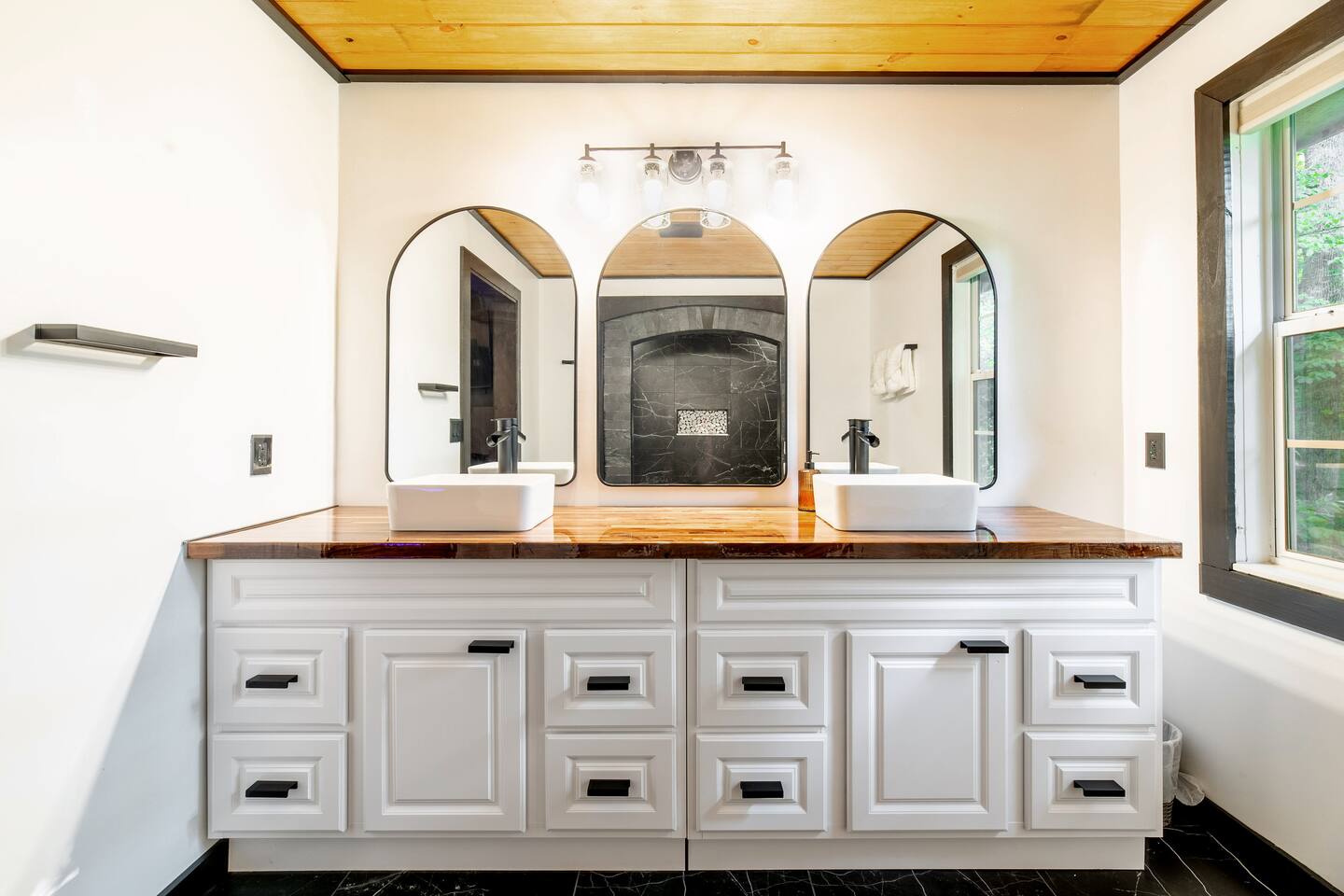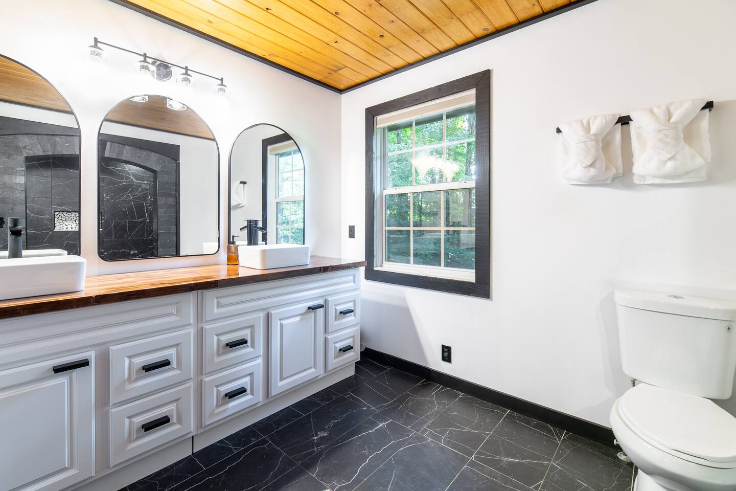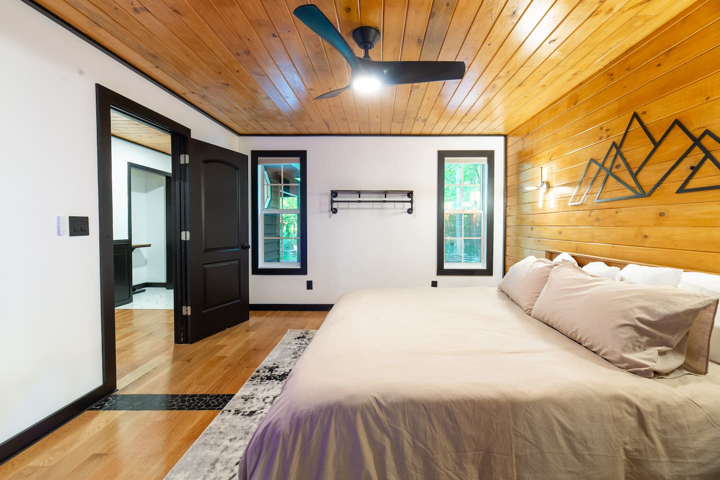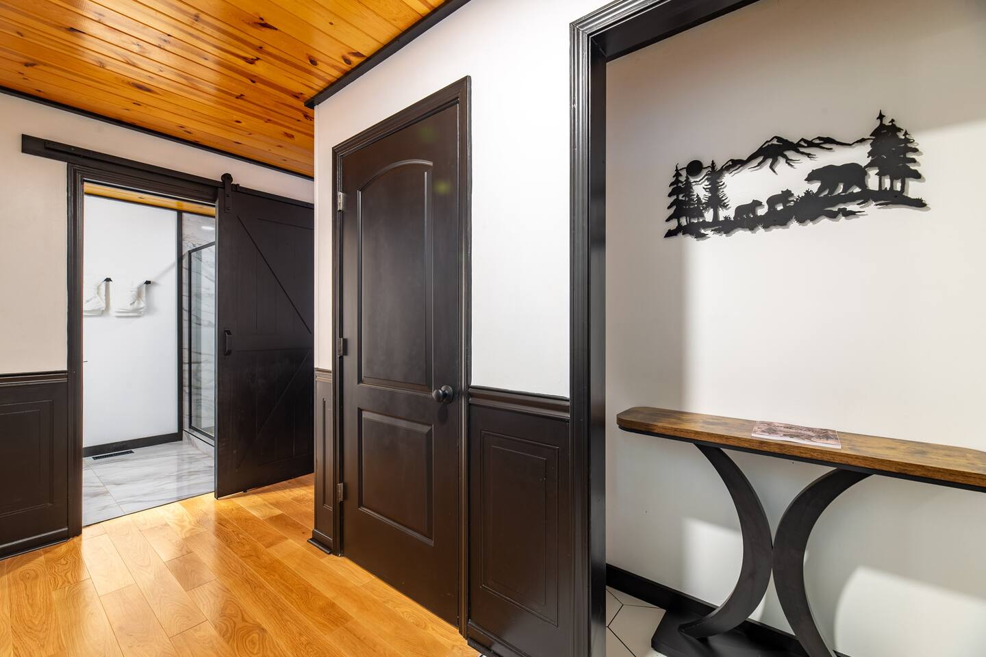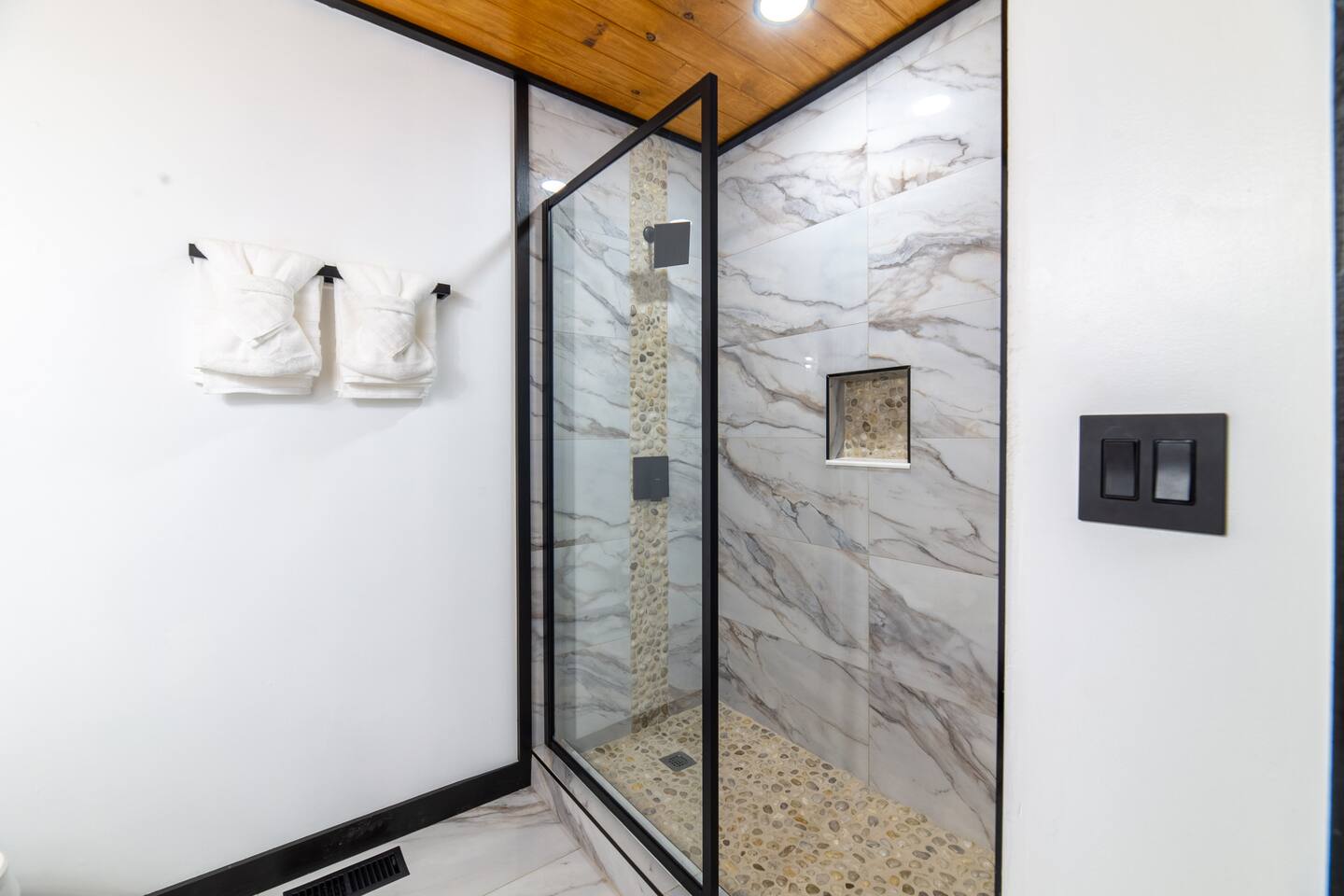 Family time awaits you at Fox Meadow Lodge, a modern take on the classic mountain cabin, offering panoramic views of nature. This spacious two-story retreat features two King en-suite bedrooms, one Queen bedroom, three Twin Bunk Beds, 4 Full bathrooms, a Barn Movie Theatre, Arcade/Game room, Hot Tub, Fire Pit Pergola (for the whole family), Firepit with bench (for couples- overlooking the meadow) and a Mini Golf Course, making it the perfect getaway for families and friends! Nestled in the mountains this cabin provides easy access to all the attractions of the Smoky Mountains while offering a peaceful, scenic retreat. Come for the views and entertainment, leave with memories that will last a lifetime. Parking: There is ample parking at the cabin for up to 5 vehicles. Main Floor: Step inside to a warm and welcoming space featuring one King Suite, a full bathroom with common access, one Queen bedroom. The Kitchen features a waterfall butcher block island with bar seating for two. Prepare meals in the gourmet kitchen with high-end appliances stocked with all the essential cookware as well as salt/pepper/olive oil. At the coffee station you will find complementary k-cups for your enjoyment. The dining room has panoramic windows allowing for a unique dining experience and is perfect for large shared meals, while the private deck offers a peaceful spot to barbeque or soak in the hot tub while enjoying morning coffee or evening wine. Each bathroom has custom tile and is stocked with plenty of towels, conditioner/shampoo/bodywash, hand soap, lotion, and a hairdryer (under the vanity). The Living Room features a stacked stone floor to ceiling electric fireplace with a smart TV and two comfy couches. Lower Level: As you descend down stairs you will find a room specifically geared for kiddos! This area offer a large sectional and 6 Twin Beds with as large round table in the center of room perfect for board games or coloring. There is a full bathroom with a bathtub perfect for the bath time. As you venture past the kids area you will find another King Suite with custom tile walk-in shower. The bathrooms are stocked with plenty of towels, conditioner/shampoo/bodywash, hand soap, lotion, and a hairdryer (under the vanity). Outdoors/Exterior: You will find far more than just views of wildlife and nature while enjoying the outdoors of Fox Meadow Lodge, such as, a Fire Pit Pergola with seating for 12, custom 6 hole Mini Golf Course, oversized sand box and kids play area, Barn Theatre with seating for 12. On the Main LVL Deck you will find a BBQ Grill and a Hot Tub with built in drink ledge. ✨ Book now and start planning your dream mountain getaway! ✨ Amenities that are included: 🔥Electric fireplace in every room 🛁 Hot Tub 🪵 Outdoor fire pit Pergola 📺 Smart TV in every room 🔊 High speed internet 🧴Shampoo, conditioner and body wash in every bathroom 🧼 Dish washer (pods provided) 🍞 Toaster ☕️ Coffee Maker (coffee pods provided to get you started) ♨️ Microwave 🎬 Barn Movie Theatre 🎱Pool Table 🕹️Arcade 🍿 Popcorn Maker 🧺 Washer and dryer (detergent and dryer sheets provided) 👔 Iron + board 💆♀️ Hair dryer 🛏️ Plenty of towels, blankets and pillows ⛳️ Mini Golf course 🏜️ Kids sand pit area