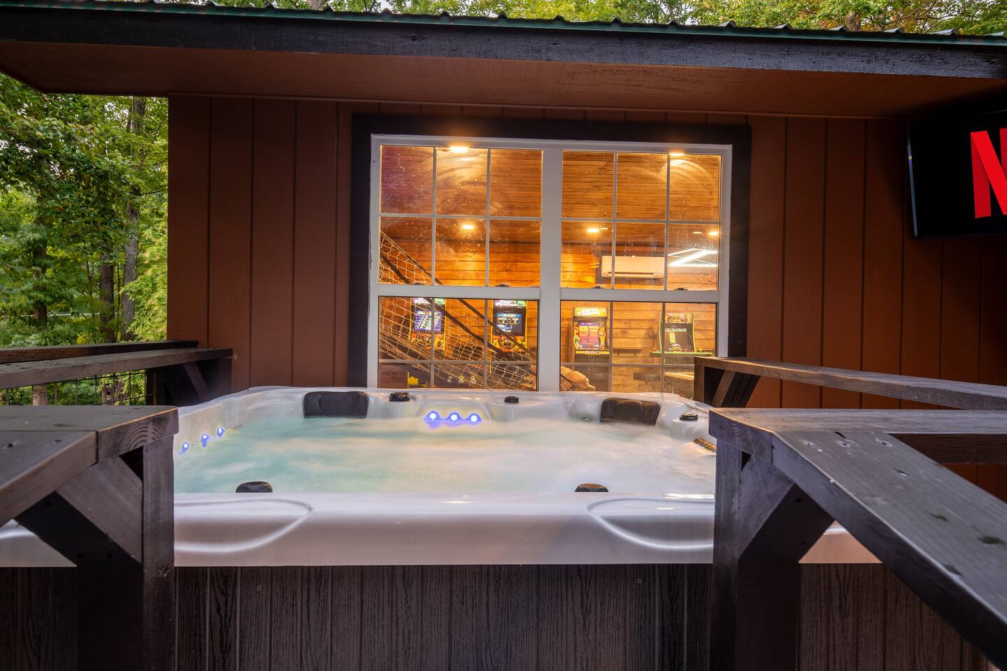 Welcome to Fox 🦊 Meadow Lodge⛰️, a modern luxury cabin with amenities for the whole family🧑🧑🧒🧒! Whether you're looking for a family retreat, or an adventure with friends, this stunning getaway is the perfect place to relax and unwind😎. Enjoy the Barn Movie Theatre🎥🍿, Game Room🕹️ , Hot tub 🛁 , Mini Golf course⛳️, and a Firepit Pergola🔥. This cabin is the ideal setting for making lifelong memories. 📍10min to Gat 📍10min to PF 📍10min to GSM Park