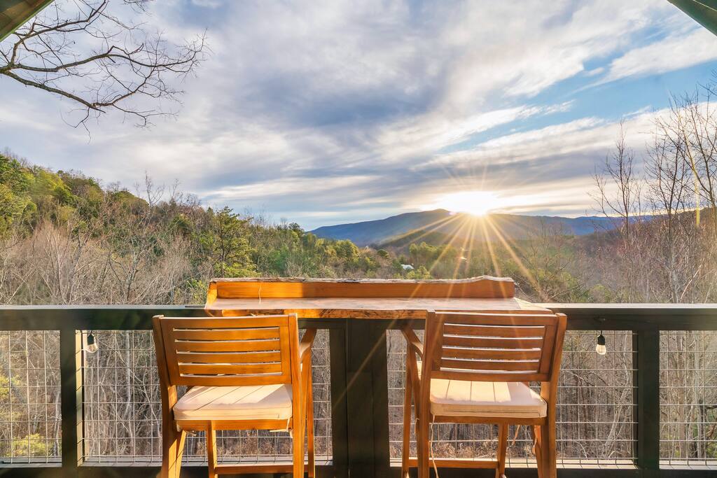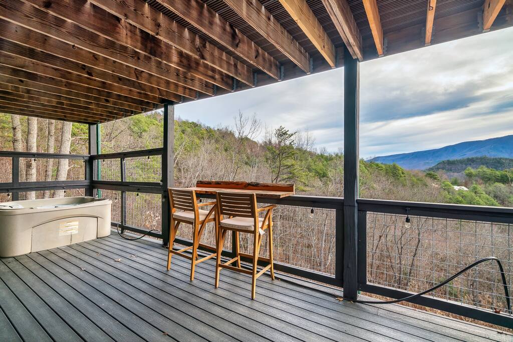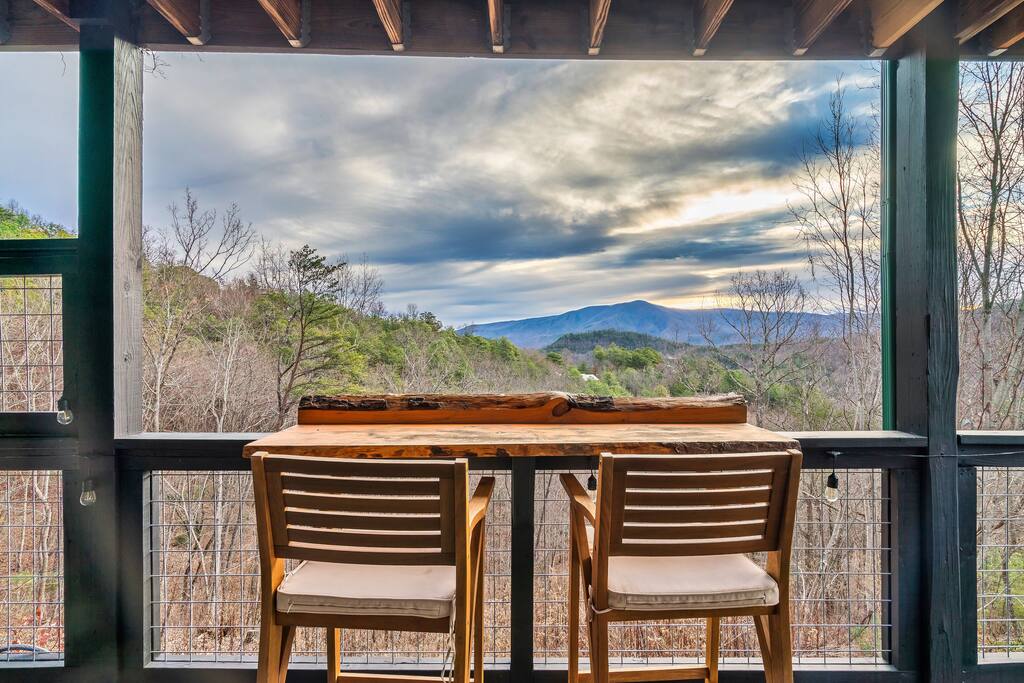 Welcome to ❣️Mountaintop Escape❣️ This cozy cabin offers an idyllic escape for lovebirds celebrating milestones or simply for the fun of it🥰! Create your own luxurious paradise🍹🏝️at home with epic mountain views, spacious outdoor patio with a fire feature, hot tub, and bar seating. 📍25 min to Pigeon Forge 📍25 min to National Park 🌲 📍35 min to Dollywood 🎢 📍40 min to Gatlinburg 📍45 min to Ober Ski Mountain⛷️ 📍1hr to Knoxville
