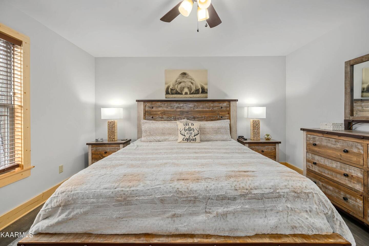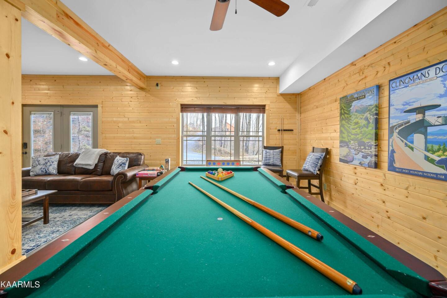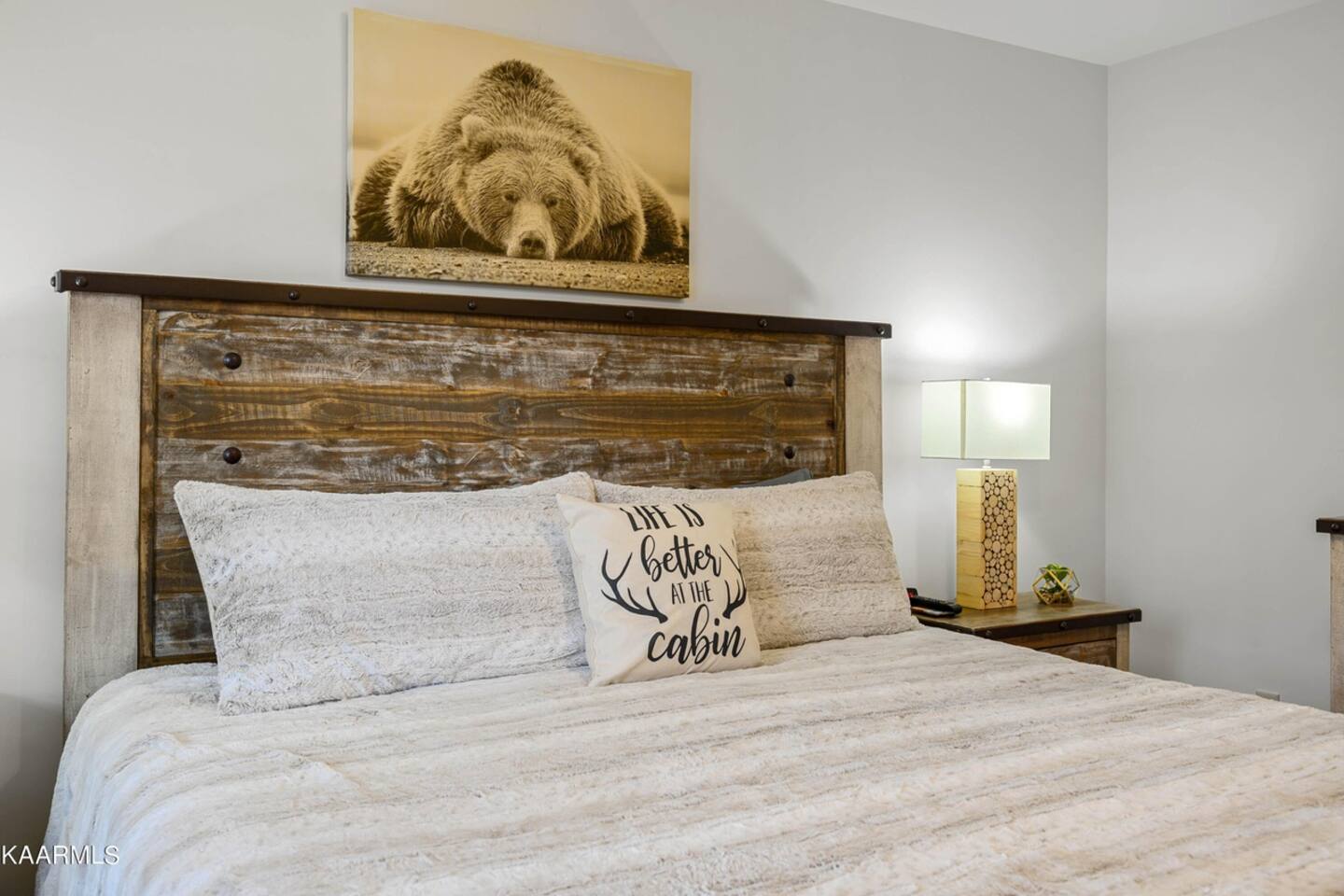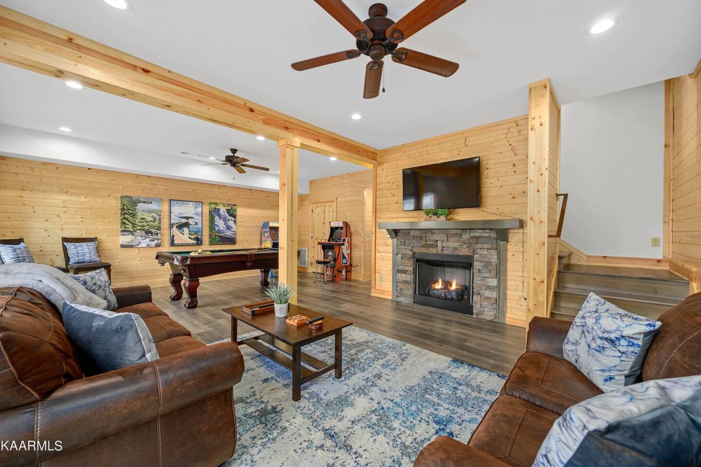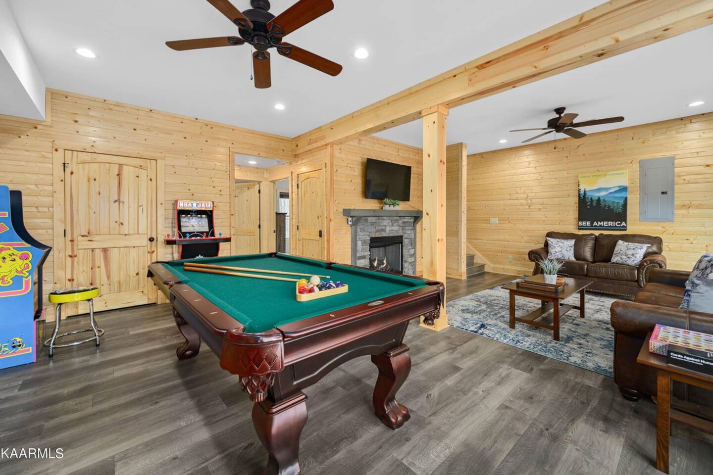 ✨ Heaven's View ✨ is your perfect Smoky Mountain retreat nestled at the top of Chalet Village overlooking Downtown Gatlinburg and the beautiful Smoky Mountains, offering a peaceful escape with all the comforts of home. This charming cabin features 3 cozy king bedrooms, 3 full bathrooms, and two game rooms each equipped with a sofa couch perfect for the kiddos—ideal for families or groups looking to unwind and reconnect. Step inside to find a well-equipped kitchen ready for your favorite meals, a spacious dining area where everyone can gather, and a living room with a roomy couch layered with snuggle-worthy throws—perfect for relaxing after a day of adventure and soaking in the mountain views. For entertainment, enjoy a movie in front of the fireplace, plus a game room designed to keep kids (and adults!) happily entertained for hours. Just a short drive from the cabin and you'll be at all the hotspots the Smoky Mountains offer. Whether you’re unwinding indoors or exploring the peaceful outdoors, Heaven's View offers a cozy, fun-filled getaway that creates lasting memories. ✨Main Level✨ Discover comfort and convenience with a king ensuite. The fully equipped kitchen, dining area, and living room flow seamlessly in an open floor plan, keeping everyone connected. Step outside to the spacious deck, where multiple seating areas, Hot tub, and a grill — perfect for relaxing and soaking in the stunning mountain views🍃 ✨Upper Level✨ Ascend the stairs to the loft to find a cozy private king bedroom. A full bathroom with common access featuring shower + tub combo perfect for cleaning up those little adventurers. The open loft provides a sofa couch, TV, and shuffleboard to keep you entertained. ✨Lower Level✨ Descend the stairs to the vibrant game room, where friendly competition awaits with pool table, a movie area🎬🍿, and two arcade machines loaded with dozens of games. Just beyond the game room, discover a cozy King bedroom and yes, there’s a convenient full bathroom with a tile walk-in shower and laundry room. Amenities Included: 🔥 Indoor Propane Burning Fireplace 🔥 Indoor Electric Burning Fireplace 🛁 Exclusive Outdoor Hot Tub 🍔 BBQ 📺 Smart TV 🔊 WiFi Pool Table Arcade Machine 🚿Walk-in tile shower 🧴Shampoo, conditioner and body wash to get you started ☕️ Coffee Maker + K-Cups ♨️Microwave 💆♀️ Hair dryer 🛏 Plenty of towels, blankets and pillows Plenty of tp and paper towels Olive Oil Salt & Pepper ‼️ATTENTION‼️ Here is important information to enhance your stay. Prepare for a luxurious woodland adventure where you might encounter adorable critters 🐻🍃, and remember that you are surrounded by woods, so encountering harmless bugs 🪲 is inevitable. Using the hot tub is entirely at your own risk ⚠️. Smoking of any kind is strictly prohibited on the property 🚭. If our cleaners detect any signs of smoking, a $500 fee will be charged. Please adhere to our check-in and check-out timings ⏰. Unauthorized early check-ins or late check-outs are prohibited and will incur additional charges. If the guest fails to vacate the property on time, a fee of $50.00 will be charged for the first half-hour and $100.00 for each subsequent half-hour. Due to Mother Nature's unpredictability 🌪️, we do not provide refunds for weather-related issues, natural disasters, power outages, or events beyond our control. Although we love our furry friends 🐶🐱, we have a strict no-pets policy on the premises. If our cleaners discover any violation of this rule, you will be charged an additional cleaning fee of $500. An outdoor security camera 🎥 monitoring the driveway operates 24/7, recording movement and sound solely for safety reasons. Be reassured that there are NO indoor cameras or cameras pointing towards the front or back of the house, preserving your privacy.