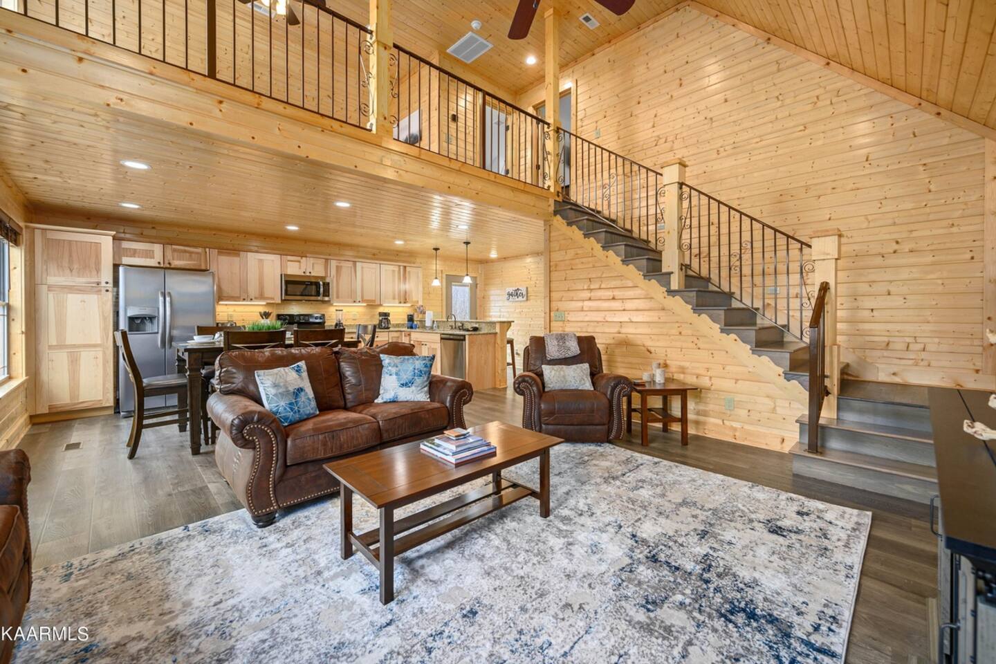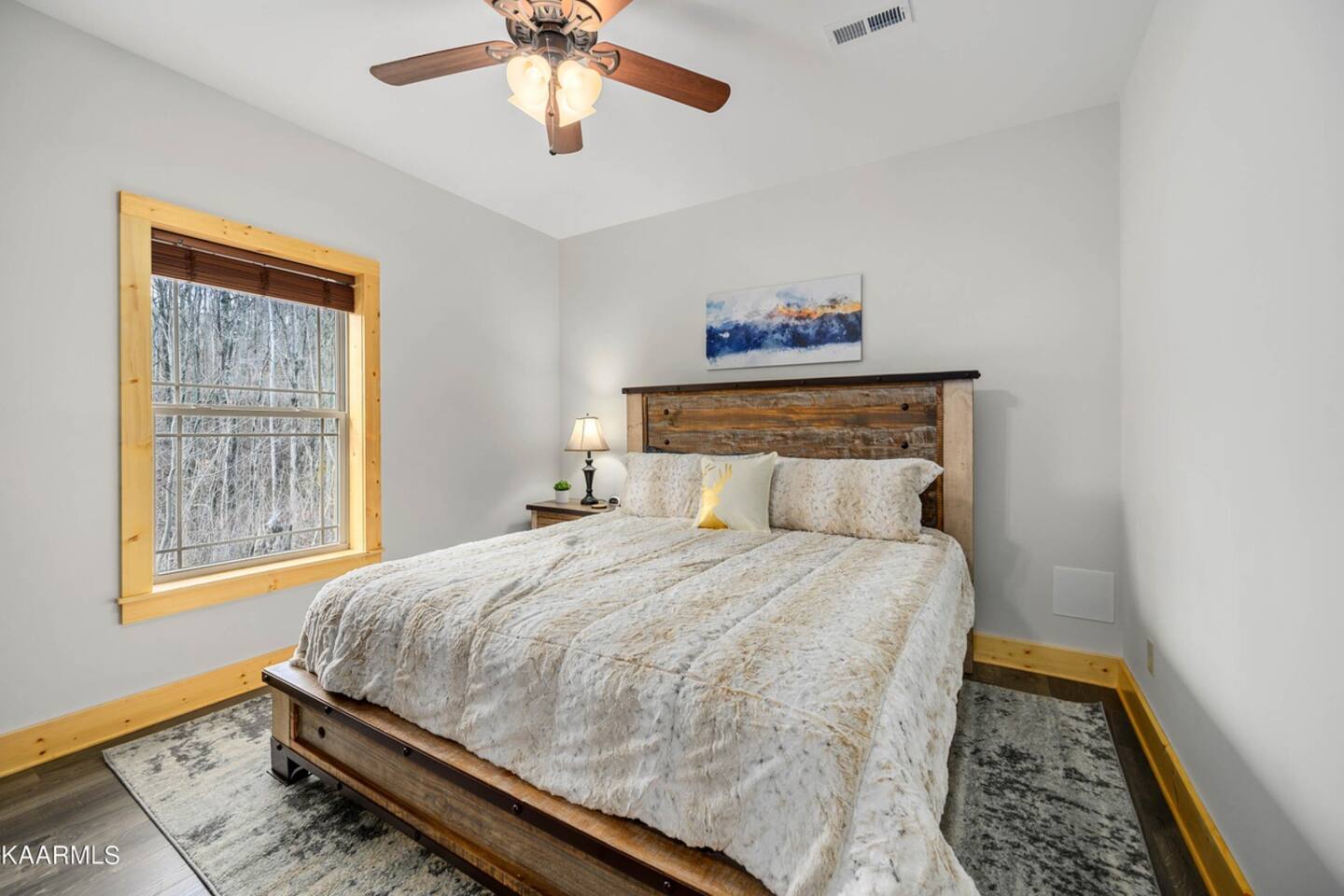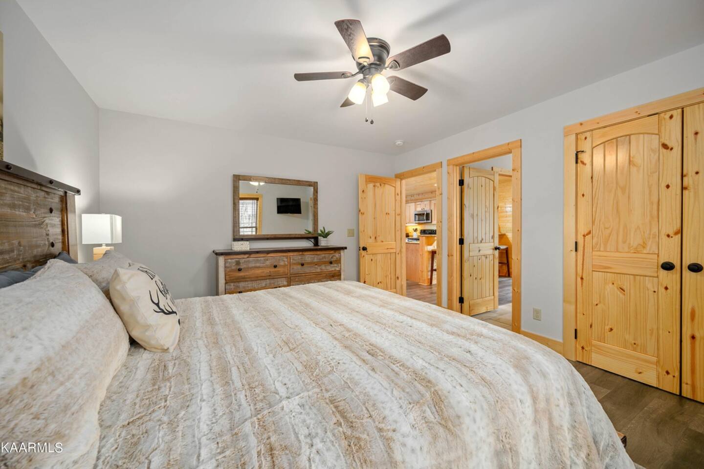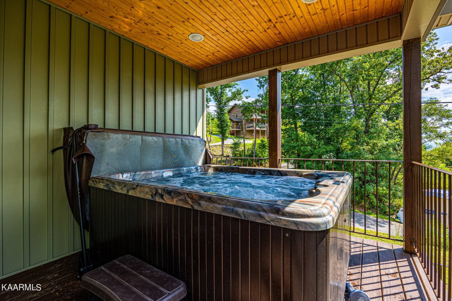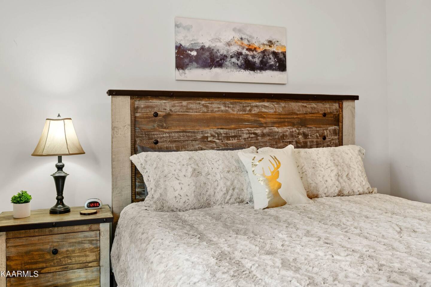 ✨ Heaven's View ✨ is your perfect Smoky Mountain retreat nestled at the top of Chalet Village overlooking Downtown Gatlinburg and the beautiful Smoky Mountains, offering a peaceful escape with all the comforts of home. This charming cabin features 3 cozy king bedrooms, 3 full bathrooms, and two game rooms each equipped with a sofa couch perfect for the kiddos—ideal for families or groups looking to unwind and reconnect. Step inside to find a well-equipped kitchen ready for your favorite meals, a spacious dining area where everyone can gather, and a living room with a roomy couch layered with snuggle-worthy throws—perfect for relaxing after a day of adventure and soaking in the mountain views. For entertainment, enjoy a movie in front of the fireplace, plus a game room designed to keep kids (and adults!) happily entertained for hours. Just a short drive from the cabin and you'll be at all the hotspots the Smoky Mountains offer. Whether you’re unwinding indoors or exploring the peaceful outdoors, Heaven's View offers a cozy, fun-filled getaway that creates lasting memories. ✨Main Level✨ Discover comfort and convenience with a king ensuite. The fully equipped kitchen, dining area, and living room flow seamlessly in an open floor plan, keeping everyone connected. Step outside to the spacious deck, where multiple seating areas, Hot tub, and a grill — perfect for relaxing and soaking in the stunning mountain views🍃 ✨Upper Level✨ Ascend the stairs to the loft to find a cozy private king bedroom. A full bathroom with common access featuring shower + tub combo perfect for cleaning up those little adventurers. The open loft provides a sofa couch, TV, and shuffleboard to keep you entertained. ✨Lower Level✨ Descend the stairs to the vibrant game room, where friendly competition awaits with pool table, a movie area🎬🍿, and two arcade machines loaded with dozens of games. Just beyond the game room, discover a cozy King bedroom and yes, there’s a convenient full bathroom with a tile walk-in shower and laundry room. Amenities Included: 🔥 Indoor Propane Burning Fireplace 🔥 Indoor Electric Burning Fireplace 🛁 Exclusive Outdoor Hot Tub 🍔 BBQ 📺 Smart TV 🔊 WiFi Pool Table Arcade Machine 🚿Walk-in tile shower 🧴Shampoo, conditioner and body wash to get you started ☕️ Coffee Maker + K-Cups ♨️Microwave 💆♀️ Hair dryer 🛏 Plenty of towels, blankets and pillows Plenty of tp and paper towels Olive Oil Salt & Pepper ‼️ATTENTION‼️ Here is important information to enhance your stay. Prepare for a luxurious woodland adventure where you might encounter adorable critters 🐻🍃, and remember that you are surrounded by woods, so encountering harmless bugs 🪲 is inevitable. Using the hot tub is entirely at your own risk ⚠️. Smoking of any kind is strictly prohibited on the property 🚭. If our cleaners detect any signs of smoking, a $500 fee will be charged. Please adhere to our check-in and check-out timings ⏰. Unauthorized early check-ins or late check-outs are prohibited and will incur additional charges. If the guest fails to vacate the property on time, a fee of $50.00 will be charged for the first half-hour and $100.00 for each subsequent half-hour. Due to Mother Nature's unpredictability 🌪️, we do not provide refunds for weather-related issues, natural disasters, power outages, or events beyond our control. Although we love our furry friends 🐶🐱, we have a strict no-pets policy on the premises. If our cleaners discover any violation of this rule, you will be charged an additional cleaning fee of $500. An outdoor security camera 🎥 monitoring the driveway operates 24/7, recording movement and sound solely for safety reasons. Be reassured that there are NO indoor cameras or cameras pointing towards the front or back of the house, preserving your privacy.
