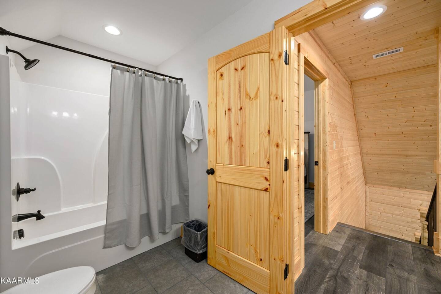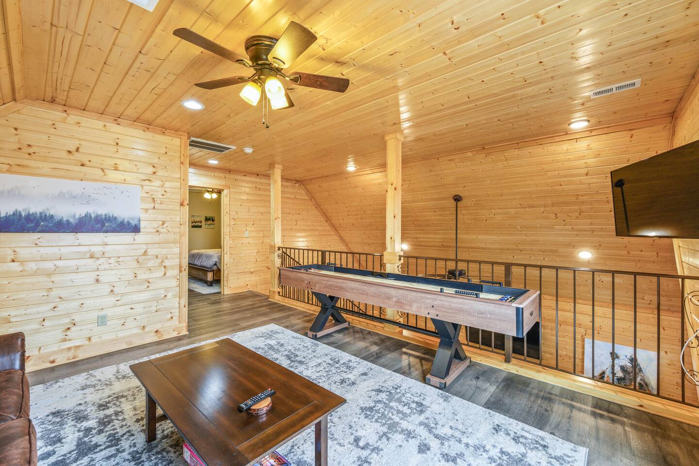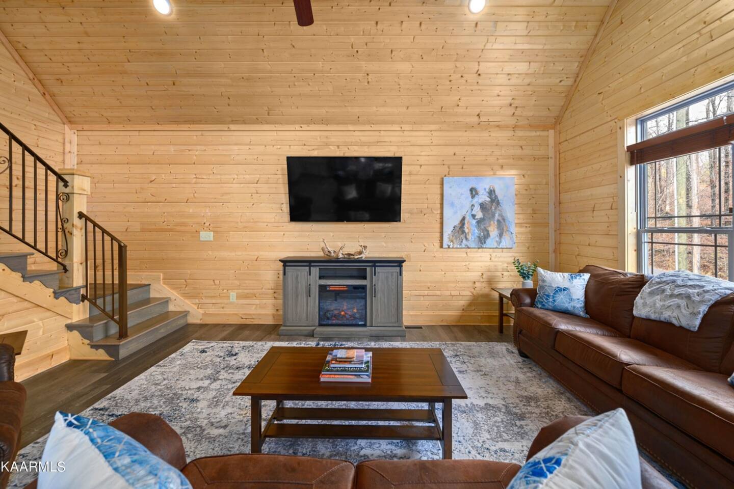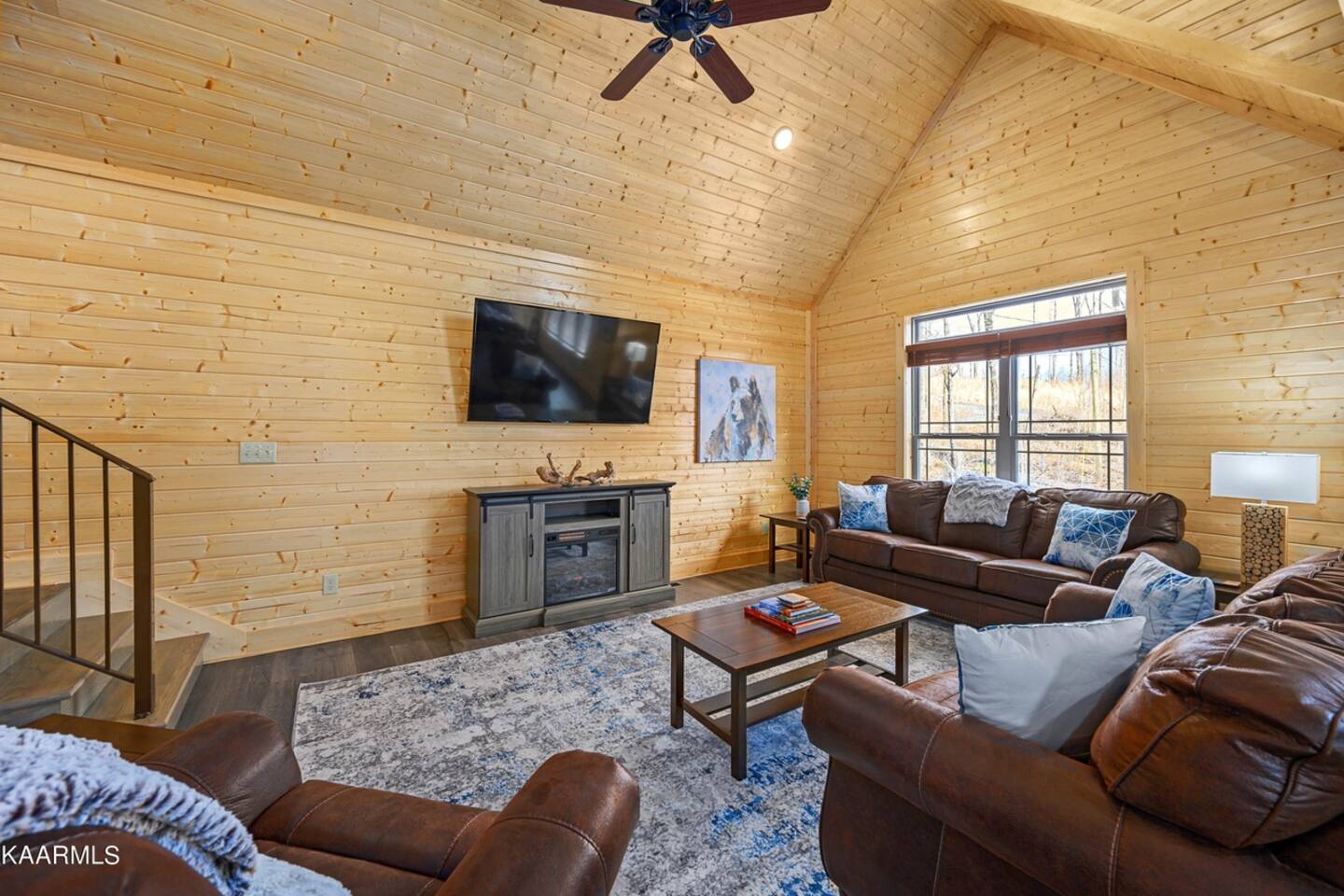 ✨ Heaven's View ✨ is your perfect Smoky Mountain retreat nestled at the top of Chalet Village overlooking Downtown Gatlinburg and the beautiful Smoky Mountains, offering a peaceful escape with all the comforts of home. This charming cabin features 3 cozy king bedrooms, 3 full bathrooms, and two game rooms each equipped with a sofa couch perfect for the kiddos—ideal for families or groups looking to unwind and reconnect. Step inside to find a well-equipped kitchen ready for your favorite meals, a spacious dining area where everyone can gather, and a living room with a roomy couch layered with snuggle-worthy throws—perfect for relaxing after a day of adventure and soaking in the mountain views. For entertainment, enjoy a movie in front of the fireplace, plus a game room designed to keep kids (and adults!) happily entertained for hours. Just a short drive from the cabin and you'll be at all the hotspots the Smoky Mountains offer. Whether you’re unwinding indoors or exploring the peaceful outdoors, Heaven's View offers a cozy, fun-filled getaway that creates lasting memories. ✨Main Level✨ Discover comfort and convenience with a king ensuite. The fully equipped kitchen, dining area, and living room flow seamlessly in an open floor plan, keeping everyone connected. Step outside to the spacious deck, where multiple seating areas, Hot tub, and a grill — perfect for relaxing and soaking in the stunning mountain views🍃 ✨Upper Level✨ Ascend the stairs to the loft to find a cozy private king bedroom. A full bathroom with common access featuring shower + tub combo perfect for cleaning up those little adventurers. The open loft provides a sofa couch, TV, and shuffleboard to keep you entertained. ✨Lower Level✨ Descend the stairs to the vibrant game room, where friendly competition awaits with pool table, a movie area🎬🍿, and two arcade machines loaded with dozens of games. Just beyond the game room, discover a cozy King bedroom and yes, there’s a convenient full bathroom with a tile walk-in shower and laundry room. Amenities Included: 🔥 Indoor Propane Burning Fireplace 🔥 Indoor Electric Burning Fireplace 🛁 Exclusive Outdoor Hot Tub 🍔 BBQ 📺 Smart TV 🔊 WiFi Pool Table Arcade Machine 🚿Walk-in tile shower 🧴Shampoo, conditioner and body wash to get you started ☕️ Coffee Maker + K-Cups ♨️Microwave 💆♀️ Hair dryer 🛏 Plenty of towels, blankets and pillows Plenty of tp and paper towels Olive Oil Salt & Pepper ‼️ATTENTION‼️ Here is important information to enhance your stay. Prepare for a luxurious woodland adventure where you might encounter adorable critters 🐻🍃, and remember that you are surrounded by woods, so encountering harmless bugs 🪲 is inevitable. Using the hot tub is entirely at your own risk ⚠️. Smoking of any kind is strictly prohibited on the property 🚭. If our cleaners detect any signs of smoking, a $500 fee will be charged. Please adhere to our check-in and check-out timings ⏰. Unauthorized early check-ins or late check-outs are prohibited and will incur additional charges. If the guest fails to vacate the property on time, a fee of $50.00 will be charged for the first half-hour and $100.00 for each subsequent half-hour. Due to Mother Nature's unpredictability 🌪️, we do not provide refunds for weather-related issues, natural disasters, power outages, or events beyond our control. Although we love our furry friends 🐶🐱, we have a strict no-pets policy on the premises. If our cleaners discover any violation of this rule, you will be charged an additional cleaning fee of $500. An outdoor security camera 🎥 monitoring the driveway operates 24/7, recording movement and sound solely for safety reasons. Be reassured that there are NO indoor cameras or cameras pointing towards the front or back of the house, preserving your privacy.