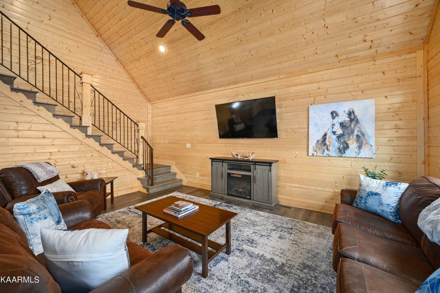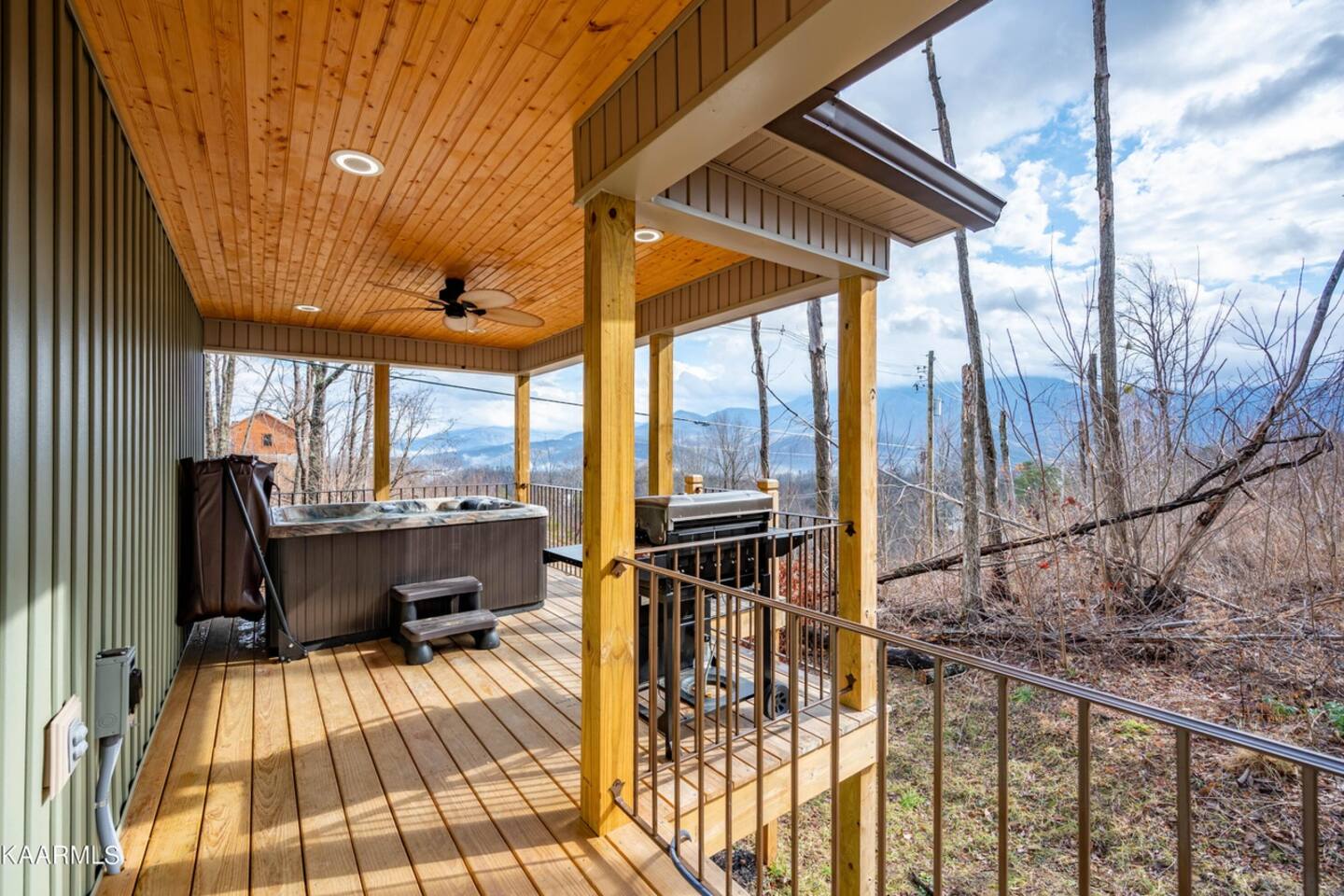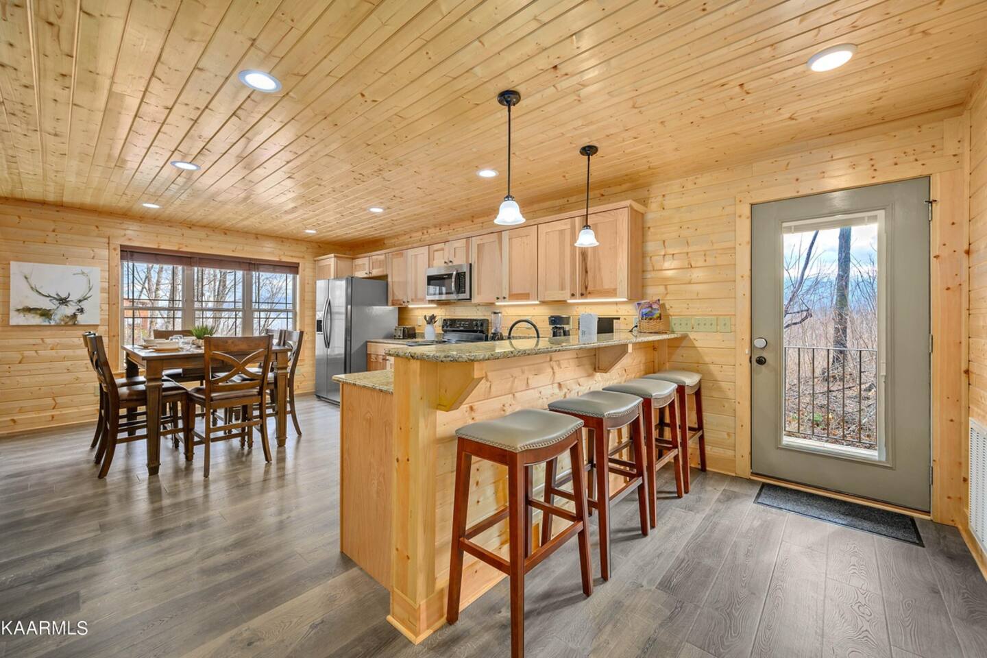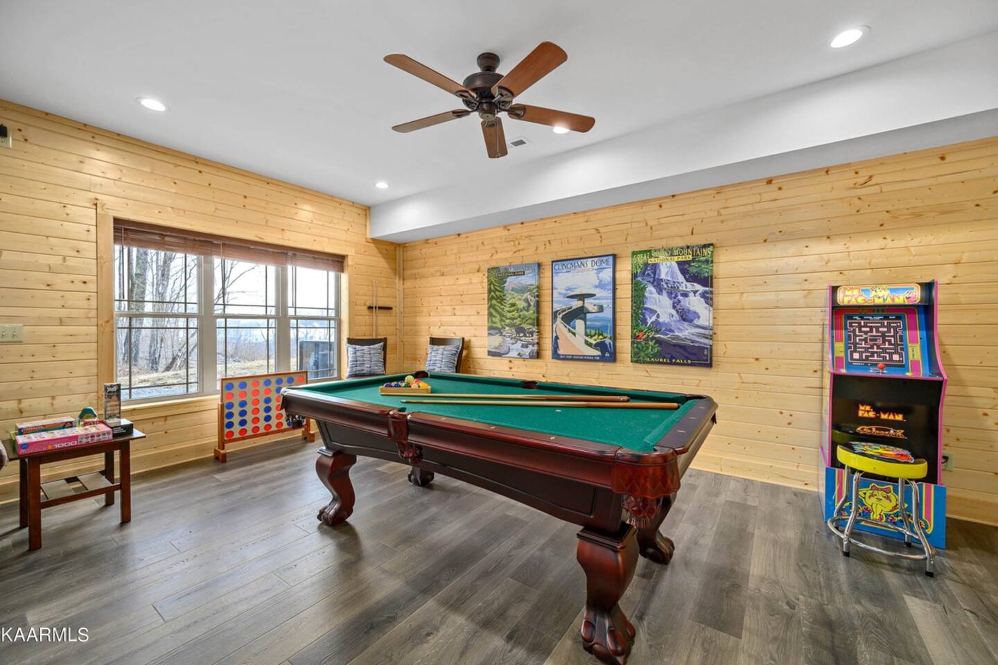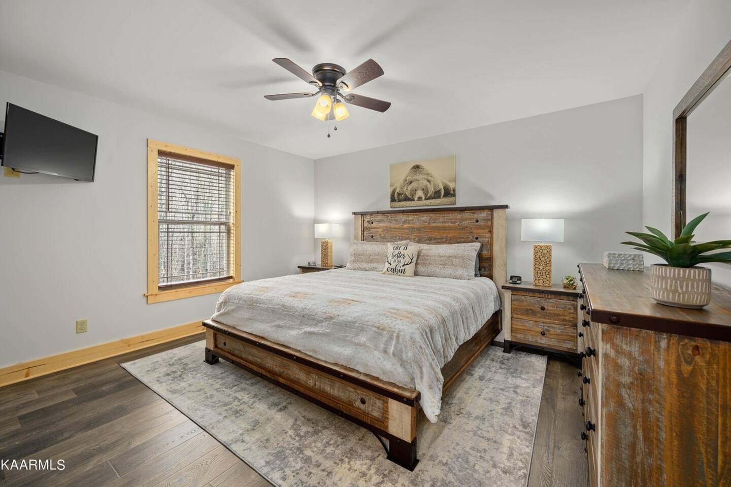 ✨ Heaven's View ✨ is your perfect Smoky Mountain retreat nestled at the top of Chalet Village overlooking Downtown Gatlinburg and the beautiful Smoky Mountains, offering a peaceful escape with all the comforts of home. This charming cabin features 3 cozy king bedrooms, 3 full bathrooms, and two game rooms each equipped with a sofa couch perfect for the kiddos—ideal for families or groups looking to unwind and reconnect. Step inside to find a well-equipped kitchen ready for your favorite meals, a spacious dining area where everyone can gather, and a living room with a roomy couch layered with snuggle-worthy throws—perfect for relaxing after a day of adventure and soaking in the mountain views. For entertainment, enjoy a movie in front of the fireplace, plus a game room designed to keep kids (and adults!) happily entertained for hours. Just a short drive from the cabin and you'll be at all the hotspots the Smoky Mountains offer. Whether you’re unwinding indoors or exploring the peaceful outdoors, Heaven's View offers a cozy, fun-filled getaway that creates lasting memories. ✨Main Level✨ Discover comfort and convenience with a king ensuite. The fully equipped kitchen, dining area, and living room flow seamlessly in an open floor plan, keeping everyone connected. Step outside to the spacious deck, where multiple seating areas, Hot tub, and a grill — perfect for relaxing and soaking in the stunning mountain views🍃 ✨Upper Level✨ Ascend the stairs to the loft to find a cozy private king bedroom. A full bathroom with common access featuring shower + tub combo perfect for cleaning up those little adventurers. The open loft provides a sofa couch, TV, and shuffleboard to keep you entertained. ✨Lower Level✨ Descend the stairs to the vibrant game room, where friendly competition awaits with pool table, a movie area🎬🍿, and two arcade machines loaded with dozens of games. Just beyond the game room, discover a cozy King bedroom and yes, there’s a convenient full bathroom with a tile walk-in shower and laundry room. Amenities Included: 🔥 Indoor Propane Burning Fireplace 🔥 Indoor Electric Burning Fireplace 🛁 Exclusive Outdoor Hot Tub 🍔 BBQ 📺 Smart TV 🔊 WiFi Pool Table Arcade Machine 🚿Walk-in tile shower 🧴Shampoo, conditioner and body wash to get you started ☕️ Coffee Maker + K-Cups ♨️Microwave 💆♀️ Hair dryer 🛏 Plenty of towels, blankets and pillows Plenty of tp and paper towels Olive Oil Salt & Pepper ‼️ATTENTION‼️ Here is important information to enhance your stay. Prepare for a luxurious woodland adventure where you might encounter adorable critters 🐻🍃, and remember that you are surrounded by woods, so encountering harmless bugs 🪲 is inevitable. Using the hot tub is entirely at your own risk ⚠️. Smoking of any kind is strictly prohibited on the property 🚭. If our cleaners detect any signs of smoking, a $500 fee will be charged. Please adhere to our check-in and check-out timings ⏰. Unauthorized early check-ins or late check-outs are prohibited and will incur additional charges. If the guest fails to vacate the property on time, a fee of $50.00 will be charged for the first half-hour and $100.00 for each subsequent half-hour. Due to Mother Nature's unpredictability 🌪️, we do not provide refunds for weather-related issues, natural disasters, power outages, or events beyond our control. Although we love our furry friends 🐶🐱, we have a strict no-pets policy on the premises. If our cleaners discover any violation of this rule, you will be charged an additional cleaning fee of $500. An outdoor security camera 🎥 monitoring the driveway operates 24/7, recording movement and sound solely for safety reasons. Be reassured that there are NO indoor cameras or cameras pointing towards the front or back of the house, preserving your privacy.
