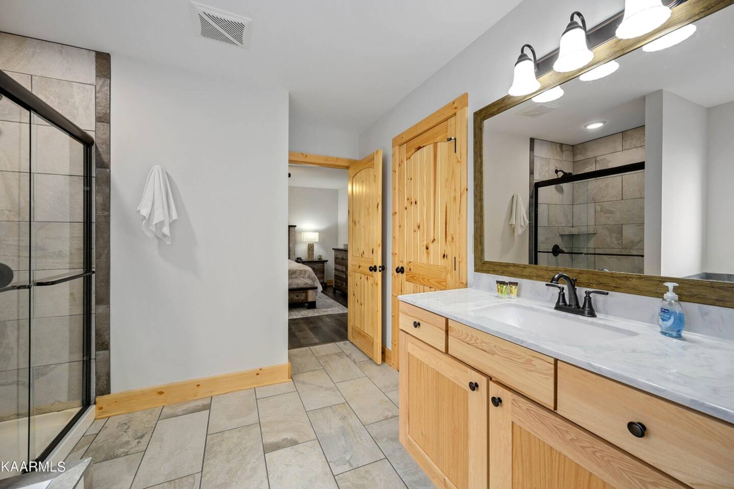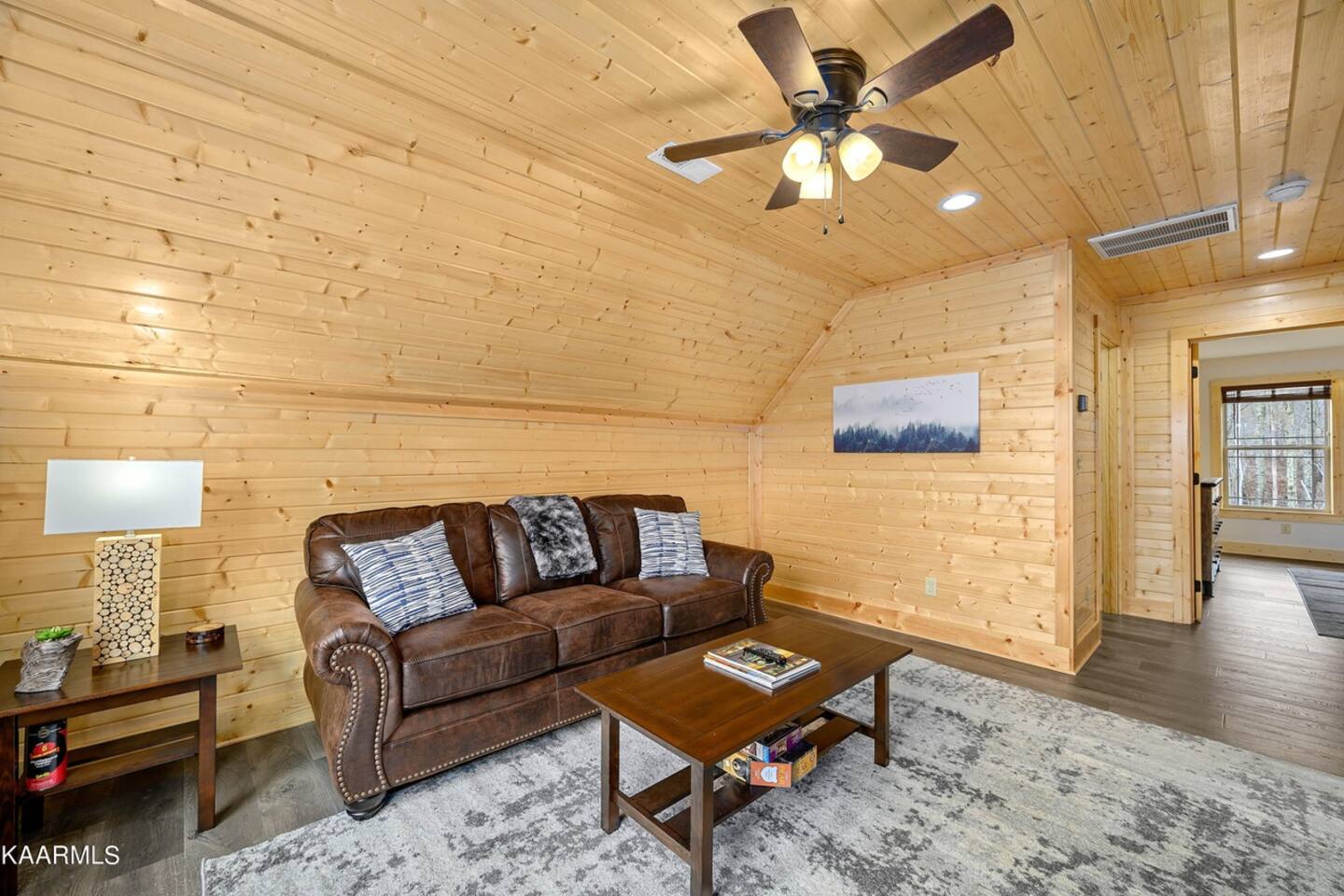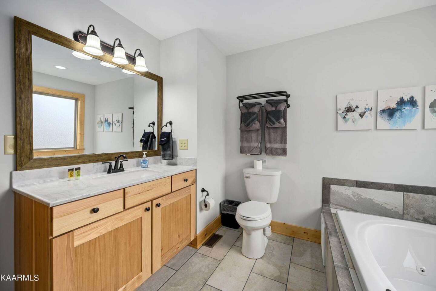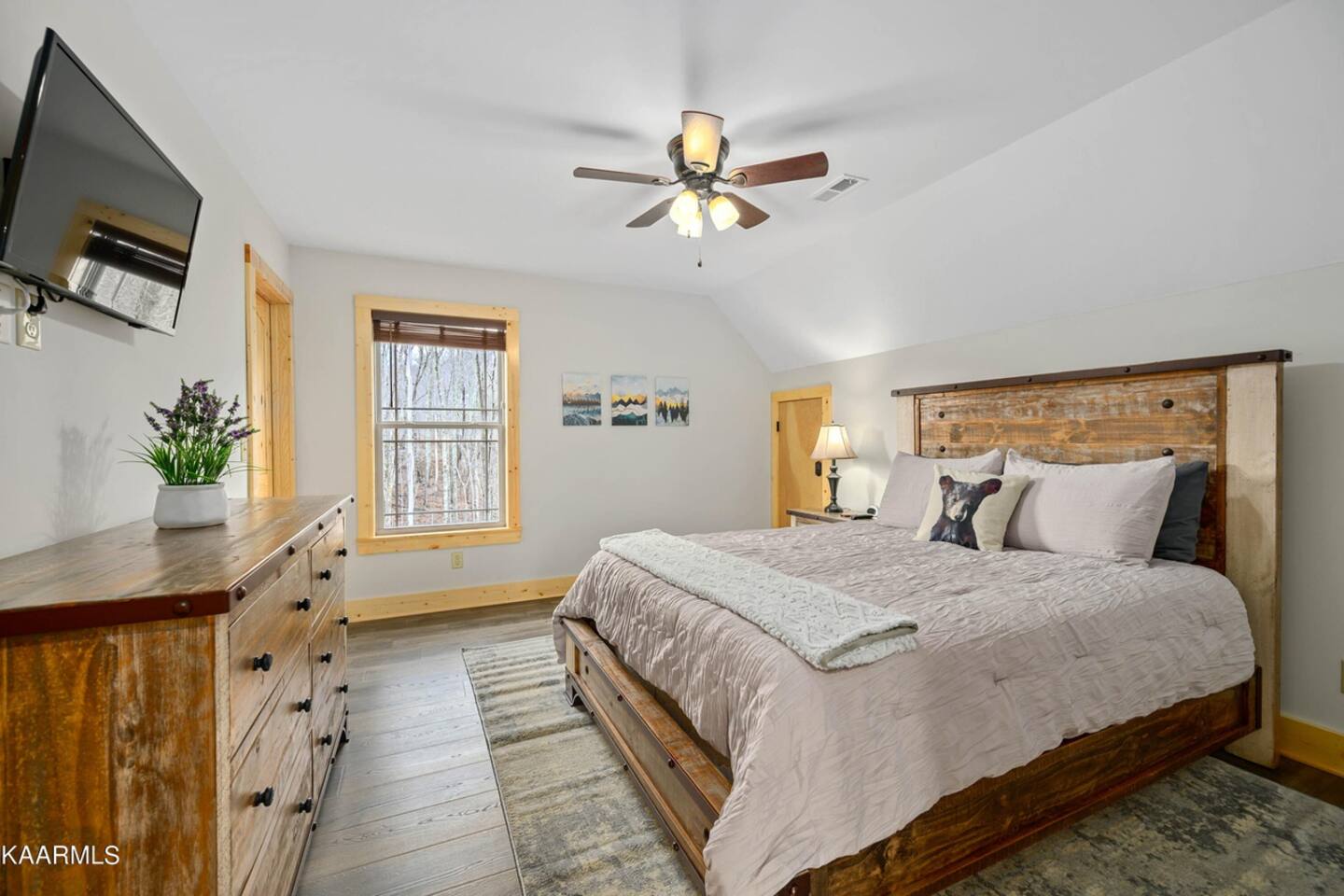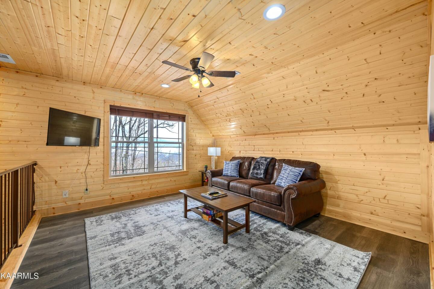 ✨ Heaven's View ✨ is your perfect Smoky Mountain retreat nestled at the top of Chalet Village overlooking Downtown Gatlinburg and the beautiful Smoky Mountains, offering a peaceful escape with all the comforts of home. This charming cabin features 3 cozy king bedrooms, 3 full bathrooms, and two game rooms each equipped with a sofa couch perfect for the kiddos—ideal for families or groups looking to unwind and reconnect. Step inside to find a well-equipped kitchen ready for your favorite meals, a spacious dining area where everyone can gather, and a living room with a roomy couch layered with snuggle-worthy throws—perfect for relaxing after a day of adventure and soaking in the mountain views. For entertainment, enjoy a movie in front of the fireplace, plus a game room designed to keep kids (and adults!) happily entertained for hours. Just a short drive from the cabin and you'll be at all the hotspots the Smoky Mountains offer. Whether you’re unwinding indoors or exploring the peaceful outdoors, Heaven's View offers a cozy, fun-filled getaway that creates lasting memories. ✨Main Level✨ Discover comfort and convenience with a king ensuite. The fully equipped kitchen, dining area, and living room flow seamlessly in an open floor plan, keeping everyone connected. Step outside to the spacious deck, where multiple seating areas, Hot tub, and a grill — perfect for relaxing and soaking in the stunning mountain views🍃 ✨Upper Level✨ Ascend the stairs to the loft to find a cozy private king bedroom. A full bathroom with common access featuring shower + tub combo perfect for cleaning up those little adventurers. The open loft provides a sofa couch, TV, and shuffleboard to keep you entertained. ✨Lower Level✨ Descend the stairs to the vibrant game room, where friendly competition awaits with pool table, a movie area🎬🍿, and two arcade machines loaded with dozens of games. Just beyond the game room, discover a cozy King bedroom and yes, there’s a convenient full bathroom with a tile walk-in shower and laundry room. Amenities Included: 🔥 Indoor Propane Burning Fireplace 🔥 Indoor Electric Burning Fireplace 🛁 Exclusive Outdoor Hot Tub 🍔 BBQ 📺 Smart TV 🔊 WiFi Pool Table Arcade Machine 🚿Walk-in tile shower 🧴Shampoo, conditioner and body wash to get you started ☕️ Coffee Maker + K-Cups ♨️Microwave 💆♀️ Hair dryer 🛏 Plenty of towels, blankets and pillows Plenty of tp and paper towels Olive Oil Salt & Pepper ‼️ATTENTION‼️ Here is important information to enhance your stay. Prepare for a luxurious woodland adventure where you might encounter adorable critters 🐻🍃, and remember that you are surrounded by woods, so encountering harmless bugs 🪲 is inevitable. Using the hot tub is entirely at your own risk ⚠️. Smoking of any kind is strictly prohibited on the property 🚭. If our cleaners detect any signs of smoking, a $500 fee will be charged. Please adhere to our check-in and check-out timings ⏰. Unauthorized early check-ins or late check-outs are prohibited and will incur additional charges. If the guest fails to vacate the property on time, a fee of $50.00 will be charged for the first half-hour and $100.00 for each subsequent half-hour. Due to Mother Nature's unpredictability 🌪️, we do not provide refunds for weather-related issues, natural disasters, power outages, or events beyond our control. Although we love our furry friends 🐶🐱, we have a strict no-pets policy on the premises. If our cleaners discover any violation of this rule, you will be charged an additional cleaning fee of $500. An outdoor security camera 🎥 monitoring the driveway operates 24/7, recording movement and sound solely for safety reasons. Be reassured that there are NO indoor cameras or cameras pointing towards the front or back of the house, preserving your privacy.