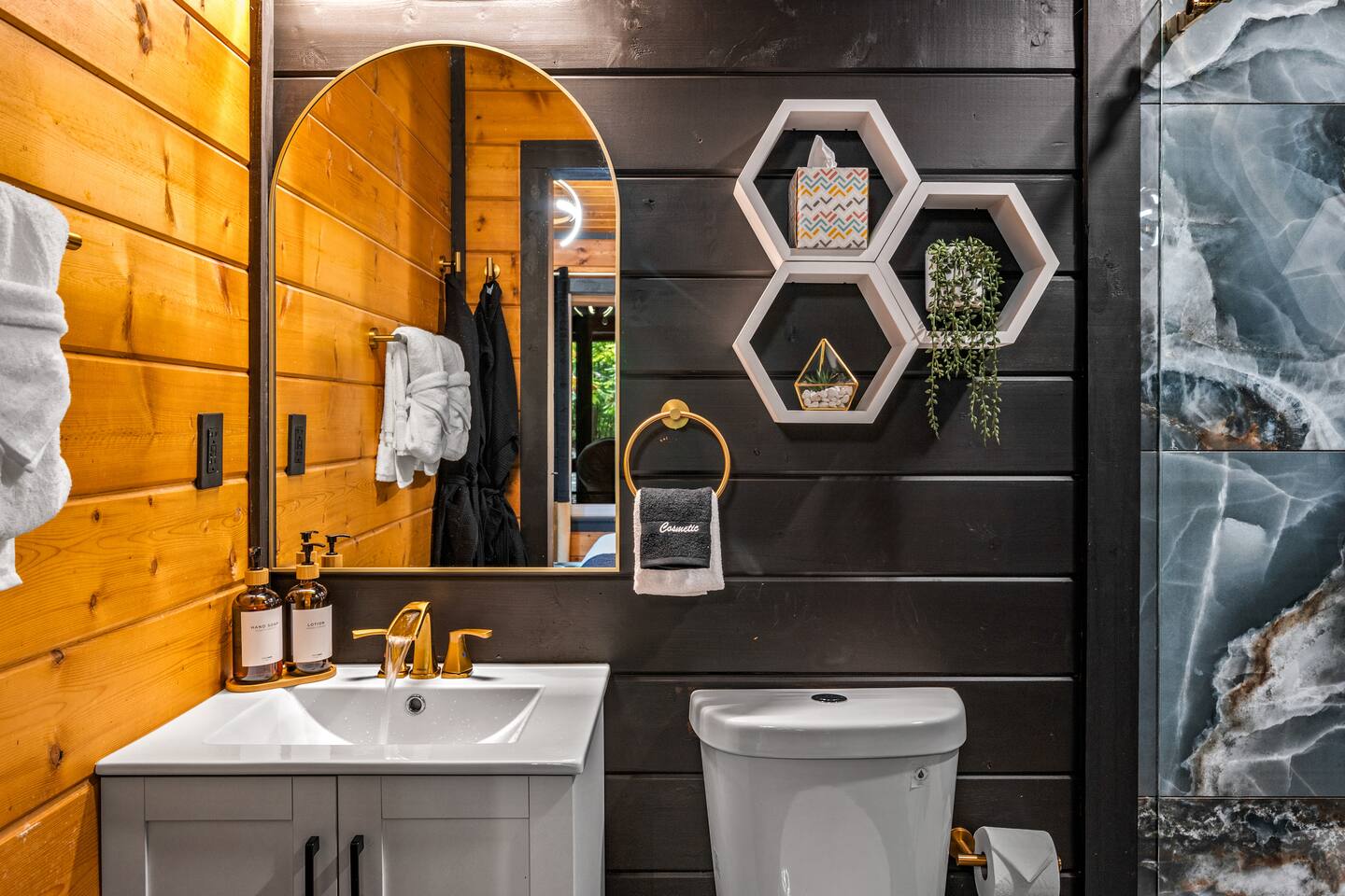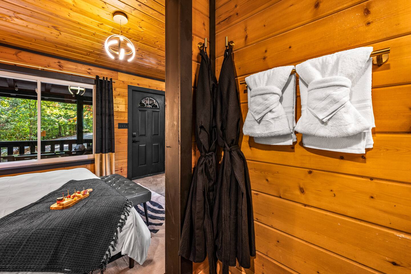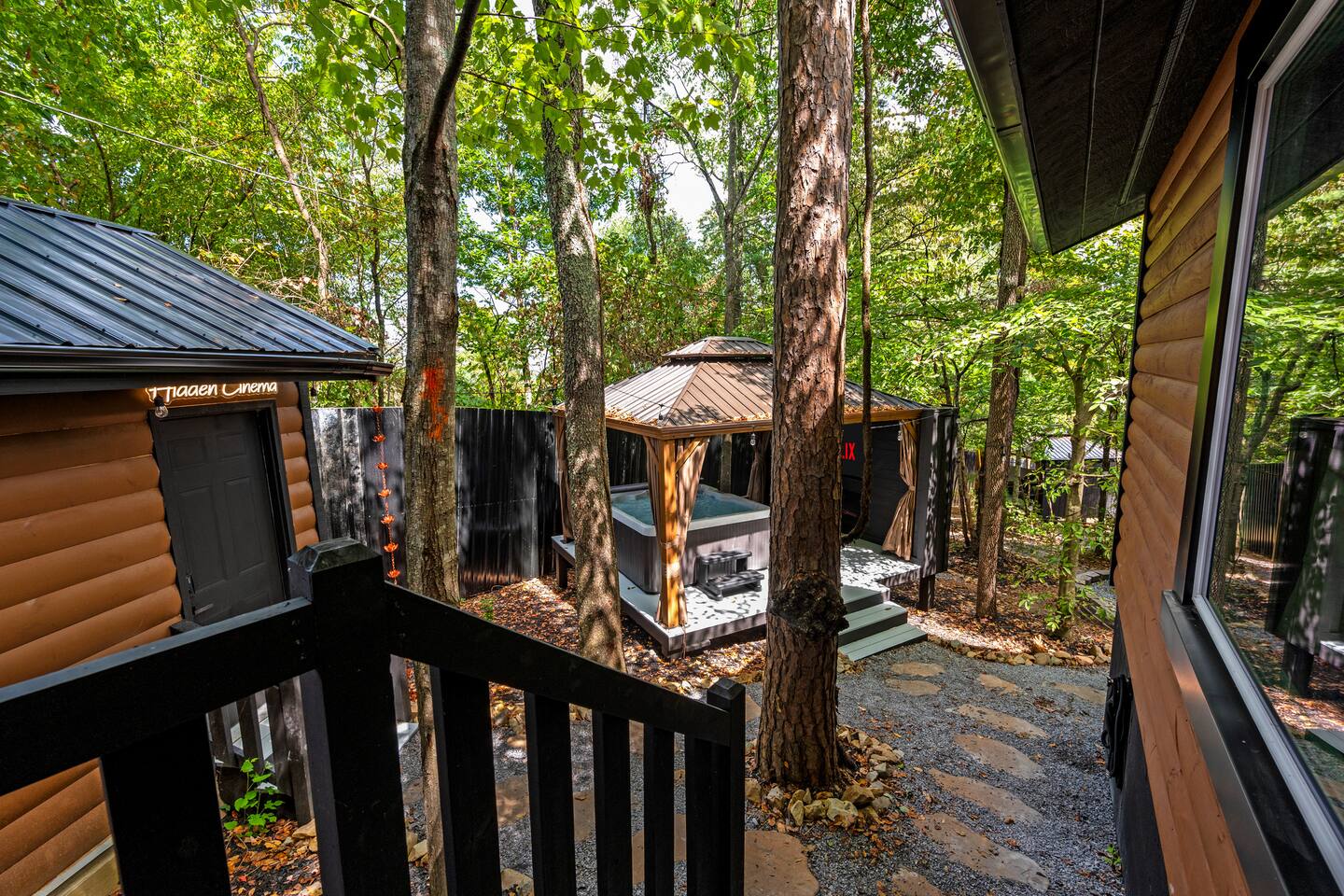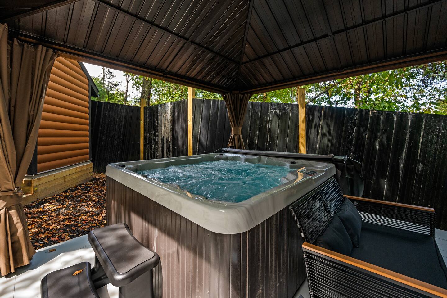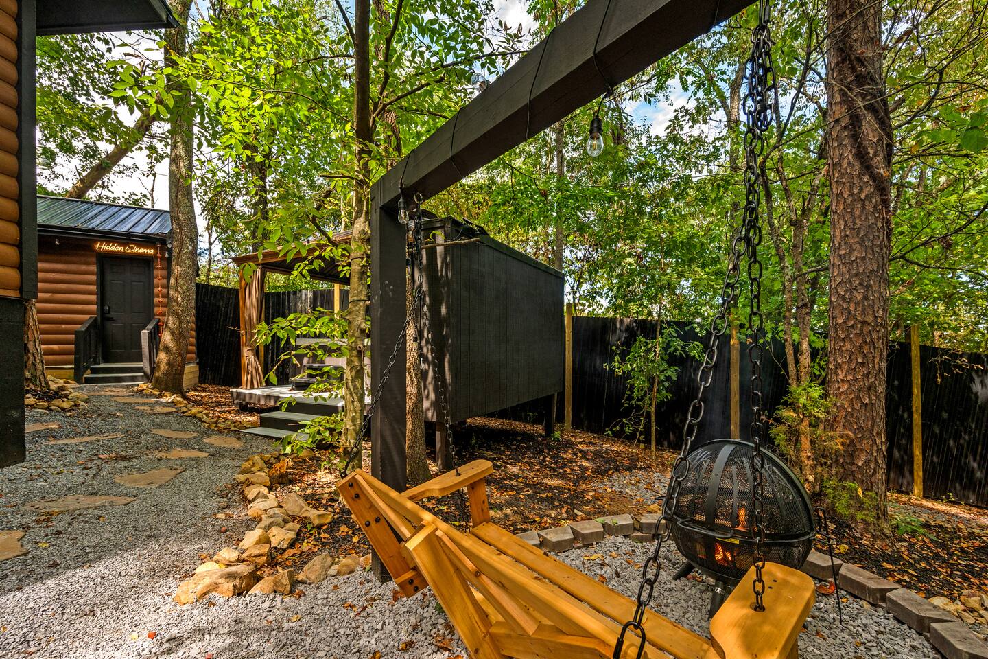 Welcome to Honey Mountain Resort, the perfect getaway for couples! Our five newly renovated luxury honeymoon cabins are thoughtfully designed to create an intimate and romantic atmosphere, ensuring you and your special someone can truly connect. Each cabin features its own private movie theater, hot tub pergola, fire pit, and convenient parking, allowing you to enjoy cozy evenings together under the stars. If your dream cabin is already booked, don’t worry—just click on my profile picture to explore our other enchanting options. We can’t wait to help you create unforgettable memories here at Honey Mountain Resort. Feel free to reach out with any questions; we’re here to assist you! The Hidden Honey is a fully furnished 1 bed, 1 bath studio log cabin with a spacious yard that provides plenty of activities, such as: private theater room, personal hot tub pergola with entertainment center and fire pit. (All these amenities are for your exclusive use, NOT a shared space.) MAIN LIVING AREA: consists of a kitchen, dining table, 65” smart TV, wood burning fireplace, king bed, and a heart shaped jetted tub. KITCHEN: equipped with the essentials to cook a yummy meal, including a Keurig individual cup coffee maker with complimentary coffee pods. BATHROOM: fitted out with a large walk-in tile shower with dual shower head and complimentary shampoo, conditioner and body wash. You will also find cozy waffle bath robes for your comfort. FRONT DECK: you will find a gas fire table with comfy seating and a bbq. PRIVATE THEATER ROOM: can be found just steps from the back deck. The theater room consists of an 85” smart tv with a sound system, 2 leather recliners, barstool eating table, electric fireplace, and popcorn machine. FIRE PIT: as you exit the back of the cabin, you will find a lighted pathway that leads to a 2 seater bench swing with a fire pit, perfect for roasting some s’mores or just enjoying the nature! PERSONAL HOT TUB PERGOLA: as you continue down the lighted pathway, you will find a large pergola fitted out with a 65” tv, electric fireplace and private hot tub. Amenities Included: 🔥 Indoor Wood Burning Fireplace 🪵 Outdoor Wood Burning Fire Pit 🛁 Exclusive Outdoor Hot Tub 🫶🏼 Indoor Love Tub 🍔 BBQ 🔥Outdoor Propane Fire Table 📺 Smart TV 🎬 Free access to Netflix 🔊 WiFi 📽️ Private Theater Room 🚿Walk-in tile shower 🧴Shampoo, conditioner and body wash 👘 Bath Robes ☕️ Coffee Maker ♨️Microwave 💆♀️ Hair dryer 🛏 Plenty of towels, blankets and pillows