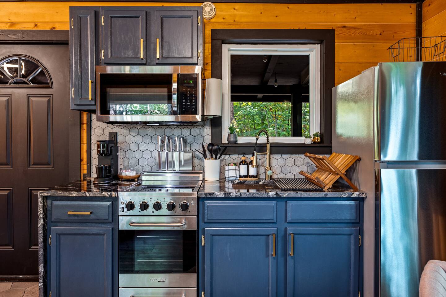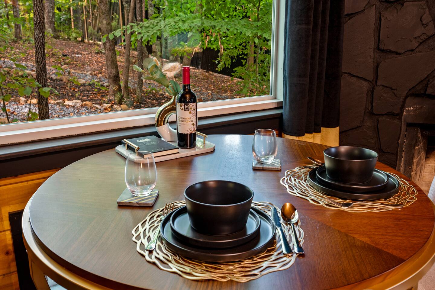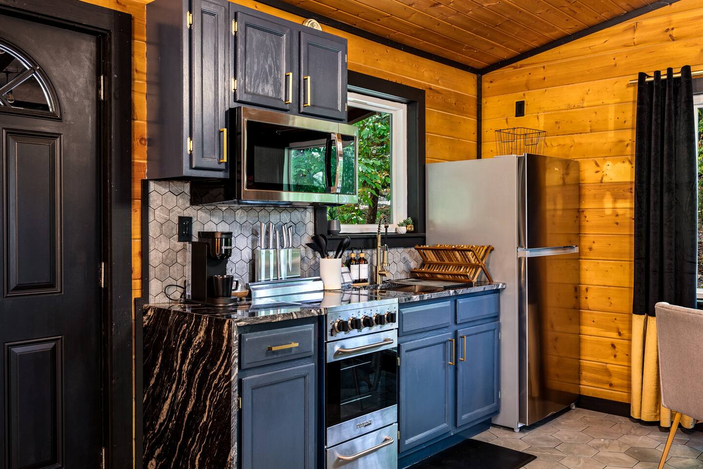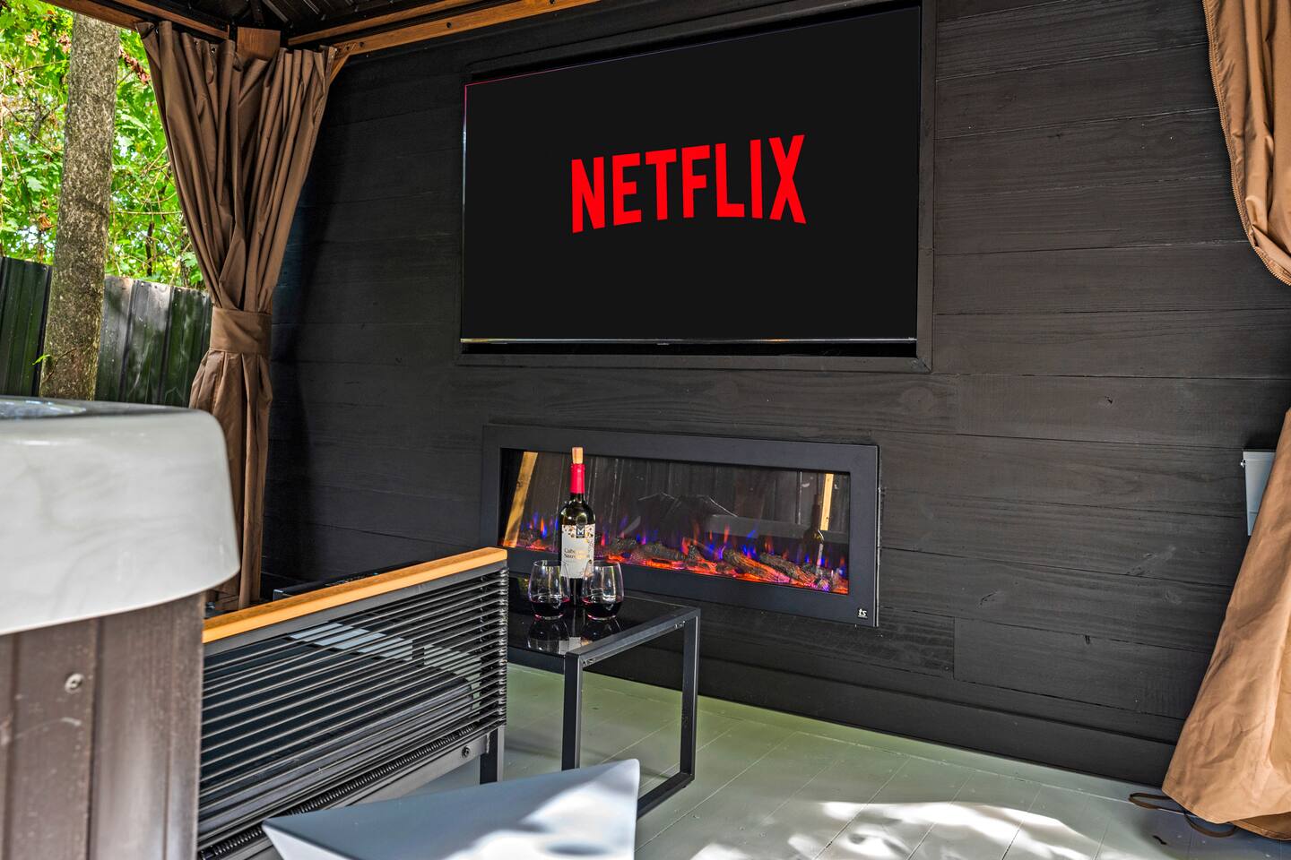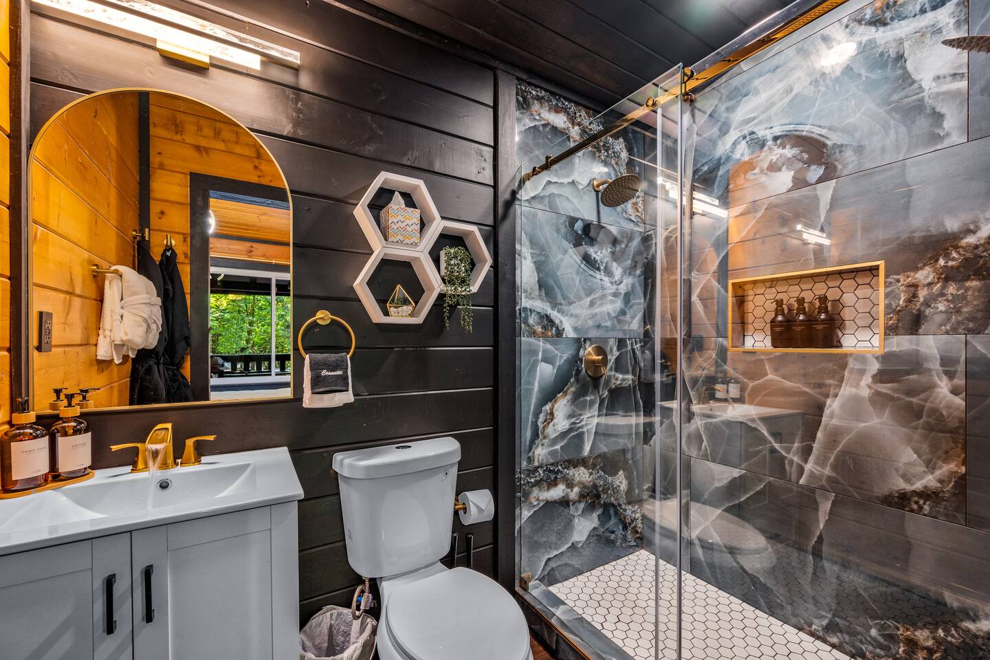 Welcome to Honey Mountain Resort, the perfect getaway for couples! Our five newly renovated luxury honeymoon cabins are thoughtfully designed to create an intimate and romantic atmosphere, ensuring you and your special someone can truly connect. Each cabin features its own private movie theater, hot tub pergola, fire pit, and convenient parking, allowing you to enjoy cozy evenings together under the stars. If your dream cabin is already booked, don’t worry—just click on my profile picture to explore our other enchanting options. We can’t wait to help you create unforgettable memories here at Honey Mountain Resort. Feel free to reach out with any questions; we’re here to assist you! The Hidden Honey is a fully furnished 1 bed, 1 bath studio log cabin with a spacious yard that provides plenty of activities, such as: private theater room, personal hot tub pergola with entertainment center and fire pit. (All these amenities are for your exclusive use, NOT a shared space.) MAIN LIVING AREA: consists of a kitchen, dining table, 65” smart TV, wood burning fireplace, king bed, and a heart shaped jetted tub. KITCHEN: equipped with the essentials to cook a yummy meal, including a Keurig individual cup coffee maker with complimentary coffee pods. BATHROOM: fitted out with a large walk-in tile shower with dual shower head and complimentary shampoo, conditioner and body wash. You will also find cozy waffle bath robes for your comfort. FRONT DECK: you will find a gas fire table with comfy seating and a bbq. PRIVATE THEATER ROOM: can be found just steps from the back deck. The theater room consists of an 85” smart tv with a sound system, 2 leather recliners, barstool eating table, electric fireplace, and popcorn machine. FIRE PIT: as you exit the back of the cabin, you will find a lighted pathway that leads to a 2 seater bench swing with a fire pit, perfect for roasting some s’mores or just enjoying the nature! PERSONAL HOT TUB PERGOLA: as you continue down the lighted pathway, you will find a large pergola fitted out with a 65” tv, electric fireplace and private hot tub. Amenities Included: 🔥 Indoor Wood Burning Fireplace 🪵 Outdoor Wood Burning Fire Pit 🛁 Exclusive Outdoor Hot Tub 🫶🏼 Indoor Love Tub 🍔 BBQ 🔥Outdoor Propane Fire Table 📺 Smart TV 🎬 Free access to Netflix 🔊 WiFi 📽️ Private Theater Room 🚿Walk-in tile shower 🧴Shampoo, conditioner and body wash 👘 Bath Robes ☕️ Coffee Maker ♨️Microwave 💆♀️ Hair dryer 🛏 Plenty of towels, blankets and pillows