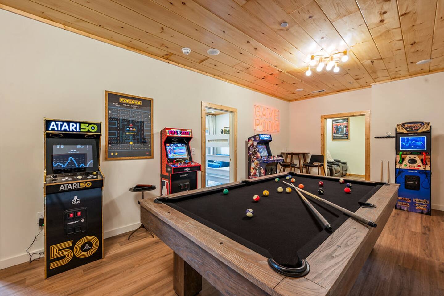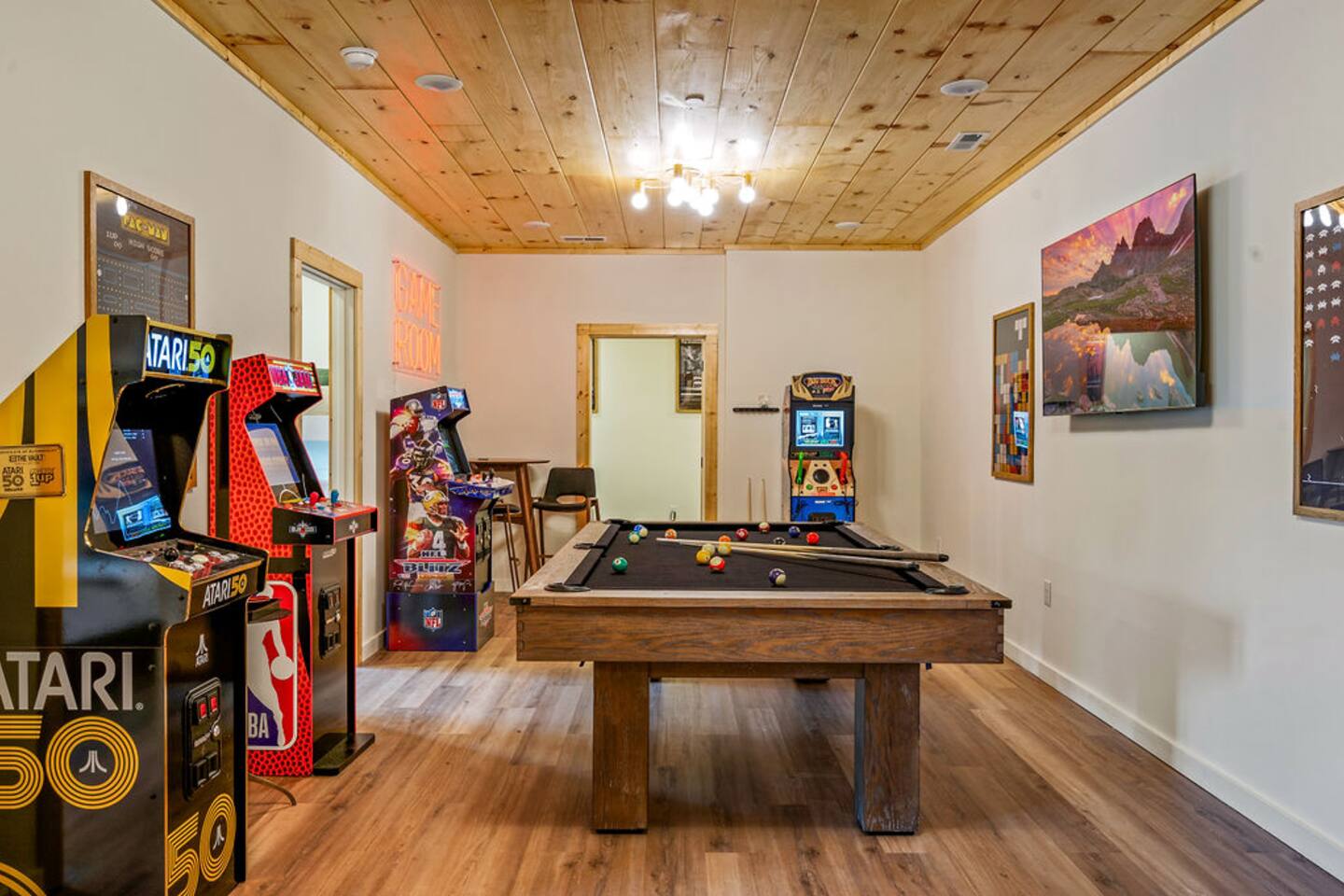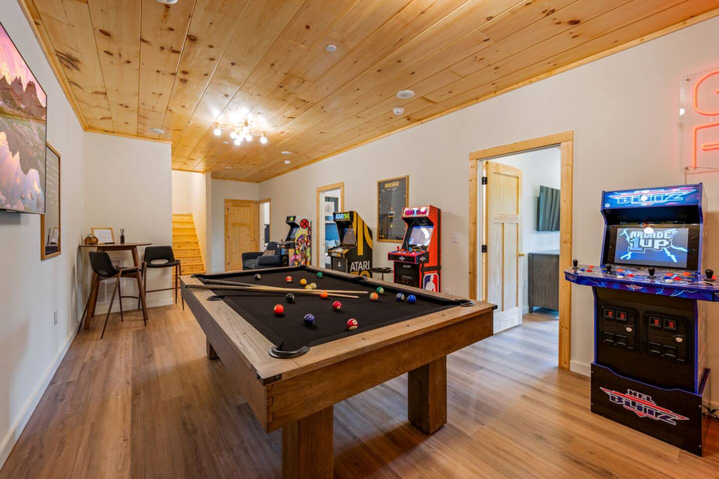 🐻 Chestnut Lodge 🐻 is an ✨exceptional luxury mountain retreat✨ located in the highly sought-after Chalet Village. Perched gracefully along the mountainside and just minutes from downtown Gatlinburg and Pigeon Forge, this exquisite lodge offers the perfect balance of elevated privacy, breathtaking scenery, and effortless access to the area’s top attractions. Designed with intention and sophistication, Chestnut Lodge is ideal for refined group getaways, multi-generational family trips, and unforgettable celebrations with friends. ✨ Sleeping & Private Suites ✨ Thoughtfully designed to sleep up to 16 guests in true comfort, the home features four expansive king en-suite bedrooms, each serving as a private sanctuary. Every en-suite bathroom is finished with custom tile work, walk-in showers, and luxury fixtures—creating a spa-like experience in every suite. The dedicated children’s bunk room offers a queen-over-queen bunk bed and a beautifully appointed en-suite bathroom with a custom tiled tub and shower, making it both elegant and family-friendly. Additional sleeping accommodations include two twin sleeper sofas, discreetly placed in the bunk room and game room to provide flexible options for larger groups. ✨ Upper-Level Owner’s Retreat ✨ The top level showcases two premier king master suites, each with private access to a covered deck offering the most commanding panoramic views of the Smoky Mountains. These suites feature custom tile en-suite bathrooms and serene finishes designed for rest and relaxation. A lofted sitting area overlooks the grand living room below—an intimate space perfect for quiet mornings with coffee, reading, or reconnecting over late-night conversations. ✨ Grand Main Living Area ✨ The main living space is nothing short of breathtaking. Towering ceilings, abundant natural light, and an impressive floor-to-ceiling stacked stone fireplace anchor the room, while two statement chandeliers add warmth and architectural elegance. With ample seating for the entire group, this space is designed for gathering, celebrating, and slowing down together. ✨ Gourmet Kitchen & Dining ✨ Crafted for elevated entertaining, the oversized gourmet kitchen features generous prep space, premium finishes, and is fully stocked with everything needed for memorable home-cooked meals. A large dining table and a striking 10-foot island with breakfast bar seating create the perfect setting for shared meals, celebrations, and long evenings of laughter. Also on the main level is a luxurious king master suite with private deck access and a custom tile spa-style bathroom. ✨ Main-Level Outdoor Living ✨ Step onto the expansive main deck to enjoy outdoor dining for up to 16 guests, a BBQ grill, and a propane fire feature surrounded by plush seating. Overlooking sweeping Smoky Mountain views, this space is ideal for sunrise coffee, sunset dinners, and elegant evenings under the stars. ✨ Lower-Level Entertainment & Leisure ✨ The lower level is a destination of its own. The game room features a pool table, three classic arcade machines, and bar-height tables—perfect for friendly competition and late-night fun. A full laundry room with washer, dryer, and essentials ensures convenience throughout your stay. ✨ Private Suites & Theatre ✨ This level also offers two additional king en-suite bedrooms, each with custom tile bathrooms and private access to the lower deck, along with an additional children’s bunk room and bathroom. Just beyond the game room, a private movie theatre invites cozy family movie nights and immersive entertainment. ✨ Lower-Level Outdoor Oasis ✨ The lower deck features a 20-foot heated swim spa, ideal for relaxation or play, along with comfortable seating and cornhole boards—set against the tranquil backdrop of the Smoky Mountains. 🚗 Easy Access & Parking 🚗 The property offers parking for up to 5 vehicles with a smooth, non-steep driveway, making arrival and departure effortless year-round. With bespoke finishes, custom tile spa bathrooms in every bedroom, dramatic mountain views, and resort-style amenities throughout, Chestnut Lodge delivers a truly elevated Smoky Mountain experience. ✨ Reserve your stay and experience mountain luxury at its finest. ✨ Amenities that are included: 🔥Gas interior stone fireplace 🔥Gas exterior fire feature 🍔BBQ Grill (propane provided) 🛁🏊♂️ Hot Tub/Swim Spa 📺 Smart TV in every room 🔊 High speed internet 🧴Shampoo, conditioner and body wash in every bathroom 🧼 Dish washer (pods provided) 🍞 Toaster ☕️ Coffee Maker (coffee pods provided to get you started) ♨️ Microwave 🎬Movie Theatre 🎱Pool Table 🕹️Arcade 🎥🍿 Popcorn Maker 🧺 Washer and dryer (detergent and dryer sheets provided) 👔 Iron + board 💆♀️ Hair dryer (in every bathroom) 🚿Walk-in tile shower (5x) 🛁 Bathtub 🛏️ Plenty of towels, blankets and pillows 🧻 Plenty of toilet paper and paper towels 🫒 Olive Oil Corn Hole ‼️ATTENTION‼️ Here is important information to enhance your stay. Prepare for a luxurious woodland adventure where you might encounter adorable critters 🐻🍃, and remember that you are surrounded by woods, so encountering harmless bugs 🪲 is inevitable. Using the hot tub is entirely at your own risk ⚠️. Smoking of any kind is strictly prohibited inside the property 🚭. If our cleaners detect any signs of smoking inside, a $500 fee will be charged. Please keep all smoking on the exterior away from entry ways. Please adhere to our check-in and check-out timings ⏰. Unauthorized early check-ins or late check-outs are prohibited and will incur additional charges. If the guest fails to vacate the property on time, a fee of $50.00 will be charged for the first half-hour and $100.00 for each subsequent half-hour. Due to Mother Nature's unpredictability 🌪️, we do not provide refunds for weather-related issues, natural disasters, power