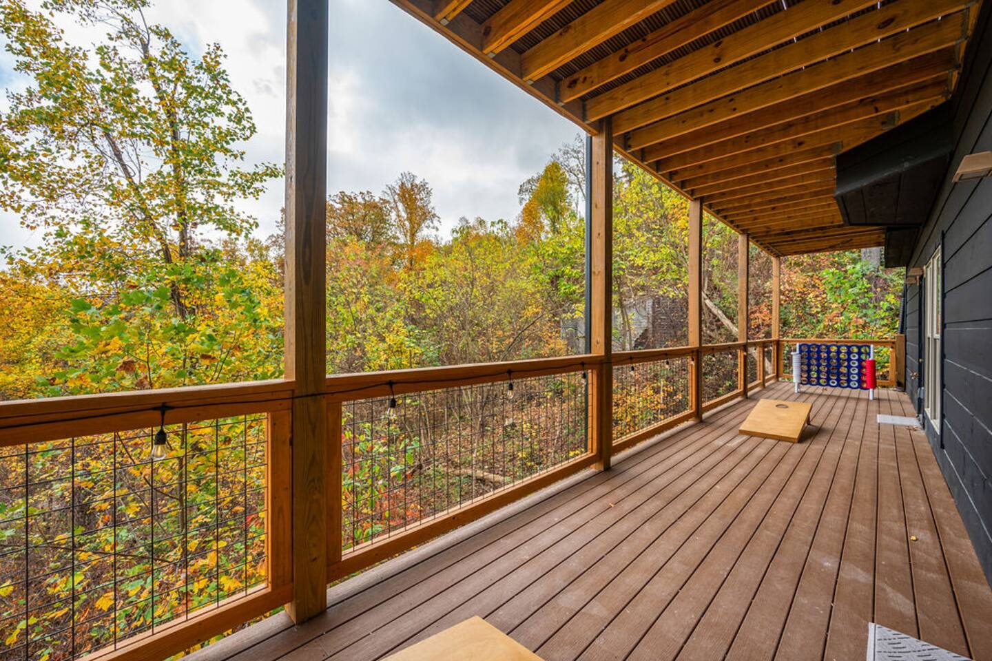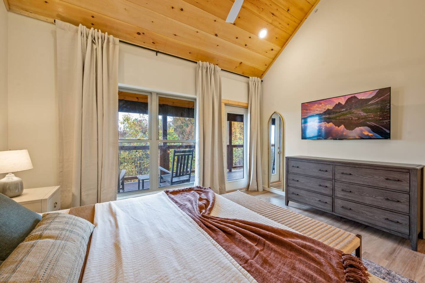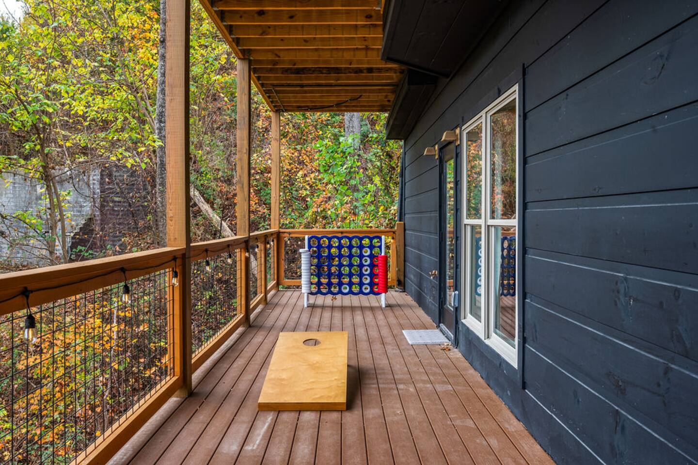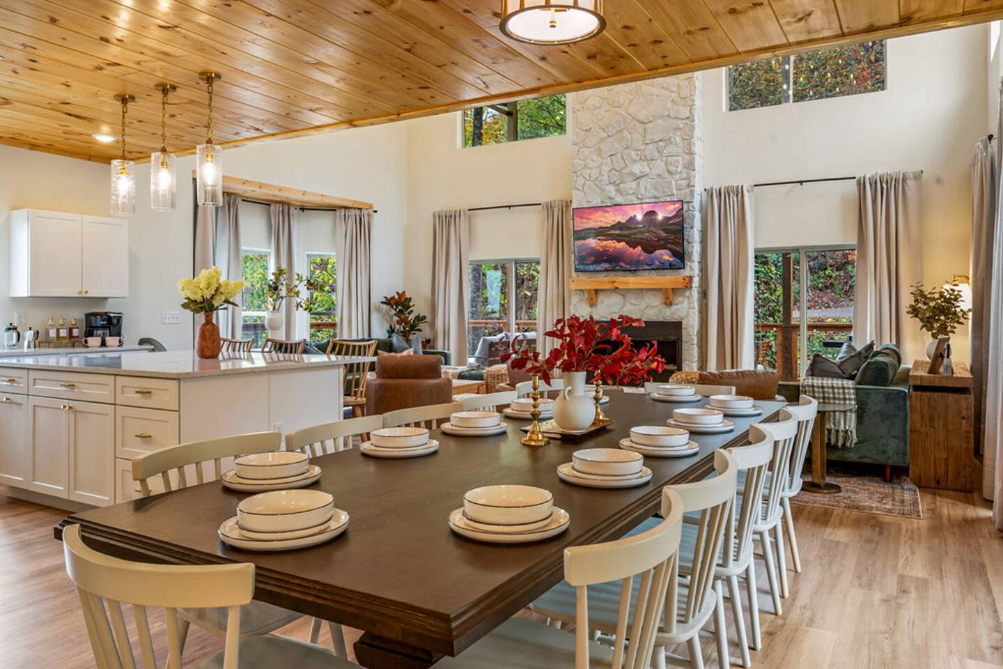 🐻 Chestnut Lodge 🐻 is an ✨exceptional luxury mountain retreat✨ located in the highly sought-after Chalet Village. Perched gracefully along the mountainside and just minutes from downtown Gatlinburg and Pigeon Forge, this exquisite lodge offers the perfect balance of elevated privacy, breathtaking scenery, and effortless access to the area’s top attractions. Designed with intention and sophistication, Chestnut Lodge is ideal for refined group getaways, multi-generational family trips, and unforgettable celebrations with friends. ✨ Sleeping & Private Suites ✨ Thoughtfully designed to sleep up to 16 guests in true comfort, the home features four expansive king en-suite bedrooms, each serving as a private sanctuary. Every en-suite bathroom is finished with custom tile work, walk-in showers, and luxury fixtures—creating a spa-like experience in every suite. The dedicated children’s bunk room offers a queen-over-queen bunk bed and a beautifully appointed en-suite bathroom with a custom tiled tub and shower, making it both elegant and family-friendly. Additional sleeping accommodations include two twin sleeper sofas, discreetly placed in the bunk room and game room to provide flexible options for larger groups. ✨ Upper-Level Owner’s Retreat ✨ The top level showcases two premier king master suites, each with private access to a covered deck offering the most commanding panoramic views of the Smoky Mountains. These suites feature custom tile en-suite bathrooms and serene finishes designed for rest and relaxation. A lofted sitting area overlooks the grand living room below—an intimate space perfect for quiet mornings with coffee, reading, or reconnecting over late-night conversations. ✨ Grand Main Living Area ✨ The main living space is nothing short of breathtaking. Towering ceilings, abundant natural light, and an impressive floor-to-ceiling stacked stone fireplace anchor the room, while two statement chandeliers add warmth and architectural elegance. With ample seating for the entire group, this space is designed for gathering, celebrating, and slowing down together. ✨ Gourmet Kitchen & Dining ✨ Crafted for elevated entertaining, the oversized gourmet kitchen features generous prep space, premium finishes, and is fully stocked with everything needed for memorable home-cooked meals. A large dining table and a striking 10-foot island with breakfast bar seating create the perfect setting for shared meals, celebrations, and long evenings of laughter. Also on the main level is a luxurious king master suite with private deck access and a custom tile spa-style bathroom. ✨ Main-Level Outdoor Living ✨ Step onto the expansive main deck to enjoy outdoor dining for up to 16 guests, a BBQ grill, and a propane fire feature surrounded by plush seating. Overlooking sweeping Smoky Mountain views, this space is ideal for sunrise coffee, sunset dinners, and elegant evenings under the stars. ✨ Lower-Level Entertainment & Leisure ✨ The lower level is a destination of its own. The game room features a pool table, three classic arcade machines, and bar-height tables—perfect for friendly competition and late-night fun. A full laundry room with washer, dryer, and essentials ensures convenience throughout your stay. ✨ Private Suites & Theatre ✨ This level also offers two additional king en-suite bedrooms, each with custom tile bathrooms and private access to the lower deck, along with an additional children’s bunk room and bathroom. Just beyond the game room, a private movie theatre invites cozy family movie nights and immersive entertainment. ✨ Lower-Level Outdoor Oasis ✨ The lower deck features a 20-foot heated swim spa, ideal for relaxation or play, along with comfortable seating and cornhole boards—set against the tranquil backdrop of the Smoky Mountains. 🚗 Easy Access & Parking 🚗 The property offers parking for up to 5 vehicles with a smooth, non-steep driveway, making arrival and departure effortless year-round. With bespoke finishes, custom tile spa bathrooms in every bedroom, dramatic mountain views, and resort-style amenities throughout, Chestnut Lodge delivers a truly elevated Smoky Mountain experience. ✨ Reserve your stay and experience mountain luxury at its finest. ✨ Amenities that are included: 🔥Gas interior stone fireplace 🔥Gas exterior fire feature 🍔BBQ Grill (propane provided) 🛁🏊♂️ Hot Tub/Swim Spa 📺 Smart TV in every room 🔊 High speed internet 🧴Shampoo, conditioner and body wash in every bathroom 🧼 Dish washer (pods provided) 🍞 Toaster ☕️ Coffee Maker (coffee pods provided to get you started) ♨️ Microwave 🎬Movie Theatre 🎱Pool Table 🕹️Arcade 🎥🍿 Popcorn Maker 🧺 Washer and dryer (detergent and dryer sheets provided) 👔 Iron + board 💆♀️ Hair dryer (in every bathroom) 🚿Walk-in tile shower (5x) 🛁 Bathtub 🛏️ Plenty of towels, blankets and pillows 🧻 Plenty of toilet paper and paper towels 🫒 Olive Oil Corn Hole ‼️ATTENTION‼️ Here is important information to enhance your stay. Prepare for a luxurious woodland adventure where you might encounter adorable critters 🐻🍃, and remember that you are surrounded by woods, so encountering harmless bugs 🪲 is inevitable. Using the hot tub is entirely at your own risk ⚠️. Smoking of any kind is strictly prohibited inside the property 🚭. If our cleaners detect any signs of smoking inside, a $500 fee will be charged. Please keep all smoking on the exterior away from entry ways. Please adhere to our check-in and check-out timings ⏰. Unauthorized early check-ins or late check-outs are prohibited and will incur additional charges. If the guest fails to vacate the property on time, a fee of $50.00 will be charged for the first half-hour and $100.00 for each subsequent half-hour. Due to Mother Nature's unpredictability 🌪️, we do not provide refunds for weather-related issues, natural disasters, power