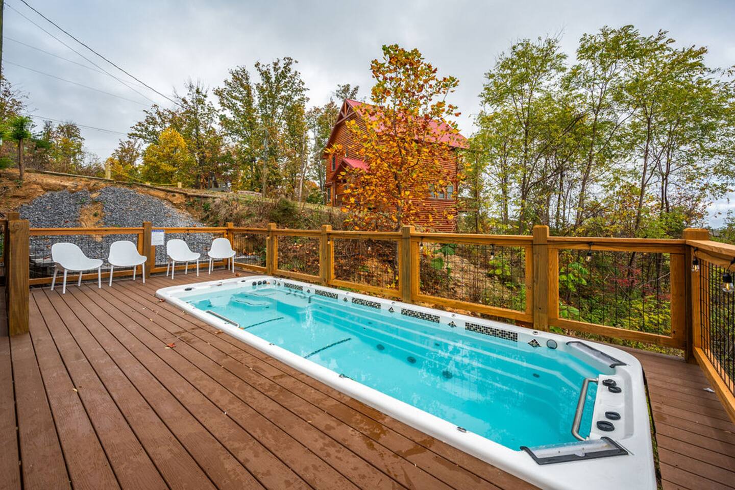 ✨Chestnut Lodge✨is a luxe Smoky Mountain retreat perched in the prestigious Chalet Village, just minutes from Gatlinburg and Pigeon Forge. Sleeps 16, making it perfect for families and groups seeking space, comfort, and breathtaking mountain views. Enjoy epic game nights, private movie screenings, and a heated swim spa for year-round fun. Secluded yet convenient, Chestnut Lodge is where unforgettable mountain memories are made. 📍10 min GSMNP🐻 📍10 min Gatlinburg⛰️ 📍15 PF🎡 📍20 Dollywood🎢