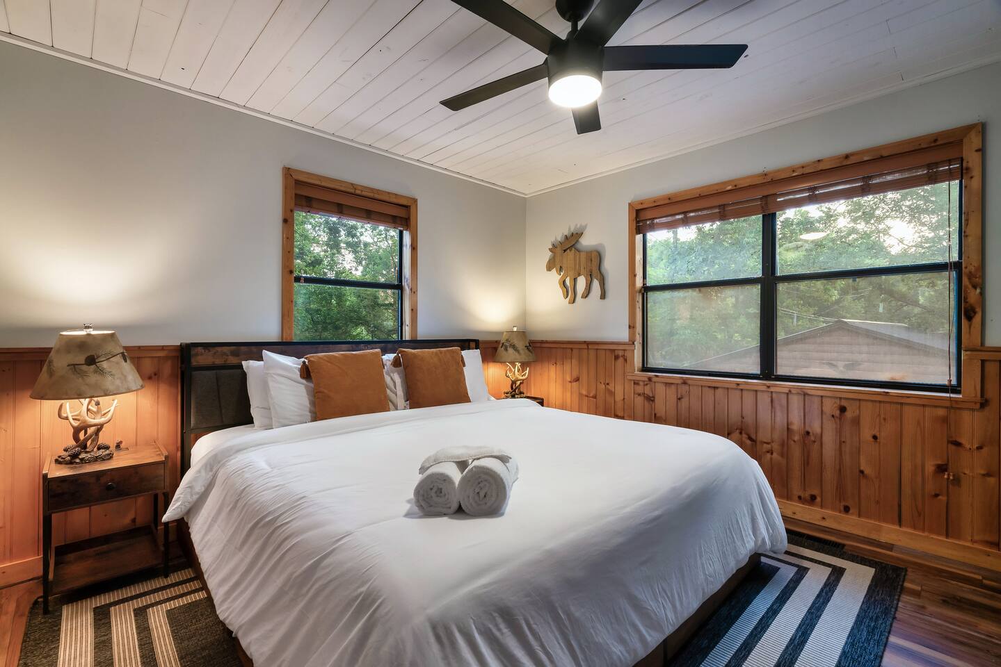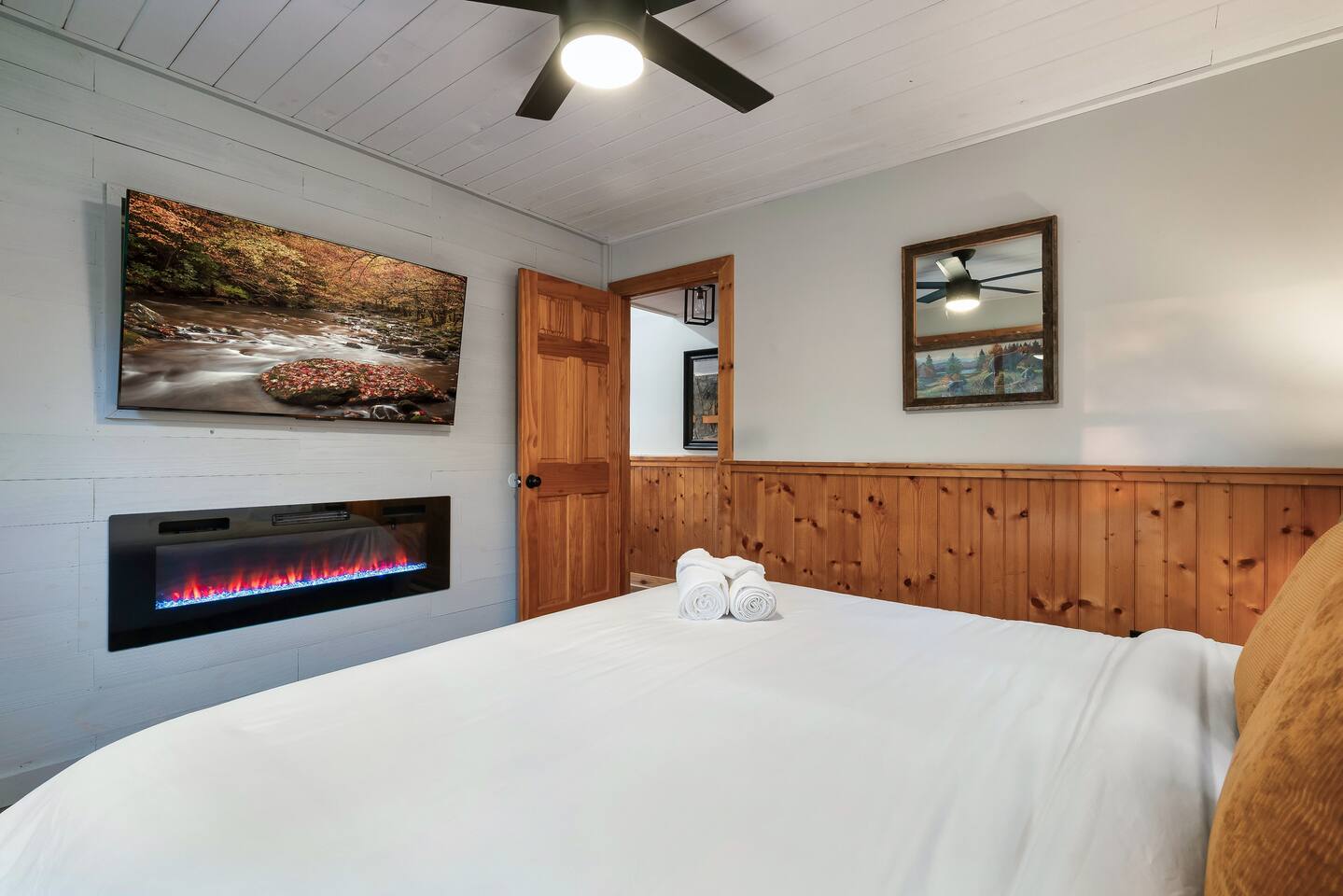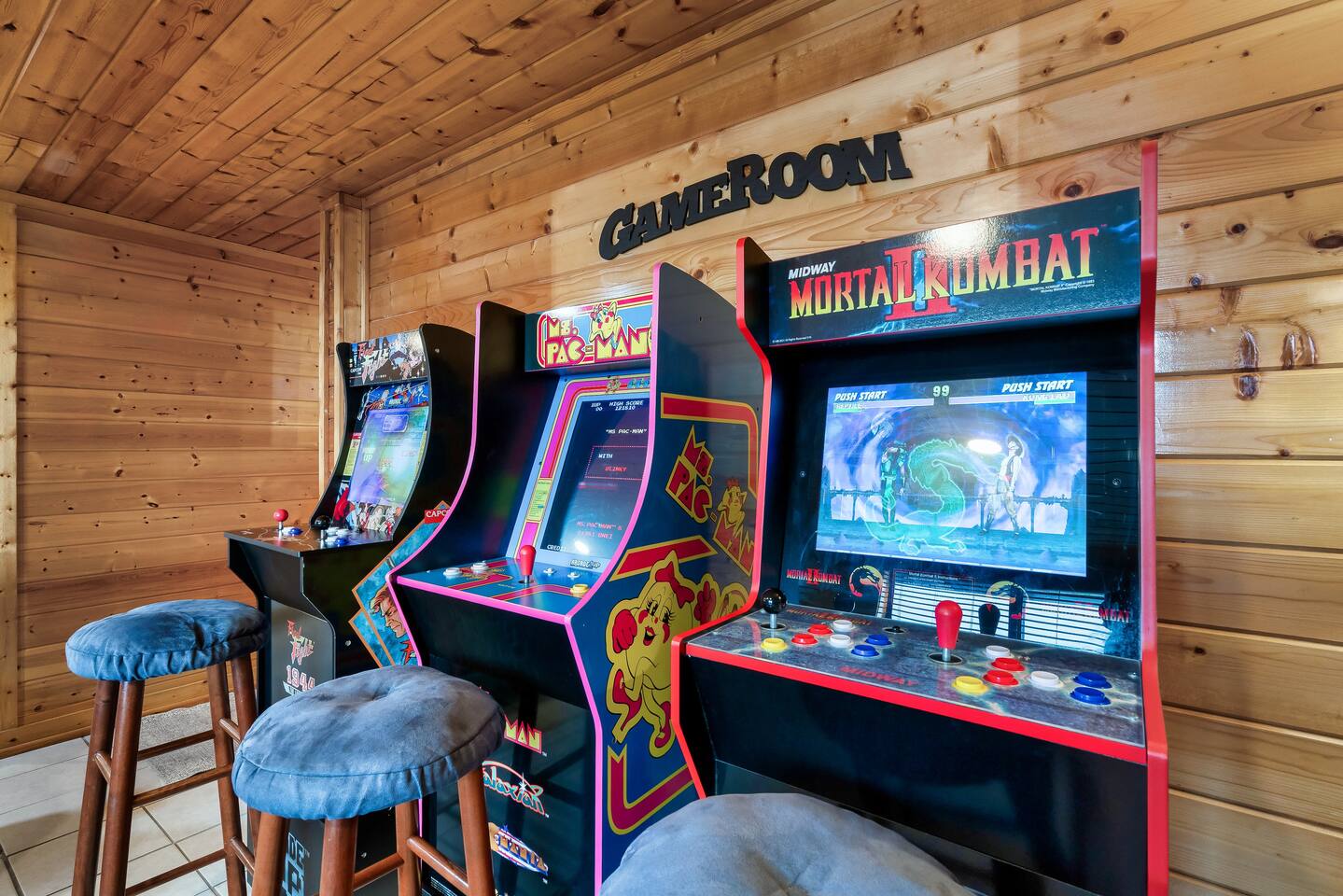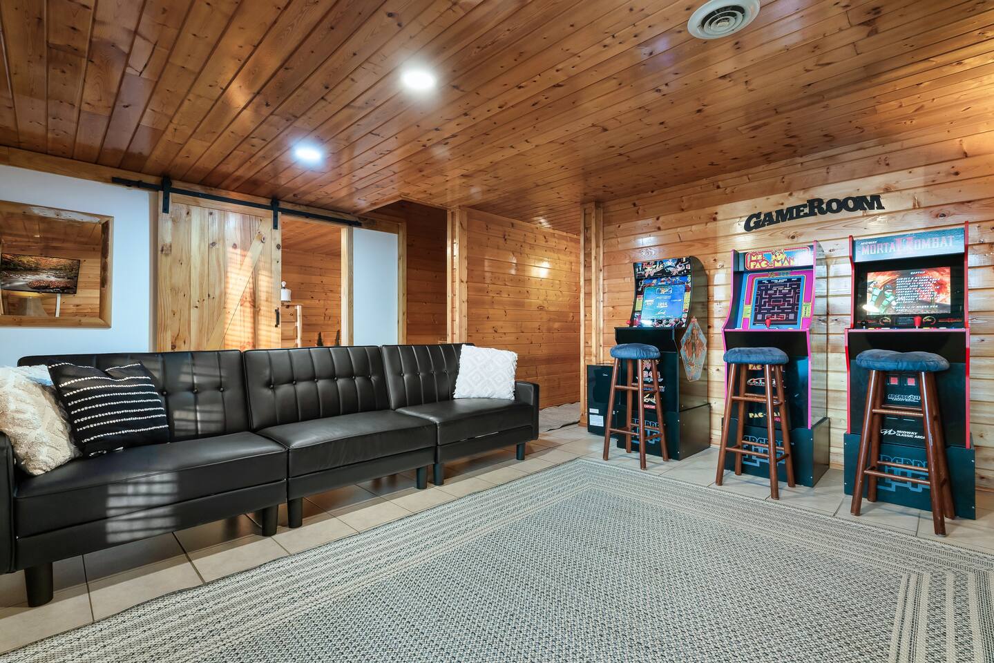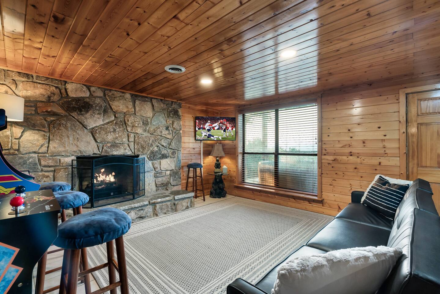 ✨ Island View ✨ is the ultimate family-friendly Smoky Mountain getaway—nestled on the mountainside with stunning year-round views of the Smokies and Pigeon Forge. From Dollywood fireworks to the glowing Ferris wheel at The Island, the views are pure magic—right from the cabin! Designed with families in mind, this updated cabin features 2 comfy king bedrooms, 2 bathrooms, and a bunk room with a Twin/Queen bunk and standalone queen bed—giving everyone space to rest and recharge. Inside, whip up meals in the fully stocked kitchen, gather around the large dining table, and kick back on the oversized couch wrapped in cozy throws while enjoying the floor-to-ceiling mountain views. Kids (and grownups!) will love the arcade room, and evenings around the private firepit are perfect for stories, s’mores, and starry skies. Whether you're exploring nearby attractions or simply soaking in the peace, Island View is made for quality time and unforgettable family moments Just a short drive from the cabin and you'll be at all the hotspots the Smoky Mountains offer. Whether you’re unwinding indoors or exploring the peaceful outdoors, Island View offers a cozy, fun-filled getaway that creates lasting memories. ✨Main Level✨ Discover comfort and convenience with a king bedroom with floor to ceiling TV + Fireplace insert with built in closet. The fully equipped kitchen, dining area, and living room flow seamlessly in an open floor plan, keeping everyone connected. Enjoy a wood burning stack stone fireplace that beautifully accents the wall of windows. Step outside to the spacious deck, where multiple seating areas including a bench swing — perfect for relaxing and soaking in the stunning mountain views🍃 You will also find a full bath with common access. ✨Lower Level✨ Descend the stairs to see that the stacked stone wood burning fireplace continues in the vibrant arcade, where friendly competition awaits with multiple arcade machines each loaded with dozens of games. Just beyond the game room, discover a cozy bunkroom with 1 twin/queen bunk + a standalone queen bed—an ideal spot for the kids to sleep. And yes, there’s a convenient Full bathroom with common access and laundry room. Amenities Included: 🔥 Indoor Wood Burning Fireplace x2 🪵 Outdoor Wood Burning Fire Pit 🛁 Exclusive Outdoor Hot Tub 🍔 BBQ 📺 Smart TV 🔊 WiFi Arcade Machine 🚿Walk-in tile shower 🧴Shampoo, conditioner and body wash to get you started ☕️ Coffee Maker + K-Cups ♨️Microwave 💆♀️ Hair dryer 🛏 Plenty of towels, blankets and pillows Plenty of toilet paper and paper towels Olive Oil Salt & Pepper ‼️ATTENTION‼️ Here is important information to enhance your stay. Prepare for a luxurious woodland adventure where you might encounter adorable critters 🐻🍃, and remember that you are surrounded by woods, so encountering harmless bugs 🪲 is inevitable. Using the hot tub is entirely at your own risk ⚠️. Smoking of any kind is strictly prohibited on the property 🚭. If our cleaners detect any signs of smoking, a $500 fee will be charged. Please adhere to our check-in and check-out timings ⏰. Unauthorized early check-ins or late check-outs are prohibited and will incur additional charges. If the guest fails to vacate the property on time, a fee of $50.00 will be charged for the first half-hour and $100.00 for each subsequent half-hour. Due to Mother Nature's unpredictability 🌪️, we do not provide refunds for weather-related issues, natural disasters, power outages, or events beyond our control. We highly recommend guests to purchase travel insurance. Although we love our furry friends 🐶🐱, we have a strict no-pets policy on the premises. If our cleaners discover any violation of this rule, you will be charged an additional cleaning fee of $500. An outdoor security camera 🎥 monitoring the driveway operates 24/7, recording movement and sound solely for safety reasons. Be reassured that there are NO indoor cameras or cameras pointing towards the front or back of the house, preserving your privacy.