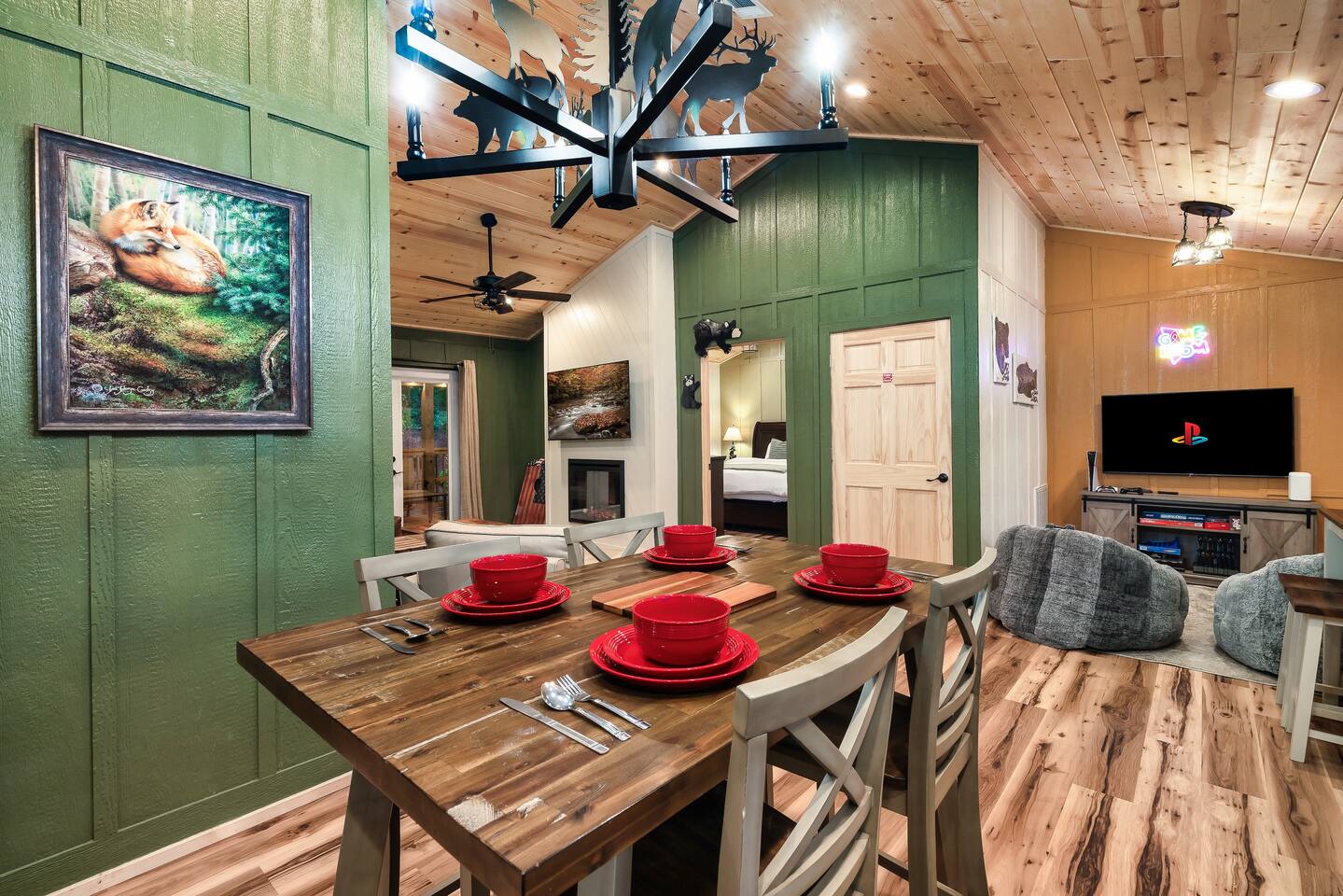 Welcome to 🦊Copper Fox—your cozy Smoky Mountain basecamp, perfect for a small family getaway or a retreat for two couples. Unwind in the hot tub, challenge your crew to a game of corn hole, and enjoy the perfect mix of comfort and adventure. With ✨2 King Ensuites✨ and easy year-round access (no steep roads!) Centrally located and surrounded by nature🌳 yet close to all the action. Come for the fun—leave with unforgettable memories. 📍5 to GSMNP🐻 📍5 to Gat⛰️ 📍15 to PF🎡 📍20 to Dollywood🎢