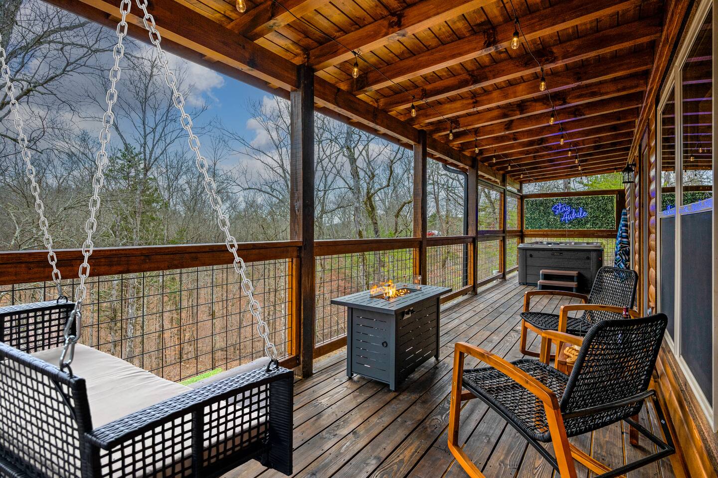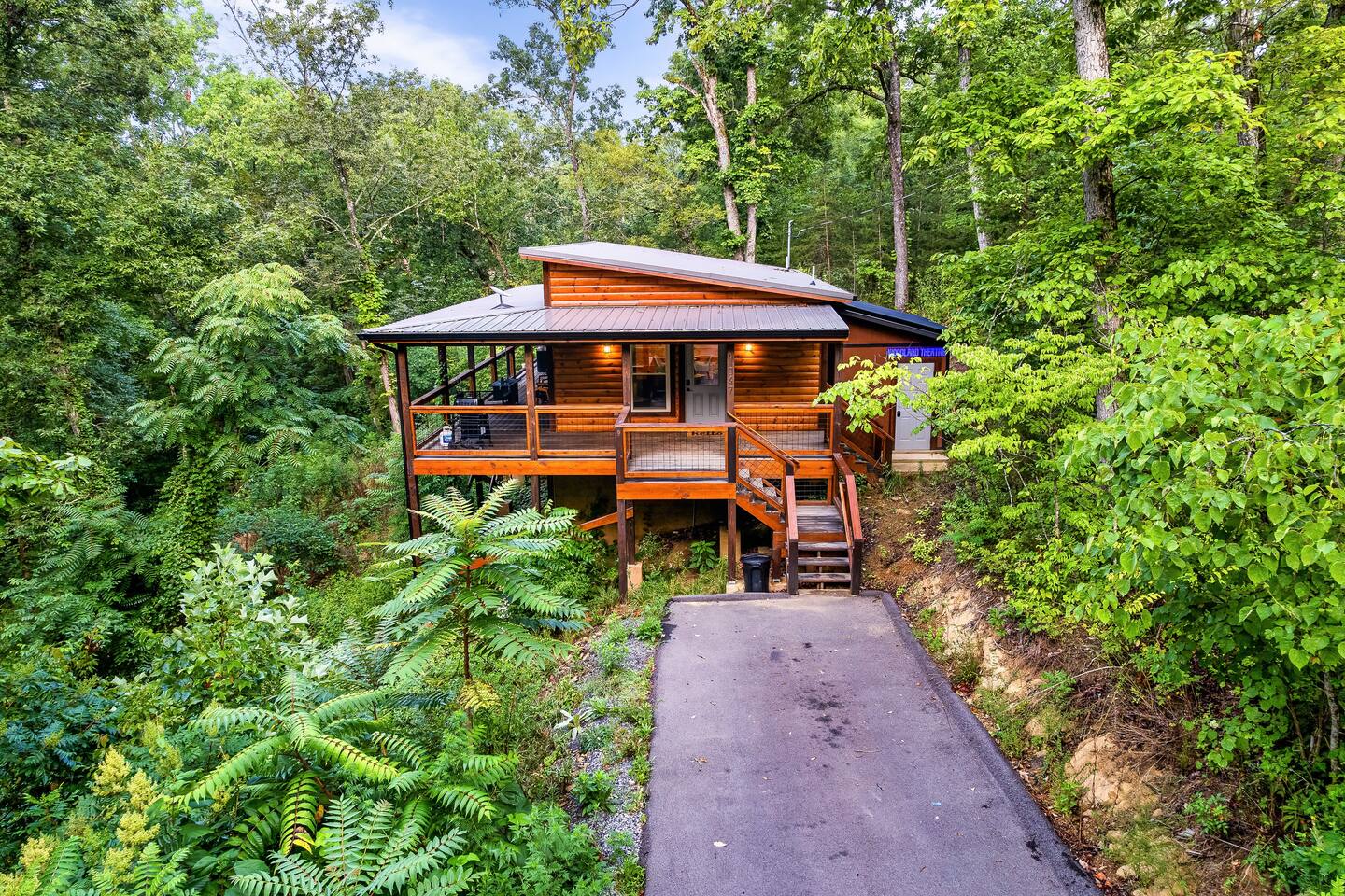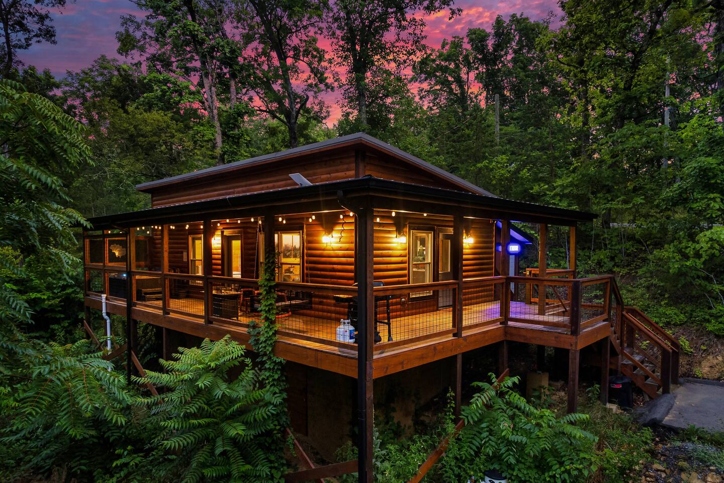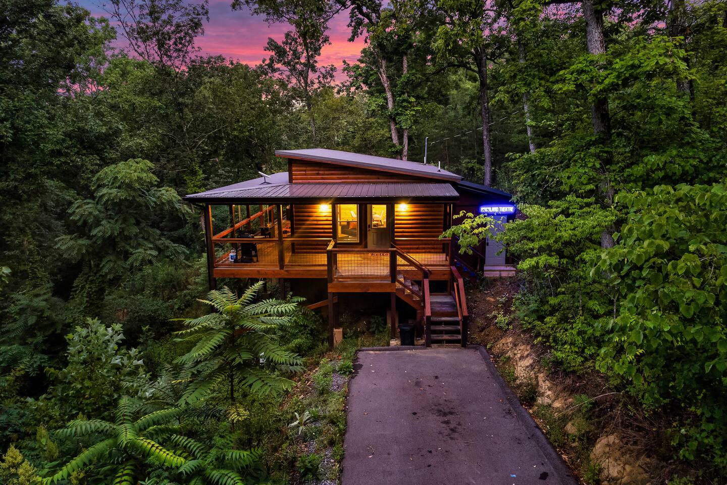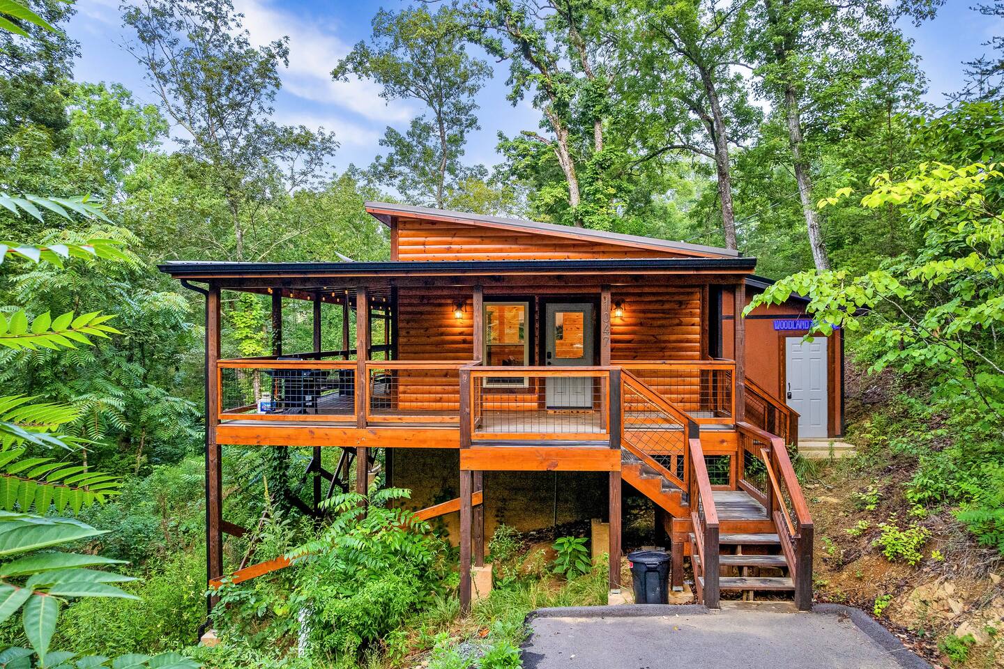 Welcome to Woodland Escape, your enchanting retreat in the heart of the Great Smoky Mountains! This romantic one bedroom honeymoon cabin offers an intimate getaway with a touch of magic. Step inside and discover the rustic charm and modern luxury that define this cabin. The cabin's interior captivates with tasteful decor and large windows that frame the natural beauty outside. The well-equipped kitchen invites you to create romantic meals, while the deck beckons with the promise of unforgettable moments. As night falls, soak in the outdoor hot tub and let the ambiance of the fire feature create a magical setting. Imagine cozy evenings by the fire, surrounded by the sounds of nature and the fresh mountain air. The deck becomes your private sanctuary, offering a perfect blend of warmth and tranquility. The highlight of your stay is the custom couples movie theater, providing an intimate setting for you to enjoy your favorite films together. Snuggle up in the cozy seating and immerse yourselves in a cinematic experience like no other. Whether you're celebrating your honeymoon or simply seeking a romantic getaway, Woodland Escape promises a perfect blend of seclusion and luxury. Book your stay and create lasting memories in this charming cabin! Amenities Included: 🔥 Propane Burning Fireplace in Living Room 🪵 Propane Burning Fire Table on the Deck 🪑Hanging Porch Swing 🛁 Outdoor Hot Tub 🍔 BBQ 📺 Smart TV 🎬 Free access to Netflix 🍿Private movie theatre 🔊 WiFi 🚿Shower 🧴Shampoo, conditioner and body wash 👘 Bath Robes ☕️ Coffee Maker ♨️ Microwave 💆♀️ Hair dryer 🧺 Washer + dryer 🛏 Plenty of towels, blankets and pillows 🎲 Board Games + Puzzle