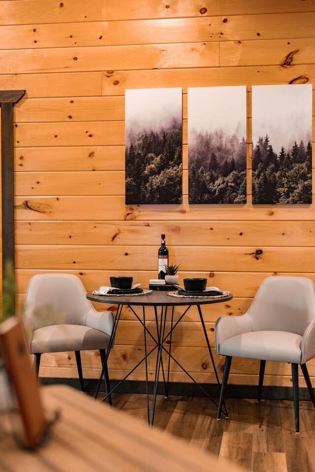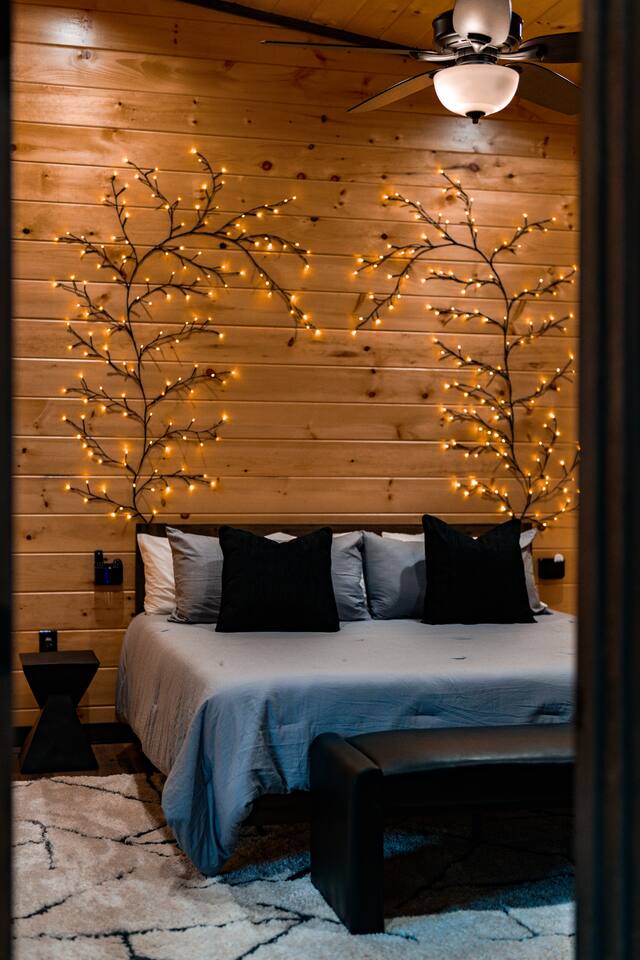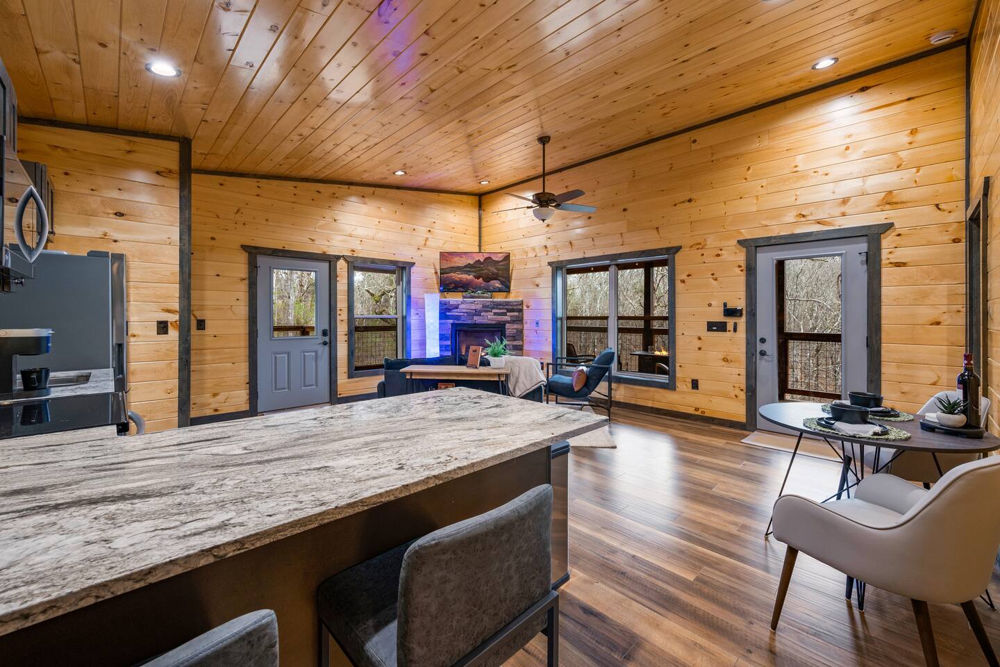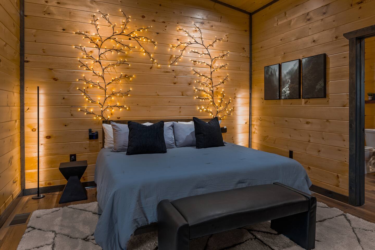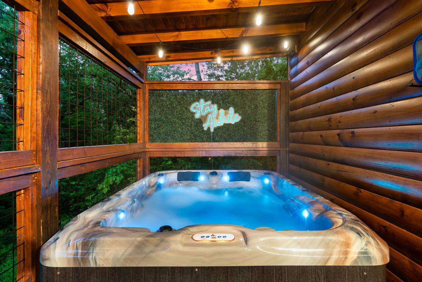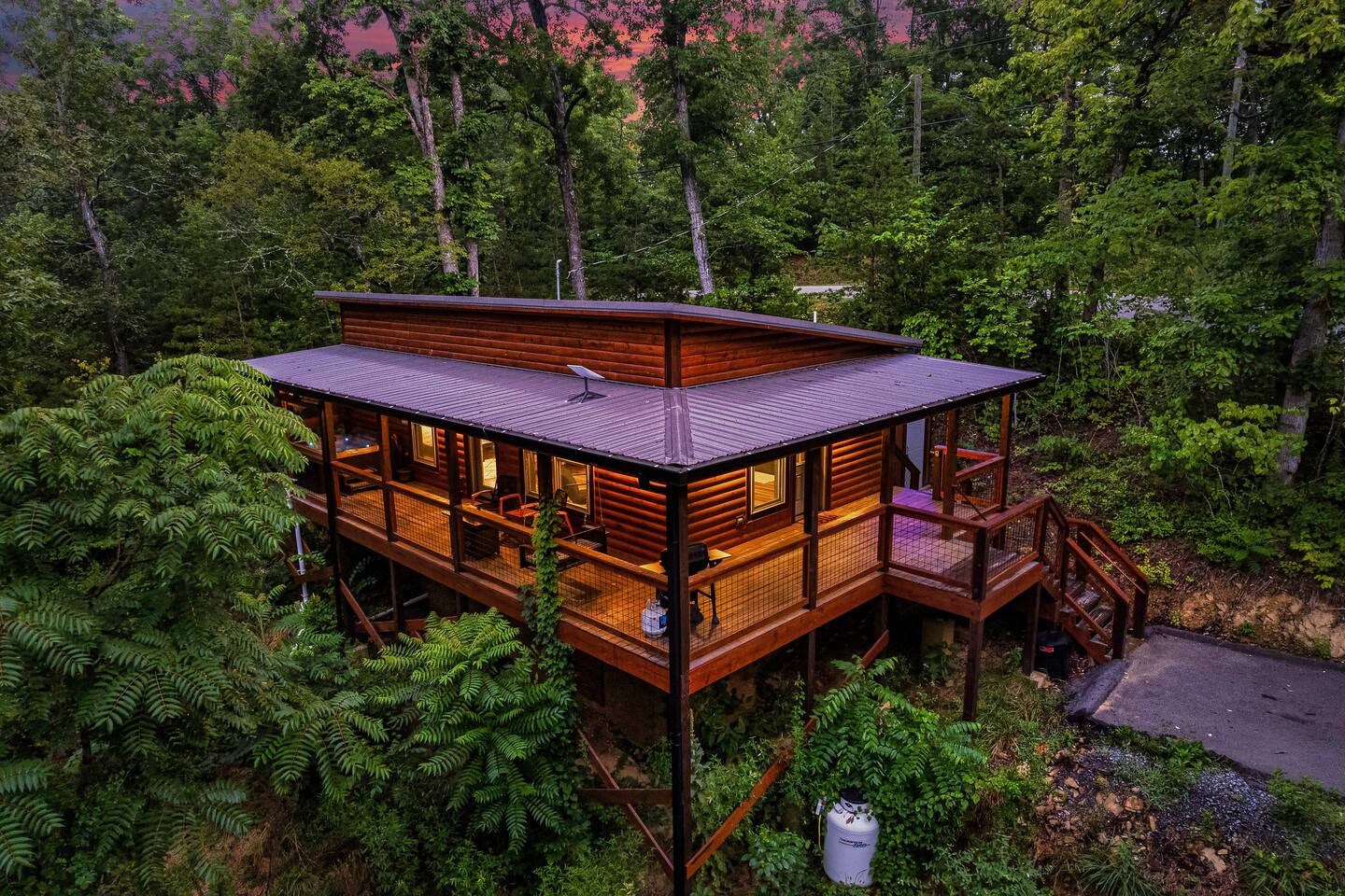 Welcome to Woodland Escape, your enchanting retreat in the heart of the Great Smoky Mountains! This romantic one bedroom honeymoon cabin offers an intimate getaway with a touch of magic. Step inside and discover the rustic charm and modern luxury that define this cabin. The cabin's interior captivates with tasteful decor and large windows that frame the natural beauty outside. The well-equipped kitchen invites you to create romantic meals, while the deck beckons with the promise of unforgettable moments. As night falls, soak in the outdoor hot tub and let the ambiance of the fire feature create a magical setting. Imagine cozy evenings by the fire, surrounded by the sounds of nature and the fresh mountain air. The deck becomes your private sanctuary, offering a perfect blend of warmth and tranquility. The highlight of your stay is the custom couples movie theater, providing an intimate setting for you to enjoy your favorite films together. Snuggle up in the cozy seating and immerse yourselves in a cinematic experience like no other. Whether you're celebrating your honeymoon or simply seeking a romantic getaway, Woodland Escape promises a perfect blend of seclusion and luxury. Book your stay and create lasting memories in this charming cabin! Amenities Included: 🔥 Propane Burning Fireplace in Living Room 🪵 Propane Burning Fire Table on the Deck 🪑Hanging Porch Swing 🛁 Outdoor Hot Tub 🍔 BBQ 📺 Smart TV 🎬 Free access to Netflix 🍿Private movie theatre 🔊 WiFi 🚿Shower 🧴Shampoo, conditioner and body wash 👘 Bath Robes ☕️ Coffee Maker ♨️ Microwave 💆♀️ Hair dryer 🧺 Washer + dryer 🛏 Plenty of towels, blankets and pillows 🎲 Board Games + Puzzle