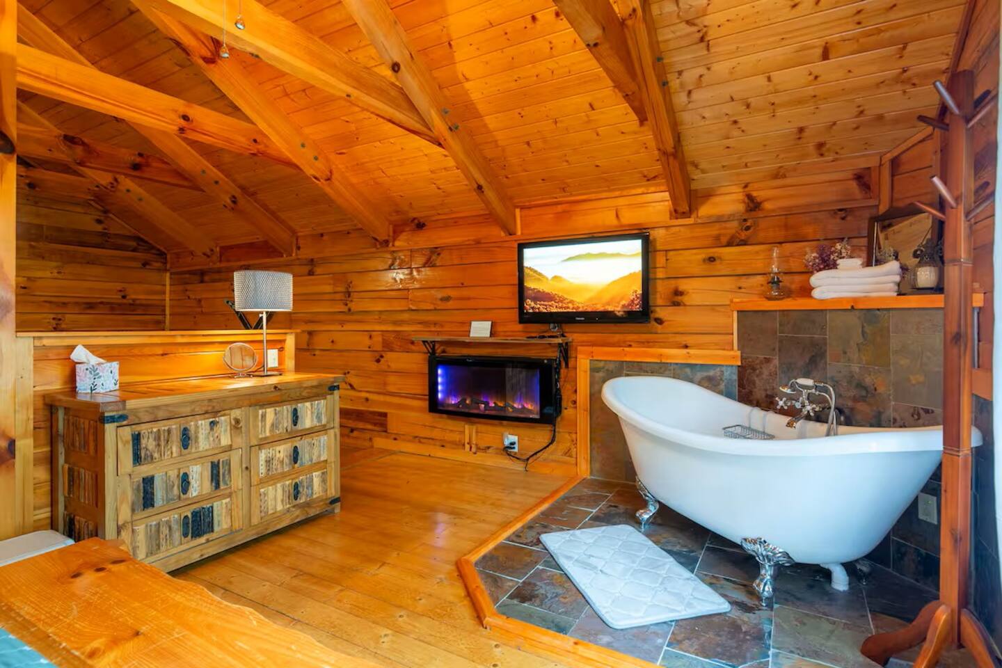 Welcome to ✨Mt. Ever-Rest✨ your cozy home base in the Smoky Mountains. This classic three-story cabin is all about stunning views, peaceful vibes, and easy access to everything the area has to offer. You’ll have 2 comfy king bedrooms (one with its own private deck), 2 full bathrooms, and plenty of space to spread out and relax. Whether you're sipping coffee on the deck, battling it out on the arcade machine, or just kicking back after a day of exploring, this place is perfect for couples, families, or a small group of friends. Ample parking for up to 2 vehicles. Tucked away in the mountains 🏔️ but just a short drive to all the local attractions, ✨Mt. Ever-Rest✨ gives you the best of both worlds—quiet mornings, fun-filled days, and cozy nights. Sleeping: 🛏️2x King Beds 🛋️ 1x Pull-Out Sofa in Living Room (Queen) Amenities that are included: 🍔Blackstone Grill 🔥Electric & Gas fireplace 🛀Claw Foot Tub 🛁 Hot Tub 📺 Smart TV in every room 🔊 High speed internet 🧴Shampoo, conditioner and body wash in every bathroom 🧼 Dish washer (pods provided) 🍞 Toaster ☕️ Coffee Maker (coffee pods provided to get you started) ♨️ Microwave 🕹️Arcade Machine ⚽️🥅Foosball 🧺 Washer and dryer (detergent and dryer sheets provided) 👔 Iron + board 💆♀️ Hair dryer 🛏️ Plenty of towels, blankets and pillows