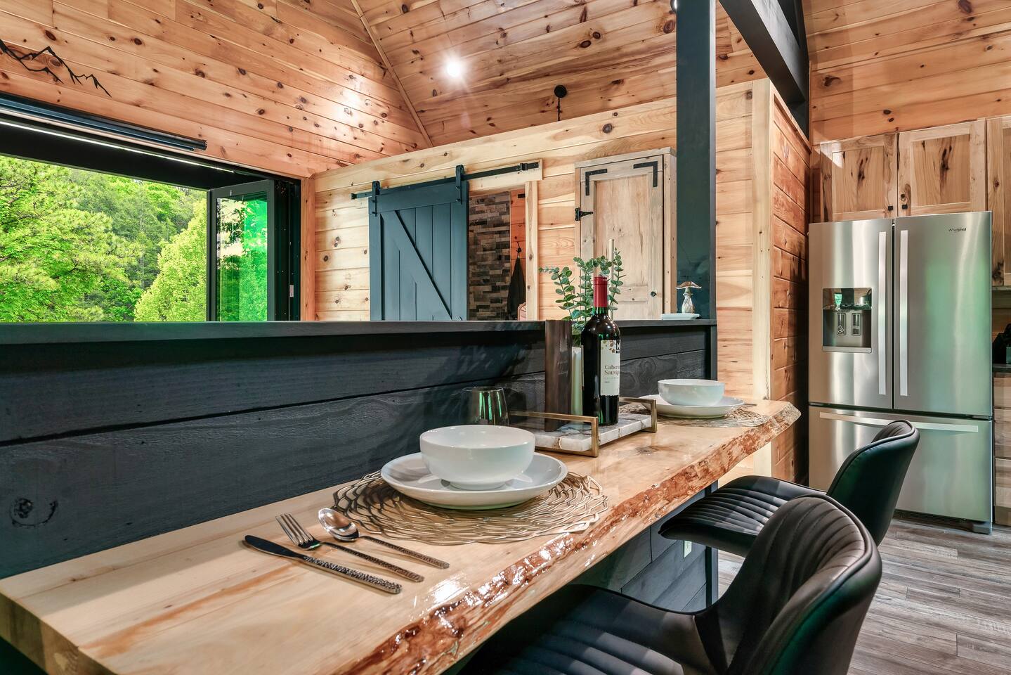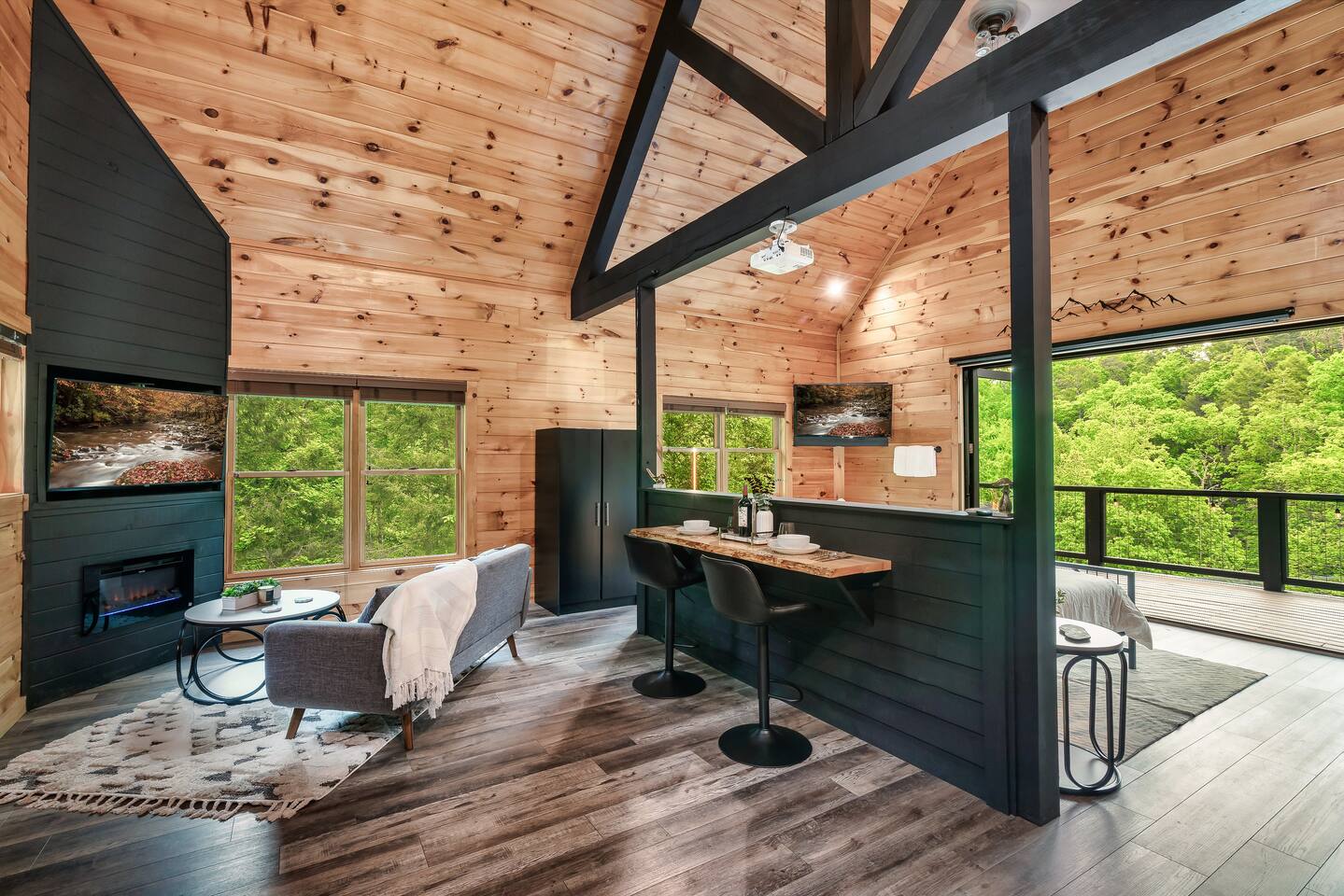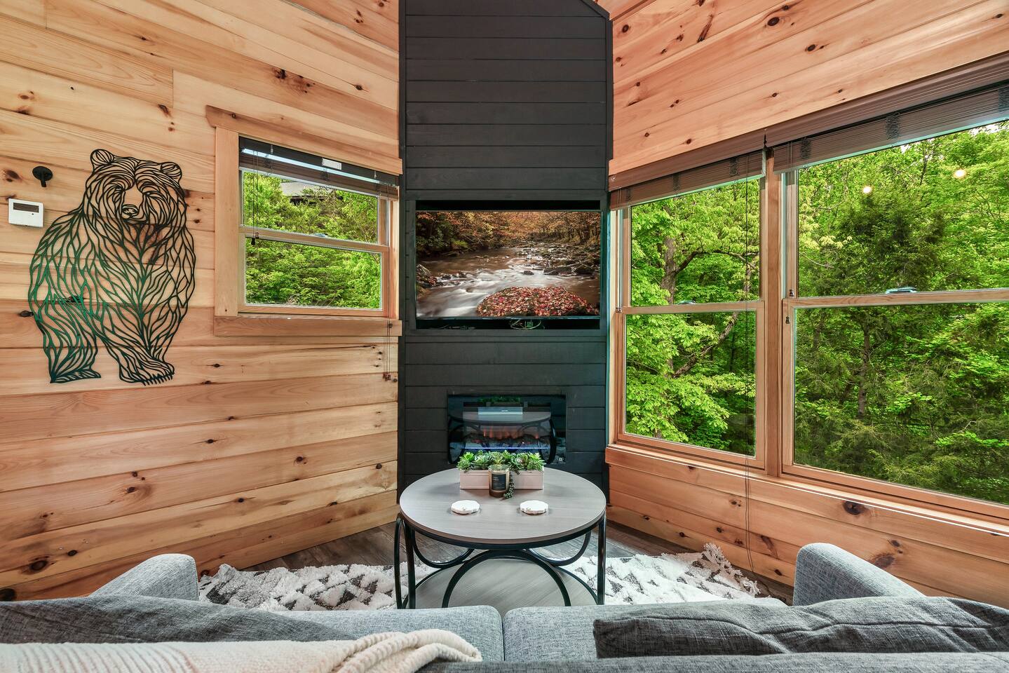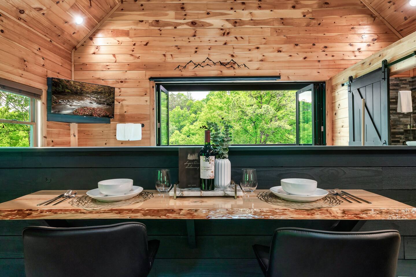 ❣️ The Sugar Tree Hideaway ❣️ is a brand-new ✨ romantic retreat ✨ made just for two—tucked into the woods, yet only minutes from the Pigeon Forge Strip. Inside, you’ll be wrapped in luxury. Sink into the lavish king bed, soak away your cares in the free-standing tub, or refresh in the spa-inspired walk-in shower. Share meals at the intimate live-edge dining table overlooking a wall of windows—or turn dinner into movie night with the automated 100" projector screen. Step outside to your private oasis. Toast by the glowing fire feature, or slip into the hot tub together as the forest surrounds you in peace and privacy. Every detail was designed with romance in mind—making The Sugar Tree Hideaway the perfect escape for couples ready to reconnect and unwind. The ✨Bedroom✨ features dual nightstands ready to power up your gadgets, a dresser with hangers to store your cloths for those longer stays, and a 55" TV! The ✨Bathroom✨ features a beautiful tile walk-in shower with plenty of space for 2🚿! It provides shampoo, conditioner, body wash, lotion and 2 plush waffle bathrobes for extra bliss.... The ✨Kitchen ✨ is stocked with high-quality cookware🧑🏻🍳. A spice rack, Keurig Duo, Oil, Salt & Pepper, Keurig Duo with a few pods to kickstart your day ☕️. ✨ Movie Magic at The Sugar Tree Hideaway ✨ With just the touch of a button, the wall of windows transforms into your own private cinema as a 100" projector screen glides down. Snuggle up on the king bed or share a meal at the dining bar while enjoying your favorite films on the big screen 🎬🍿. The ✨Exterior✨ Dive into the hot tub with a glass of wine🍷—because soaking and sipping is basically couple’s therapy. Cozy up by the fire 🔥 on the patio chairs, or sizzle some BBQ 🍔 ‼️ATTENTION‼️ Here is important information to enhance your stay. Prepare for a luxurious woodland adventure where you might encounter adorable critters 🐻🍃, and remember that you are surrounded by woods, so encountering harmless bugs 🪲 is inevitable. Using the hot tub is entirely at your own risk ⚠️. Smoking of any kind is strictly prohibited on the property 🚭. If our cleaners detect any signs of smoking, a $500 fee will be charged. Please adhere to our check-in and check-out timings ⏰. Unauthorized early check-ins or late check-outs are prohibited and will incur additional charges. If the guest fails to vacate the property on time, a fee of $50.00 will be charged for the first half-hour and $100.00 for each subsequent half-hour. Due to Mother Nature's unpredictability 🌪️, we do not provide refunds for weather-related issues, natural disasters, power outages, or events beyond our control. Although we love our furry friends 🐶🐱, we have a strict no-pets policy on the premises. If our cleaners discover any violation of this rule, you will be charged an additional cleaning fee of $500. An outdoor security camera 🎥 monitoring the driveway operates 24/7, recording movement and sound solely for safety reasons. Be reassured that there are NO indoor cameras or cameras pointing towards the front or back of the house, preserving your privacy.