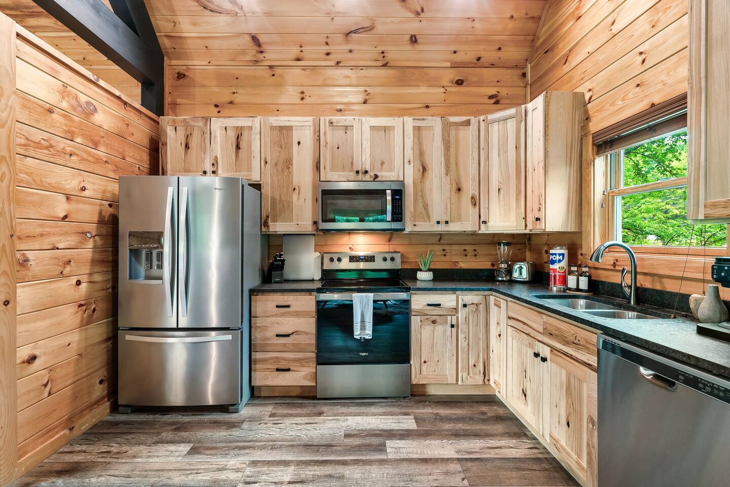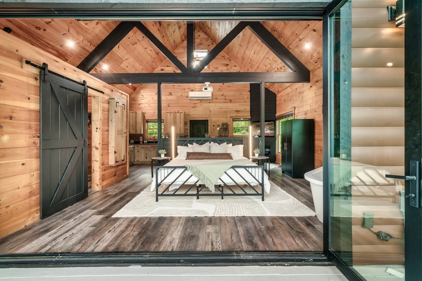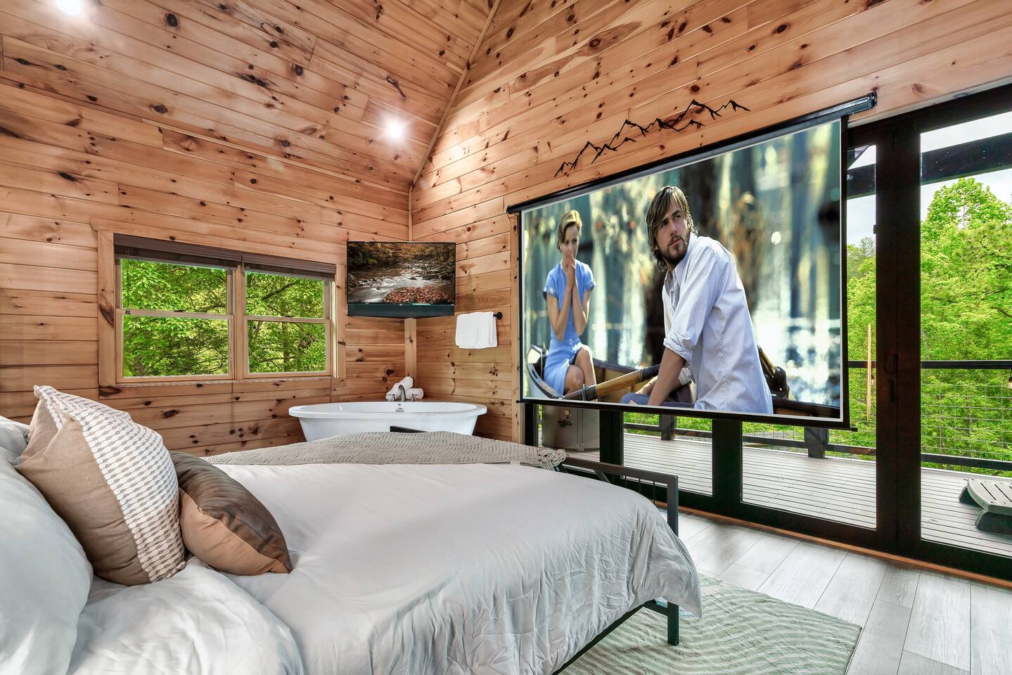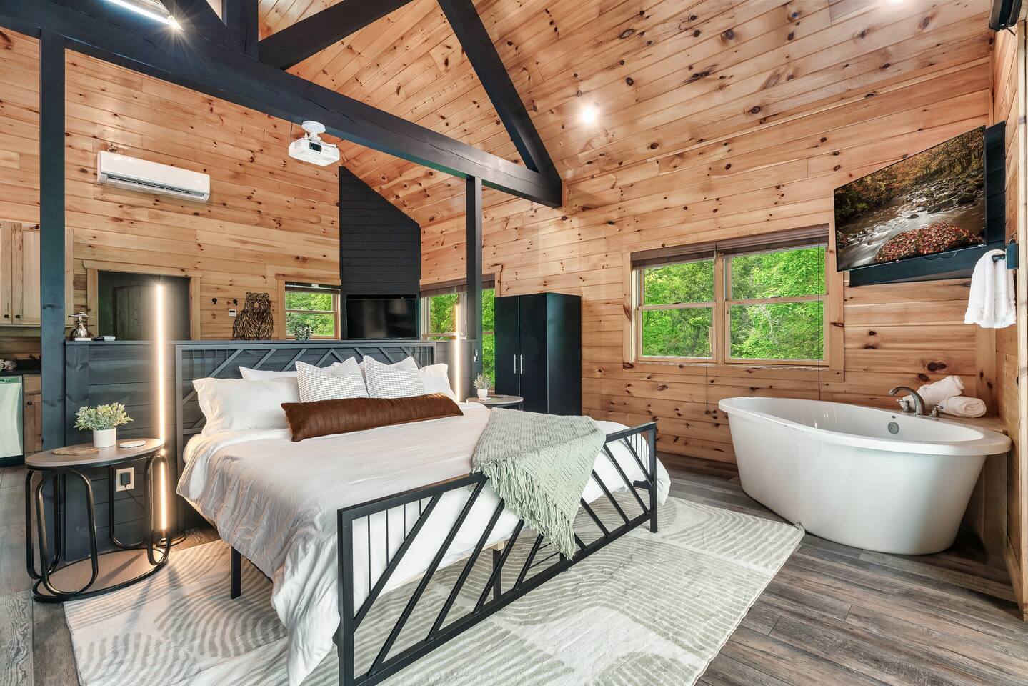 ❣️ The Sugar Tree Hideaway ❣️ is a brand-new ✨ romantic retreat ✨ made just for two—tucked into the woods, yet only minutes from the Pigeon Forge Strip. Inside, you’ll be wrapped in luxury. Sink into the lavish king bed, soak away your cares in the free-standing tub, or refresh in the spa-inspired walk-in shower. Share meals at the intimate live-edge dining table overlooking a wall of windows—or turn dinner into movie night with the automated 100" projector screen. Step outside to your private oasis. Toast by the glowing fire feature, or slip into the hot tub together as the forest surrounds you in peace and privacy. Every detail was designed with romance in mind—making The Sugar Tree Hideaway the perfect escape for couples ready to reconnect and unwind. The ✨Bedroom✨ features dual nightstands ready to power up your gadgets, a dresser with hangers to store your cloths for those longer stays, and a 55" TV! The ✨Bathroom✨ features a beautiful tile walk-in shower with plenty of space for 2🚿! It provides shampoo, conditioner, body wash, lotion and 2 plush waffle bathrobes for extra bliss.... The ✨Kitchen ✨ is stocked with high-quality cookware🧑🏻🍳. A spice rack, Keurig Duo, Oil, Salt & Pepper, Keurig Duo with a few pods to kickstart your day ☕️. ✨ Movie Magic at The Sugar Tree Hideaway ✨ With just the touch of a button, the wall of windows transforms into your own private cinema as a 100" projector screen glides down. Snuggle up on the king bed or share a meal at the dining bar while enjoying your favorite films on the big screen 🎬🍿. The ✨Exterior✨ Dive into the hot tub with a glass of wine🍷—because soaking and sipping is basically couple’s therapy. Cozy up by the fire 🔥 on the patio chairs, or sizzle some BBQ 🍔 ‼️ATTENTION‼️ Here is important information to enhance your stay. Prepare for a luxurious woodland adventure where you might encounter adorable critters 🐻🍃, and remember that you are surrounded by woods, so encountering harmless bugs 🪲 is inevitable. Using the hot tub is entirely at your own risk ⚠️. Smoking of any kind is strictly prohibited on the property 🚭. If our cleaners detect any signs of smoking, a $500 fee will be charged. Please adhere to our check-in and check-out timings ⏰. Unauthorized early check-ins or late check-outs are prohibited and will incur additional charges. If the guest fails to vacate the property on time, a fee of $50.00 will be charged for the first half-hour and $100.00 for each subsequent half-hour. Due to Mother Nature's unpredictability 🌪️, we do not provide refunds for weather-related issues, natural disasters, power outages, or events beyond our control. Although we love our furry friends 🐶🐱, we have a strict no-pets policy on the premises. If our cleaners discover any violation of this rule, you will be charged an additional cleaning fee of $500. An outdoor security camera 🎥 monitoring the driveway operates 24/7, recording movement and sound solely for safety reasons. Be reassured that there are NO indoor cameras or cameras pointing towards the front or back of the house, preserving your privacy.