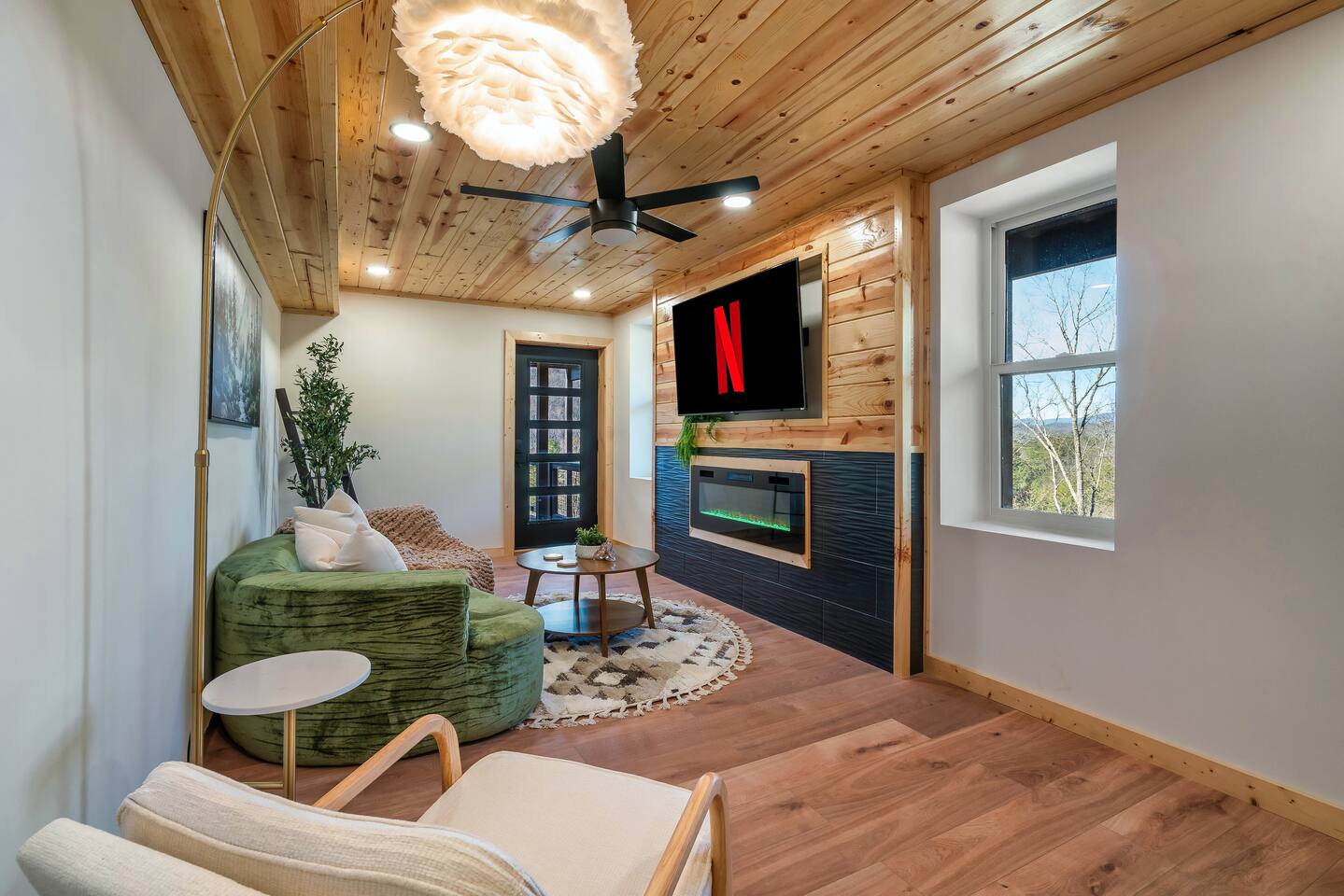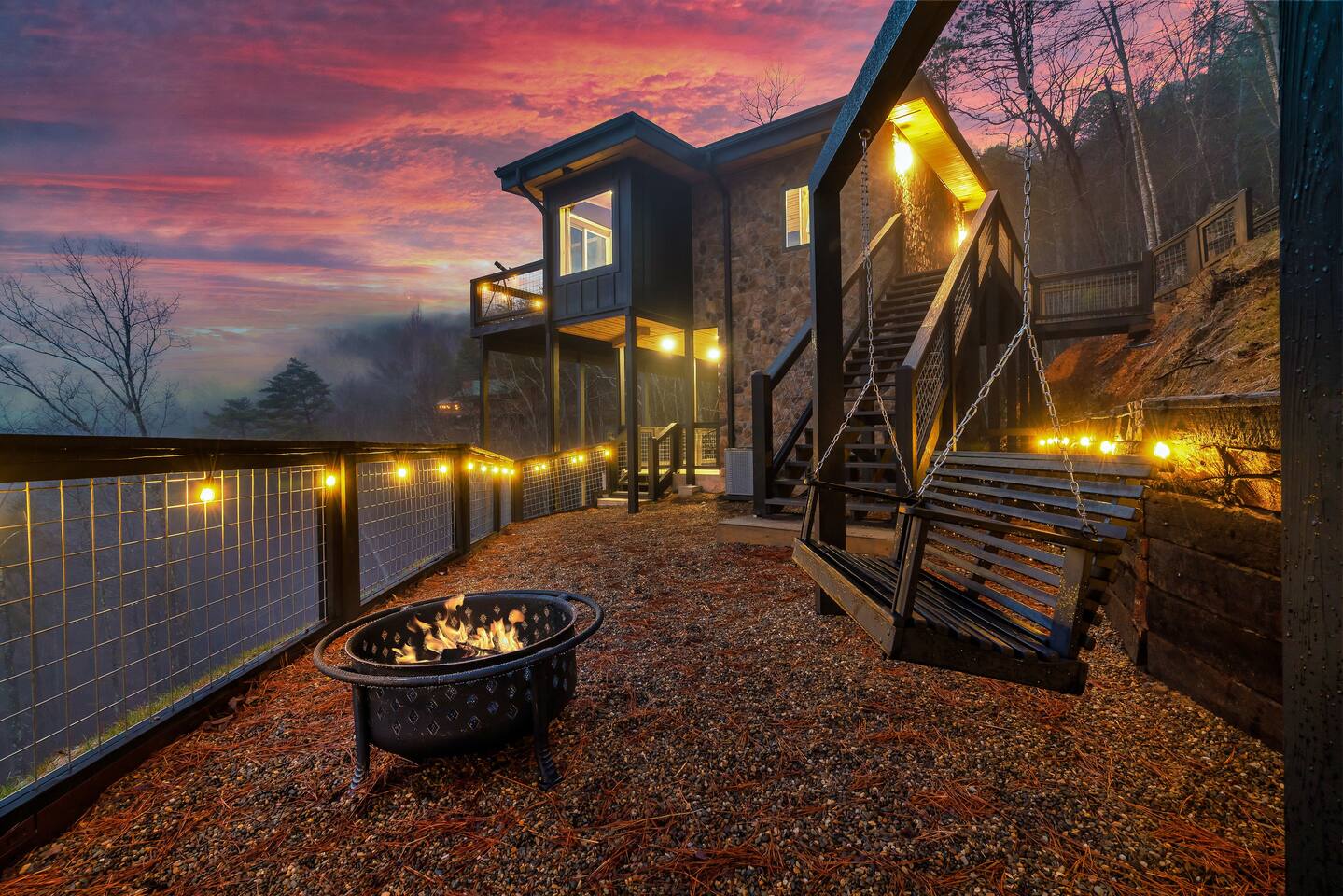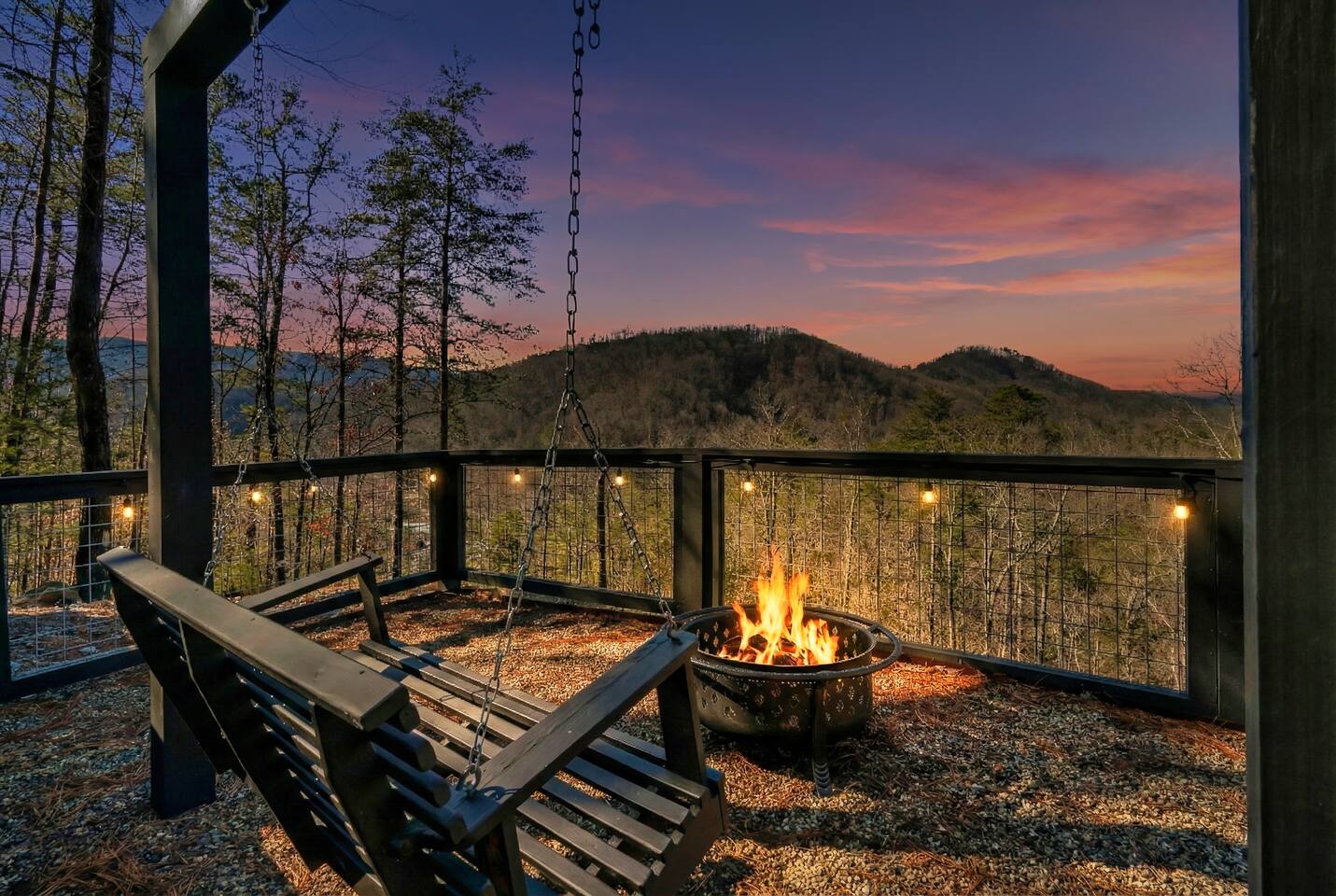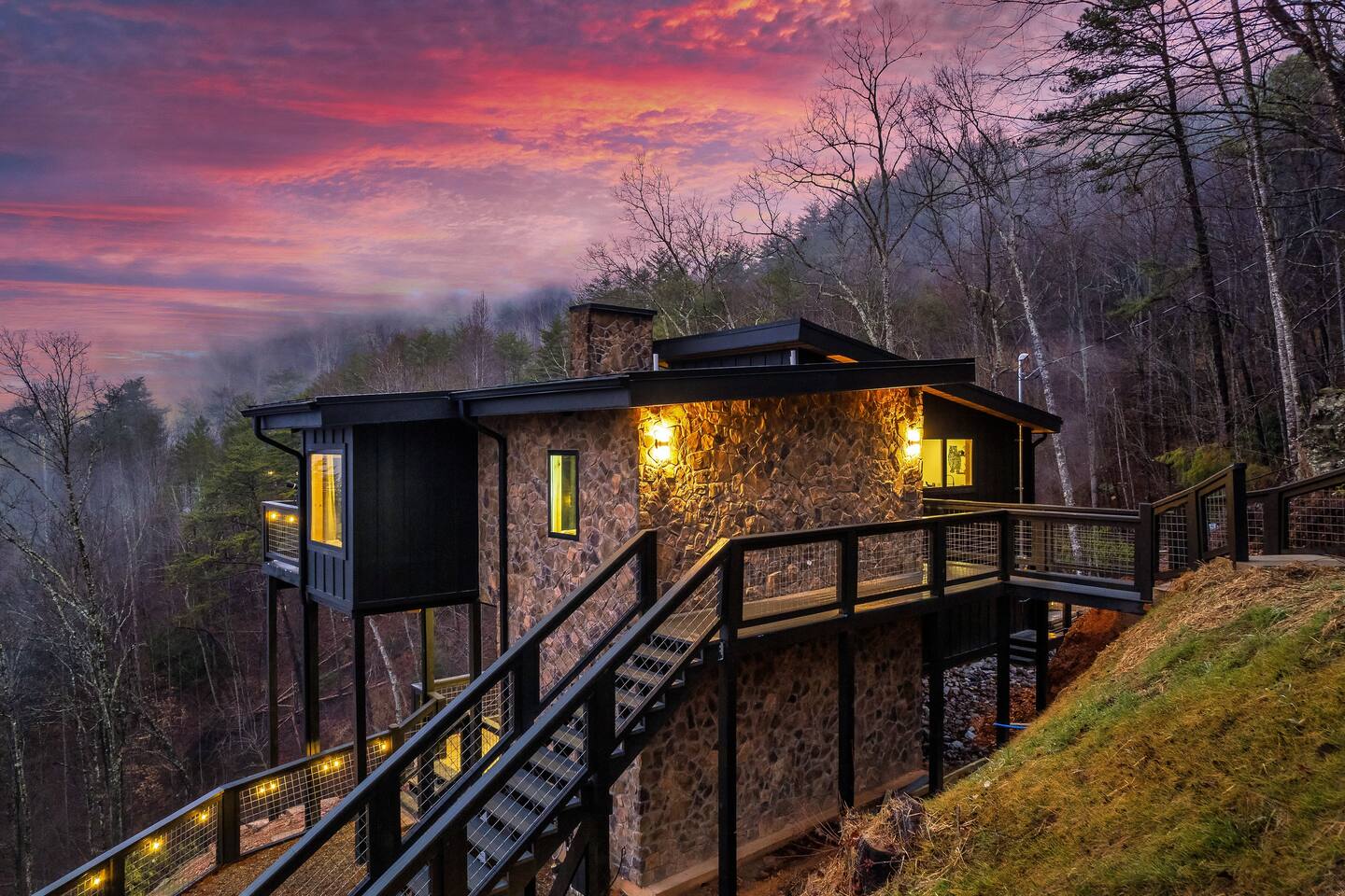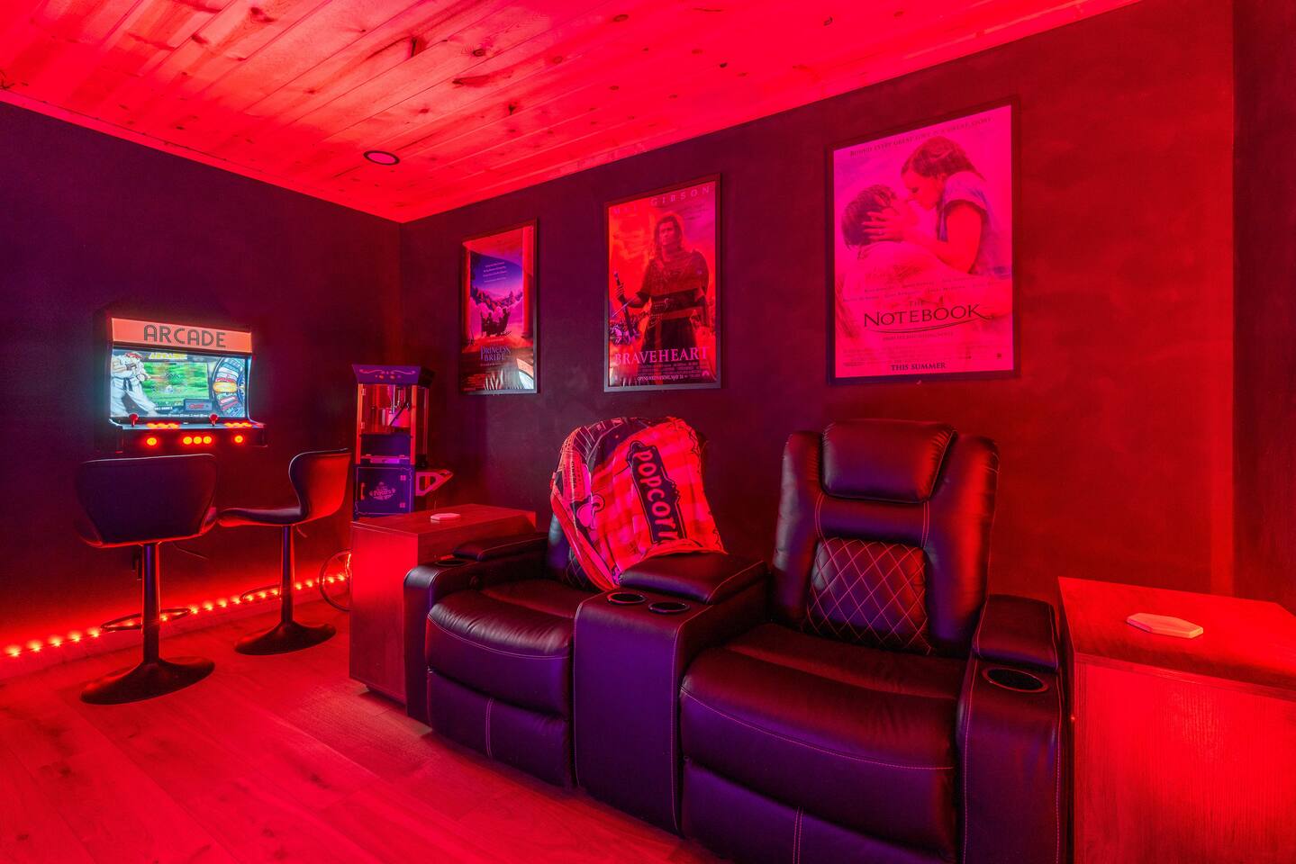❣️Eagles Nest❣️ is a NEW ✨luxury couple’s retreat✨ perched in the Smoky Mountains—designed for intimacy, romance, and unforgettable memories. With two levels of bliss, this cabin combines high-end finishes, breathtaking mountain views, and thoughtful touches to make your getaway truly special. ✨Main Level✨ Step into a chef-inspired kitchen with emerald green granite countertops, high-end appliances, and everything you need—from cooking utensils to baking sheets and storage containers—for crafting romantic meals together 🧑🏻🍳. The intimate dining area features a large bay window that opens fully on beautiful days, letting in fresh mountain air and the soothing sounds of nature. ✨Luxury Bedroom✨ is a lavish retreat designed for connection 💕. With a spa-like ensuite featuring a tile backdrop for the bed, dual vanities, and a closed-off toilet nook, this space radiates luxury. The centerpiece? A corner jacuzzi tub with full mountain views, perfect for soaking away your worries while reconnecting. The shower boasts entrances on both sides with dual shower heads for the ultimate couple’s experience 🚿. Additional touches include a full-length mirror, spacious closet, and a stackable washer/dryer for longer stays. Entertainment abounds with an automated 120" projector screen and smart projector streaming all your favorite shows🎬🍿 (Netflix included), while private deck access lets you enjoy the 30ft outdoor space complete with a telescope for stargazing, a propane fire feature with loveseat, dining area, and a grill for sunset BBQs 🌄🔥. ✨Lower Level✨ Descend the spiral staircase to the cozy living area featuring a floor-to-ceiling fireplace, comfy seating, and a reading nook perfectly positioned for Smoky Mountain views. Step outside to the hot tub with a built-in drink ledge, or relax on the covered patio with hanging chairs, a bench swing, and a wood-burning fire pit—ideal for starry night cuddles or roasting marshmallows ✨🌌. The lower level also houses your very own custom movie theatre 🎬 and arcade 🕹️, thoughtfully designed for couples. Enjoy luxury theater seats, an 85" Smart TV, electric fireplace, subwoofer, soundbar, and a popcorn machine with complimentary packs 🍿. The arcade lets you take a nostalgic stroll through 6,000+ games from classic consoles like Nintendo, GameCube, N64, PlayStation, and more 🎮. ✨Eagles Nest✨ isn’t just a cabin—it’s a mountain paradise for couples to unwind, reconnect, and create memories that last a lifetime 💕🏔️. Amenities Included: 🔥 Exterior Propane Burning Fireplace 🪵 Exterior Wood Burning Firepit 🔥 2x Interior Electric Fireplaces 🪑2x Hanging chairs 🛁 Outdoor Hot Tub 🛁 Indoor Jacuzzi Tub 🍔 BBQ 📺 2x Smart TV's 📺 120" projector screen with smart projector 🎬 Free access to Netflix 🕹️ Arcade for 2 with over 6,000 games 🍿Private movie theatre 🔊 Wi-Fi 🚿Dual Shower 🧴Shampoo, conditioner and body wash 👘 Bath Robes ☕️ Coffee Maker ♨️ Microwave 💆♀️ Hair dryer 🧺 Washer + dryer 🛏 Plenty of towels, blankets and pillows 🎲 Board Games + Puzzles ‼️ATTENTION‼️ Here is important information to enhance your stay. Prepare for a luxurious woodland adventure where you might encounter adorable critters 🐻🍃, and remember that you are surrounded by woods, so encountering harmless bugs 🪲 is inevitable. It is almost guaranteed you will see a bear, please lock your car doors and keep your distance. Using the hot tub is entirely at your own risk ⚠️. Smoking of any kind is strictly prohibited inside the property 🚭. If our cleaners detect any signs of smoking inside, a $500 fee will be charged. Please keep all smoking on the exterior away from entry ways. Please adhere to our check-in and check-out timings ⏰. Unauthorized early check-ins or late check-outs are prohibited and will incur additional charges. If the guest fails to vacate the property on time, a fee of $50.00 will be charged for the first half-hour and $100.00 for each subsequent half-hour. Due to Mother Nature's unpredictability 🌪️, we do not provide refunds for weather-related issues, natural disasters, power outages, or events beyond our control. We recommend getting travelers insurance. Although we love our furry friends 🐶🐱, we have a strict no-pets policy on the premises. If our cleaners discover any violation of this rule, you will be charged an additional cleaning fee of $500. An outdoor security camera 🎥 monitoring the driveway operates 24/7, recording movement and sound solely for safety reasons. Be reassured that there are NO indoor cameras or cameras pointing towards the front or back of the house, preserving your privacy.