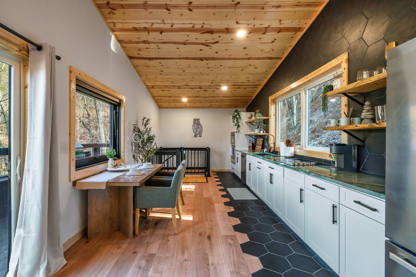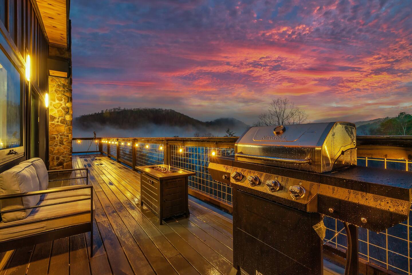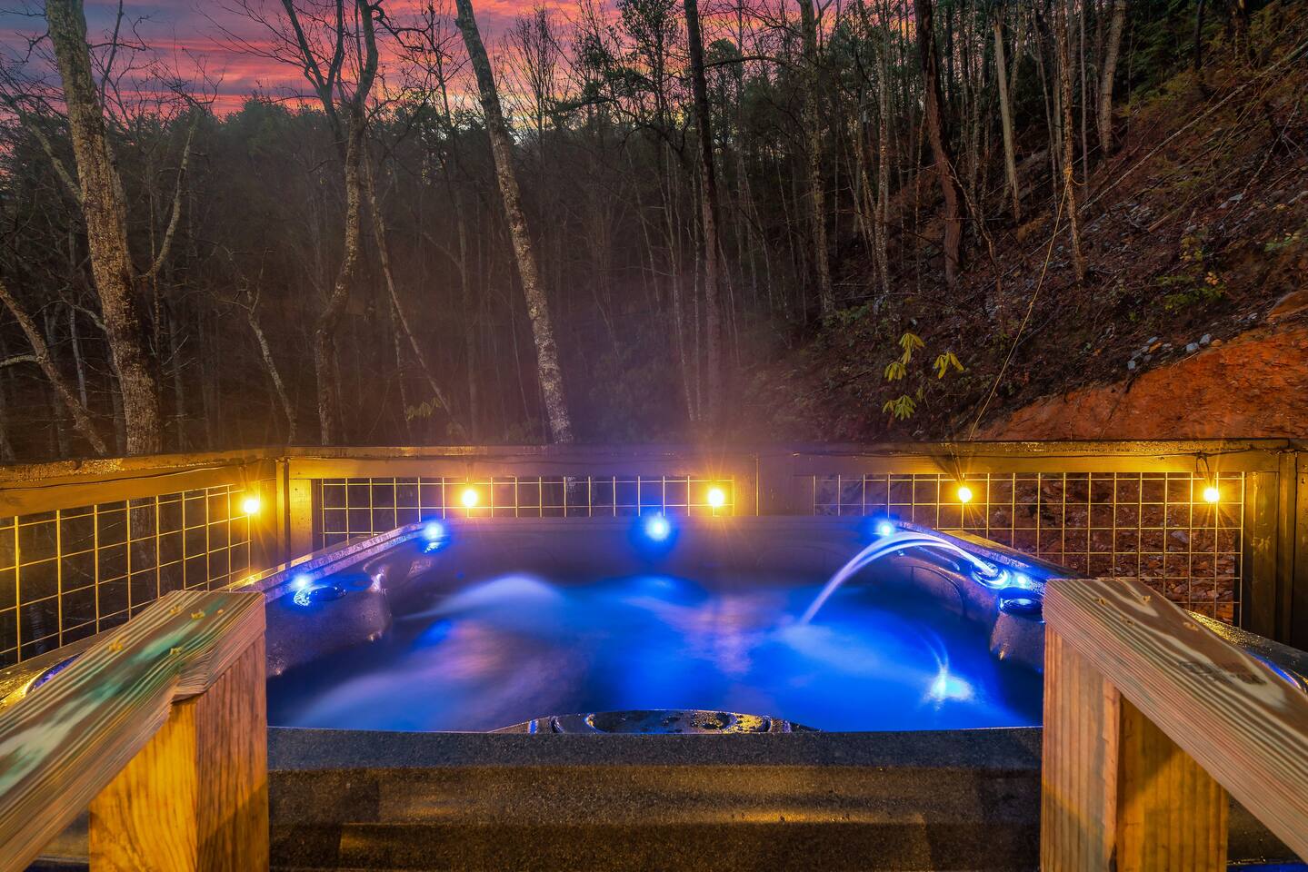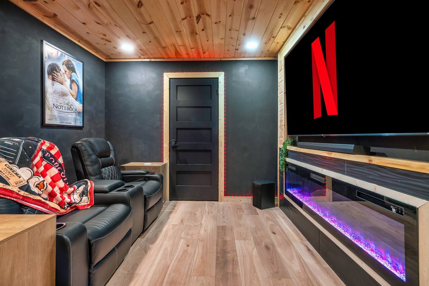 ❣️Eagles Nest❣️ is a NEW ✨luxury couple’s retreat✨ perched in the Smoky Mountains—designed for intimacy, romance, and unforgettable memories. With two levels of bliss, this cabin combines high-end finishes, breathtaking mountain views, and thoughtful touches to make your getaway truly special. ✨Main Level✨ Step into a chef-inspired kitchen with emerald green granite countertops, high-end appliances, and everything you need—from cooking utensils to baking sheets and storage containers—for crafting romantic meals together 🧑🏻🍳. The intimate dining area features a large bay window that opens fully on beautiful days, letting in fresh mountain air and the soothing sounds of nature. ✨Luxury Bedroom✨ is a lavish retreat designed for connection 💕. With a spa-like ensuite featuring a tile backdrop for the bed, dual vanities, and a closed-off toilet nook, this space radiates luxury. The centerpiece? A corner jacuzzi tub with full mountain views, perfect for soaking away your worries while reconnecting. The shower boasts entrances on both sides with dual shower heads for the ultimate couple’s experience 🚿. Additional touches include a full-length mirror, spacious closet, and a stackable washer/dryer for longer stays. Entertainment abounds with an automated 120" projector screen and smart projector streaming all your favorite shows🎬🍿 (Netflix included), while private deck access lets you enjoy the 30ft outdoor space complete with a telescope for stargazing, a propane fire feature with loveseat, dining area, and a grill for sunset BBQs 🌄🔥. ✨Lower Level✨ Descend the spiral staircase to the cozy living area featuring a floor-to-ceiling fireplace, comfy seating, and a reading nook perfectly positioned for Smoky Mountain views. Step outside to the hot tub with a built-in drink ledge, or relax on the covered patio with hanging chairs, a bench swing, and a wood-burning fire pit—ideal for starry night cuddles or roasting marshmallows ✨🌌. The lower level also houses your very own custom movie theatre 🎬 and arcade 🕹️, thoughtfully designed for couples. Enjoy luxury theater seats, an 85" Smart TV, electric fireplace, subwoofer, soundbar, and a popcorn machine with complimentary packs 🍿. The arcade lets you take a nostalgic stroll through 6,000+ games from classic consoles like Nintendo, GameCube, N64, PlayStation, and more 🎮. ✨Eagles Nest✨ isn’t just a cabin—it’s a mountain paradise for couples to unwind, reconnect, and create memories that last a lifetime 💕🏔️. Amenities Included: 🔥 Exterior Propane Burning Fireplace 🪵 Exterior Wood Burning Firepit 🔥 2x Interior Electric Fireplaces 🪑2x Hanging chairs 🛁 Outdoor Hot Tub 🛁 Indoor Jacuzzi Tub 🍔 BBQ 📺 2x Smart TV's 📺 120" projector screen with smart projector 🎬 Free access to Netflix 🕹️ Arcade for 2 with over 6,000 games 🍿Private movie theatre 🔊 Wi-Fi 🚿Dual Shower 🧴Shampoo, conditioner and body wash 👘 Bath Robes ☕️ Coffee Maker ♨️ Microwave 💆♀️ Hair dryer 🧺 Washer + dryer 🛏 Plenty of towels, blankets and pillows 🎲 Board Games + Puzzles ‼️ATTENTION‼️ Here is important information to enhance your stay. Prepare for a luxurious woodland adventure where you might encounter adorable critters 🐻🍃, and remember that you are surrounded by woods, so encountering harmless bugs 🪲 is inevitable. It is almost guaranteed you will see a bear, please lock your car doors and keep your distance. Using the hot tub is entirely at your own risk ⚠️. Smoking of any kind is strictly prohibited inside the property 🚭. If our cleaners detect any signs of smoking inside, a $500 fee will be charged. Please keep all smoking on the exterior away from entry ways. Please adhere to our check-in and check-out timings ⏰. Unauthorized early check-ins or late check-outs are prohibited and will incur additional charges. If the guest fails to vacate the property on time, a fee of $50.00 will be charged for the first half-hour and $100.00 for each subsequent half-hour. Due to Mother Nature's unpredictability 🌪️, we do not provide refunds for weather-related issues, natural disasters, power outages, or events beyond our control. We recommend getting travelers insurance. Although we love our furry friends 🐶🐱, we have a strict no-pets policy on the premises. If our cleaners discover any violation of this rule, you will be charged an additional cleaning fee of $500. An outdoor security camera 🎥 monitoring the driveway operates 24/7, recording movement and sound solely for safety reasons. Be reassured that there are NO indoor cameras or cameras pointing towards the front or back of the house, preserving your privacy.