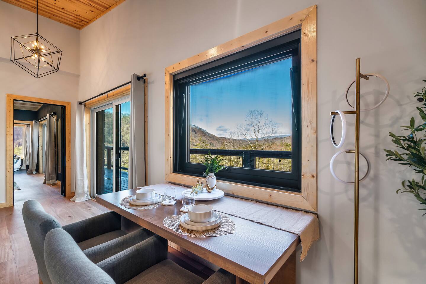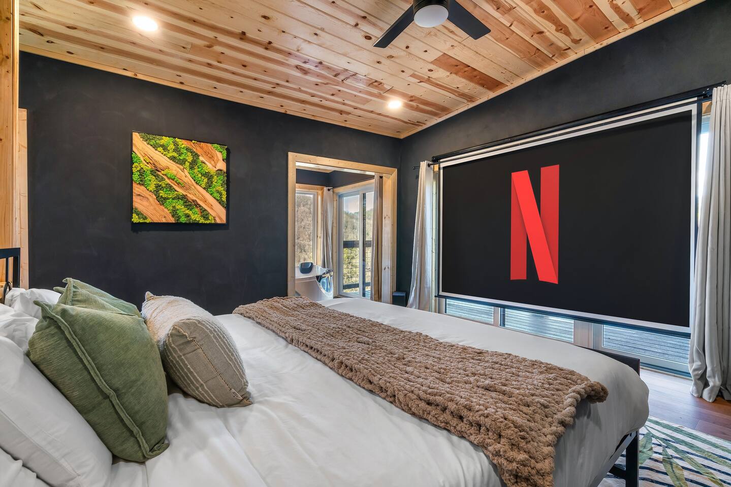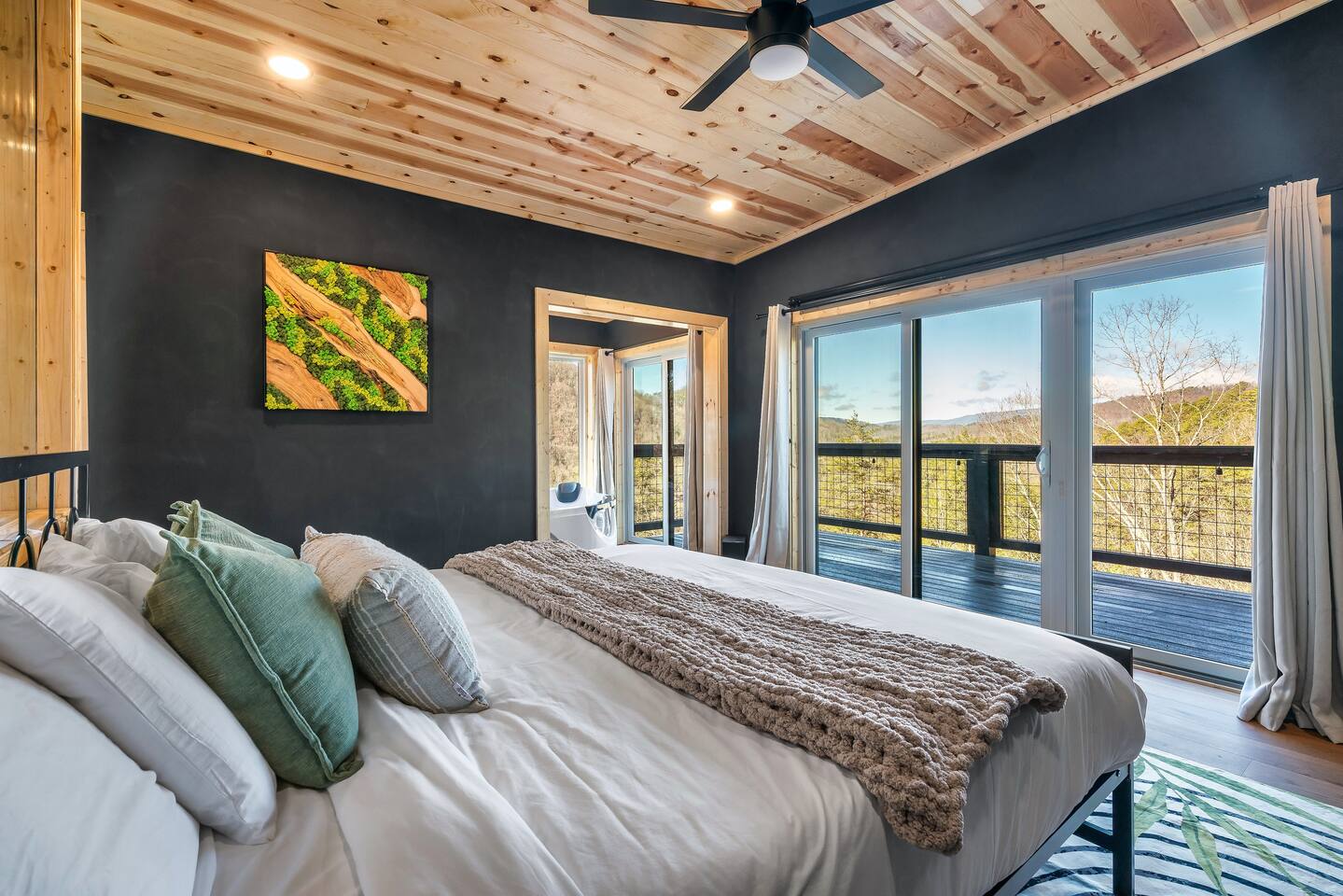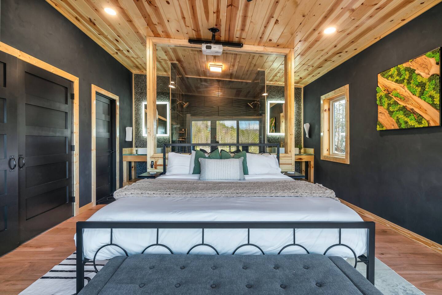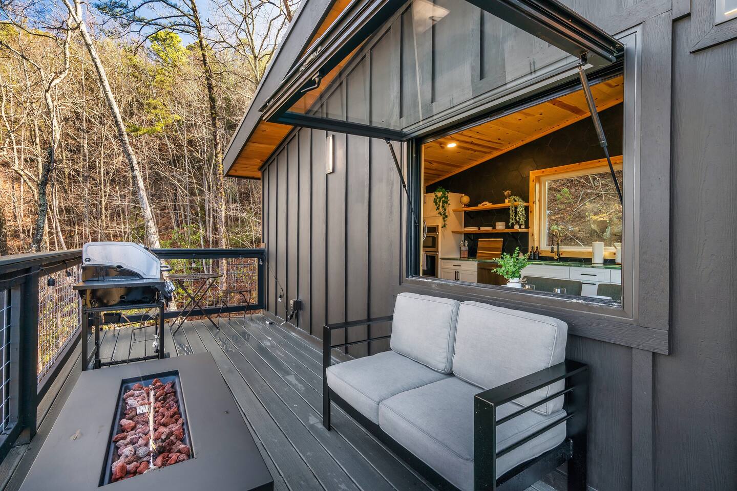 ❣️Eagles Nest❣️ is a NEW ✨luxury couple’s retreat✨ perched in the Smoky Mountains—designed for intimacy, romance, and unforgettable memories. With two levels of bliss, this cabin combines high-end finishes, breathtaking mountain views, and thoughtful touches to make your getaway truly special. ✨Main Level✨ Step into a chef-inspired kitchen with emerald green granite countertops, high-end appliances, and everything you need—from cooking utensils to baking sheets and storage containers—for crafting romantic meals together 🧑🏻🍳. The intimate dining area features a large bay window that opens fully on beautiful days, letting in fresh mountain air and the soothing sounds of nature. ✨Luxury Bedroom✨ is a lavish retreat designed for connection 💕. With a spa-like ensuite featuring a tile backdrop for the bed, dual vanities, and a closed-off toilet nook, this space radiates luxury. The centerpiece? A corner jacuzzi tub with full mountain views, perfect for soaking away your worries while reconnecting. The shower boasts entrances on both sides with dual shower heads for the ultimate couple’s experience 🚿. Additional touches include a full-length mirror, spacious closet, and a stackable washer/dryer for longer stays. Entertainment abounds with an automated 120" projector screen and smart projector streaming all your favorite shows🎬🍿 (Netflix included), while private deck access lets you enjoy the 30ft outdoor space complete with a telescope for stargazing, a propane fire feature with loveseat, dining area, and a grill for sunset BBQs 🌄🔥. ✨Lower Level✨ Descend the spiral staircase to the cozy living area featuring a floor-to-ceiling fireplace, comfy seating, and a reading nook perfectly positioned for Smoky Mountain views. Step outside to the hot tub with a built-in drink ledge, or relax on the covered patio with hanging chairs, a bench swing, and a wood-burning fire pit—ideal for starry night cuddles or roasting marshmallows ✨🌌. The lower level also houses your very own custom movie theatre 🎬 and arcade 🕹️, thoughtfully designed for couples. Enjoy luxury theater seats, an 85" Smart TV, electric fireplace, subwoofer, soundbar, and a popcorn machine with complimentary packs 🍿. The arcade lets you take a nostalgic stroll through 6,000+ games from classic consoles like Nintendo, GameCube, N64, PlayStation, and more 🎮. ✨Eagles Nest✨ isn’t just a cabin—it’s a mountain paradise for couples to unwind, reconnect, and create memories that last a lifetime 💕🏔️. Amenities Included: 🔥 Exterior Propane Burning Fireplace 🪵 Exterior Wood Burning Firepit 🔥 2x Interior Electric Fireplaces 🪑2x Hanging chairs 🛁 Outdoor Hot Tub 🛁 Indoor Jacuzzi Tub 🍔 BBQ 📺 2x Smart TV's 📺 120" projector screen with smart projector 🎬 Free access to Netflix 🕹️ Arcade for 2 with over 6,000 games 🍿Private movie theatre 🔊 Wi-Fi 🚿Dual Shower 🧴Shampoo, conditioner and body wash 👘 Bath Robes ☕️ Coffee Maker ♨️ Microwave 💆♀️ Hair dryer 🧺 Washer + dryer 🛏 Plenty of towels, blankets and pillows 🎲 Board Games + Puzzles ‼️ATTENTION‼️ Here is important information to enhance your stay. Prepare for a luxurious woodland adventure where you might encounter adorable critters 🐻🍃, and remember that you are surrounded by woods, so encountering harmless bugs 🪲 is inevitable. It is almost guaranteed you will see a bear, please lock your car doors and keep your distance. Using the hot tub is entirely at your own risk ⚠️. Smoking of any kind is strictly prohibited inside the property 🚭. If our cleaners detect any signs of smoking inside, a $500 fee will be charged. Please keep all smoking on the exterior away from entry ways. Please adhere to our check-in and check-out timings ⏰. Unauthorized early check-ins or late check-outs are prohibited and will incur additional charges. If the guest fails to vacate the property on time, a fee of $50.00 will be charged for the first half-hour and $100.00 for each subsequent half-hour. Due to Mother Nature's unpredictability 🌪️, we do not provide refunds for weather-related issues, natural disasters, power outages, or events beyond our control. We recommend getting travelers insurance. Although we love our furry friends 🐶🐱, we have a strict no-pets policy on the premises. If our cleaners discover any violation of this rule, you will be charged an additional cleaning fee of $500. An outdoor security camera 🎥 monitoring the driveway operates 24/7, recording movement and sound solely for safety reasons. Be reassured that there are NO indoor cameras or cameras pointing towards the front or back of the house, preserving your privacy.