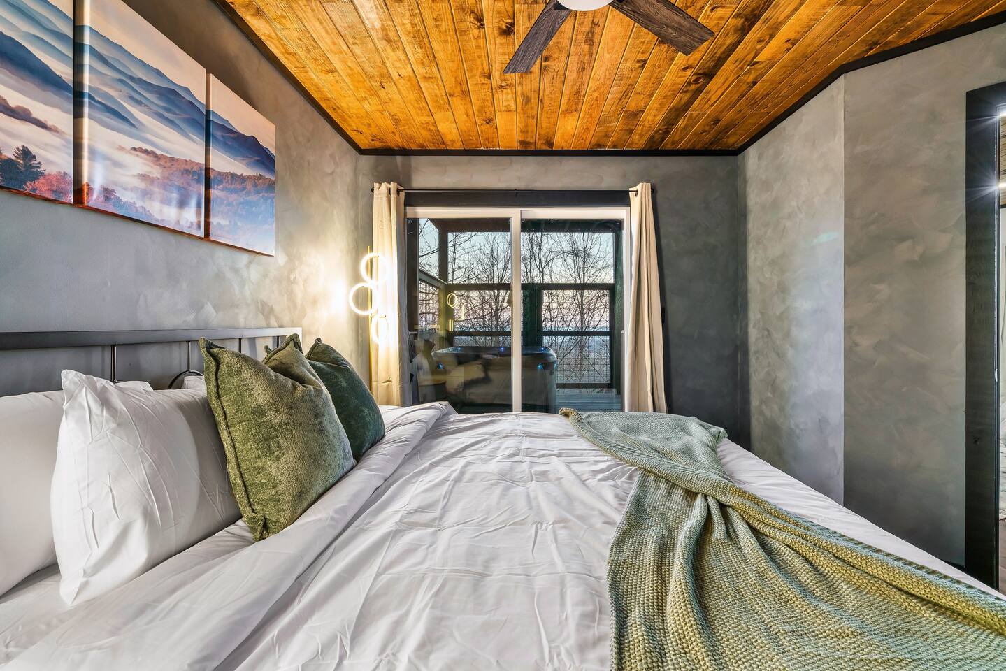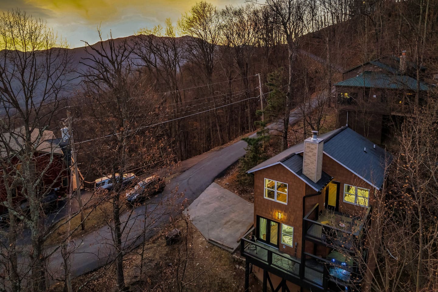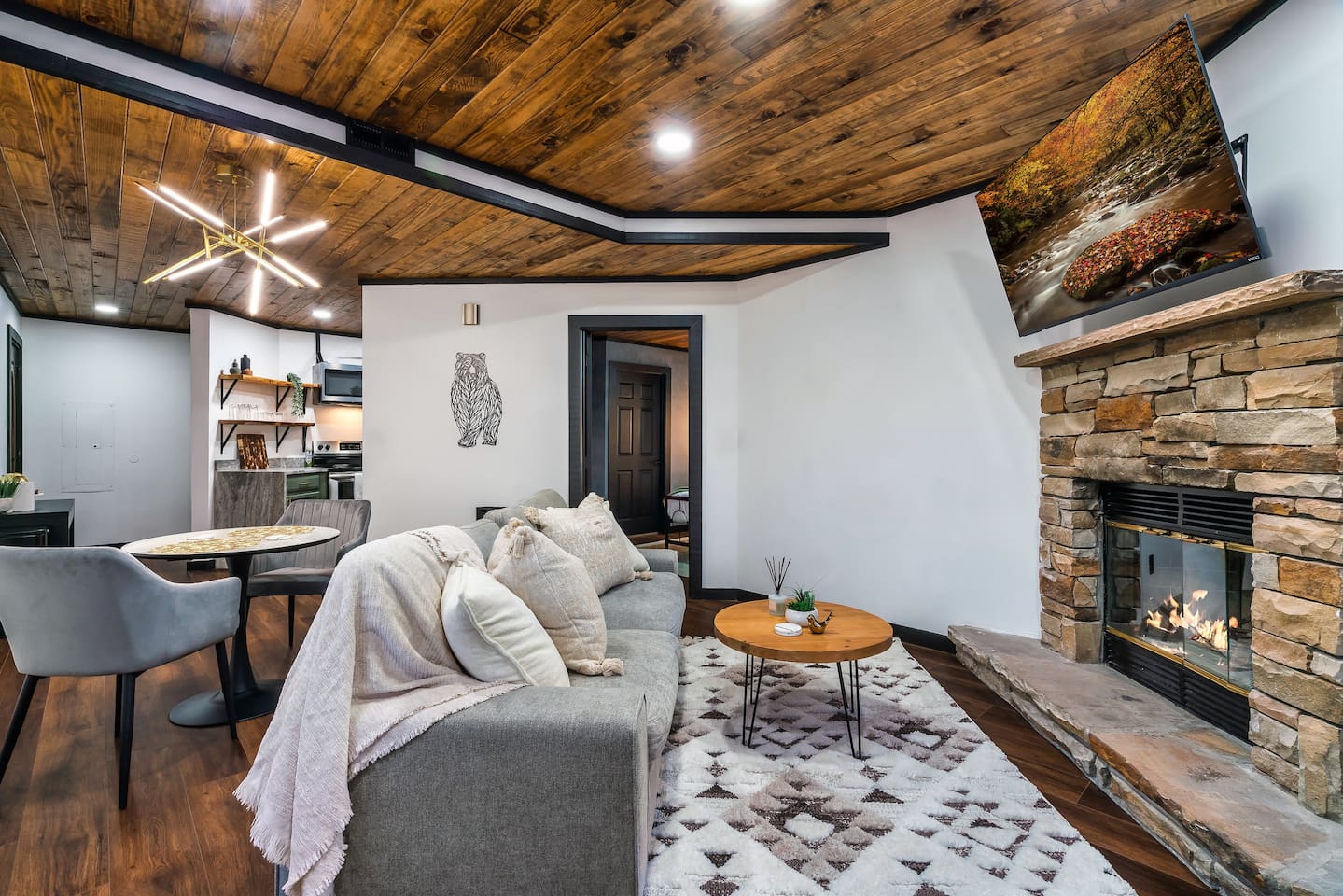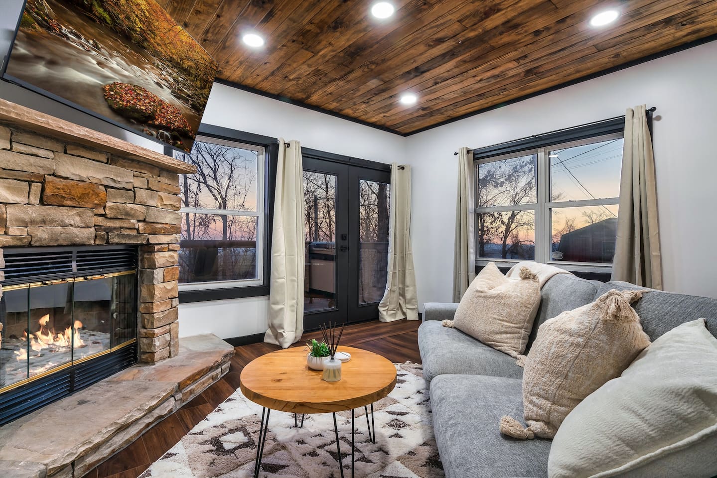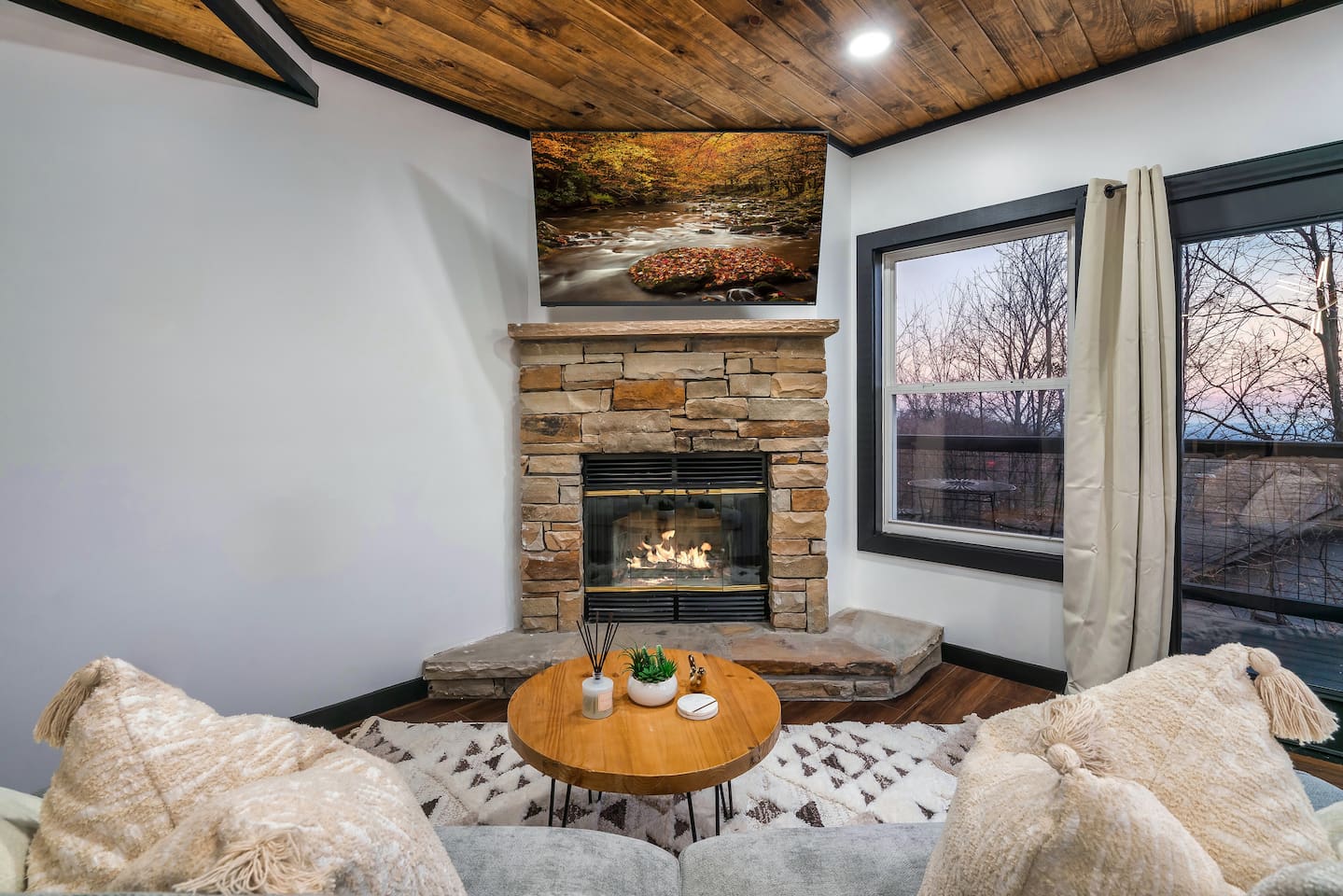 ❣️Serenity Escape❣️ is a NEW ✨ one-of-a-kind ✨ romantic one-bedroom, two-bath cabin tucked away in the woods—yet just minutes from Ober Ski Resort and Downtown Gatlinburg. Inside, you’ll find a lavish king-size bed, a well-equipped kitchen, an intimate dining area, and a cozy living space featuring a roomy couch with snuggle-worthy throws and a wood-burning fireplace. The spa-inspired bathroom completes the main level with a stunning tile walk-in shower. But that’s just the beginning. Venture upstairs to discover a wet bar with a mini fridge, a private movie theater, sauna, soaking jacuzzi tub, ping-pong and air hockey—plus the best vantage point for those sought-after Smoky Mountain views. Every space at Serenity Escape is thoughtfully designed for relaxation, romance, and making unforgettable memories together. 💕✨ ✨Bedroom✨ is an intimate retreat designed for connection, featuring matching nightstands, a dramatic floor-to-ceiling fireplace, and a 65" Smart TV for cozy Netflix movie nights 🎬🍿. Enjoy private ensuite access to the master bathroom and step directly outside to the hot tub—perfect for unwinding together under the stars and creating unforgettable memories. ✨💫 ✨Bathroom✨ features a beautiful tile walk-in shower with two shower heads so you love birds don't have to fight over the water🚿! It provides shampoo, conditioner, body wash, lotion and 2 plush waffle bathrobes for extra bliss.... From quiet coffee mornings to intimate dinners, the ✨Kitchen✨ is beautifully equipped with stainless-steel appliances and high-quality cookware 🧑🏻🍳. A Keurig with complimentary pods awaits, setting the tone for slow, love-filled moments ☕️. ✨Private Movie Theatre✨ Slip into your own intimate cinema, where an ambient electric fireplace sets the mood beneath a stunning 75" Smart TV—perfect for late-night Netflix binges and movie marathons together. A premium surround sound system draws you into every scene, while a complimentary bag of popcorn served in chic buckets completes the experience. Snuggle in, press play, and let the romance roll 🎬🍿✨ ✨Upstairs✨ blends fun and romance with a sleek wet bar, a rejuvenating sauna, air hockey and ping-pong for lighthearted moments, and an oversized jacuzzi tub made for unwinding side-by-side 🥂🔥 ✨Exterior✨ Unwind together in the hot tub with a glass of wine 🍷, letting the warmth and mountain views melt away the world. Share quiet moments by the fire 🔥 under the stars, or savor a sunset BBQ 🍔 while wrapped in each other’s company. Every detail of this outdoor space is designed for connection, serenity, and cherished memories. ‼️ATTENTION‼️ Here is important information to enhance your stay. Prepare for a luxurious woodland adventure where you might encounter adorable critters 🐻🍃, and remember that you are surrounded by woods, so encountering harmless bugs 🪲 is inevitable. It is almost guaranteed you will see a bear, please lock your car doors and keep your distance. Using the hot tub is entirely at your own risk ⚠️. Smoking of any kind is strictly prohibited inside the property 🚭. If our cleaners detect any signs of smoking inside, a $500 fee will be charged. Please keep all smoking on the exterior away from entry ways. Please adhere to our check-in and check-out timings ⏰. Unauthorized early check-ins or late check-outs are prohibited and will incur additional charges. If the guest fails to vacate the property on time, a fee of $50.00 will be charged for the first half-hour and $100.00 for each subsequent half-hour. Due to Mother Nature's unpredictability 🌪️, we do not provide refunds for weather-related issues, natural disasters, power outages, or events beyond our control. Although we love our furry friends 🐶🐱, we have a strict no-pets policy on the premises. If our cleaners discover any violation of this rule, you will be charged an additional cleaning fee of $500. An outdoor security camera 🎥 monitoring the driveway operates 24/7, recording movement and sound solely for safety reasons. Be reassured that there are NO indoor cameras or cameras pointing towards the front or back of the house, preserving your privacy.
