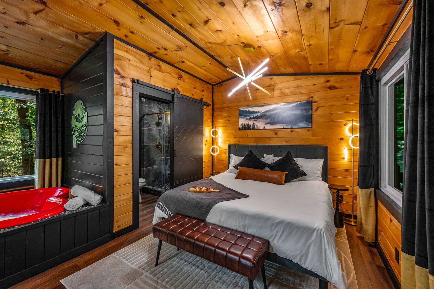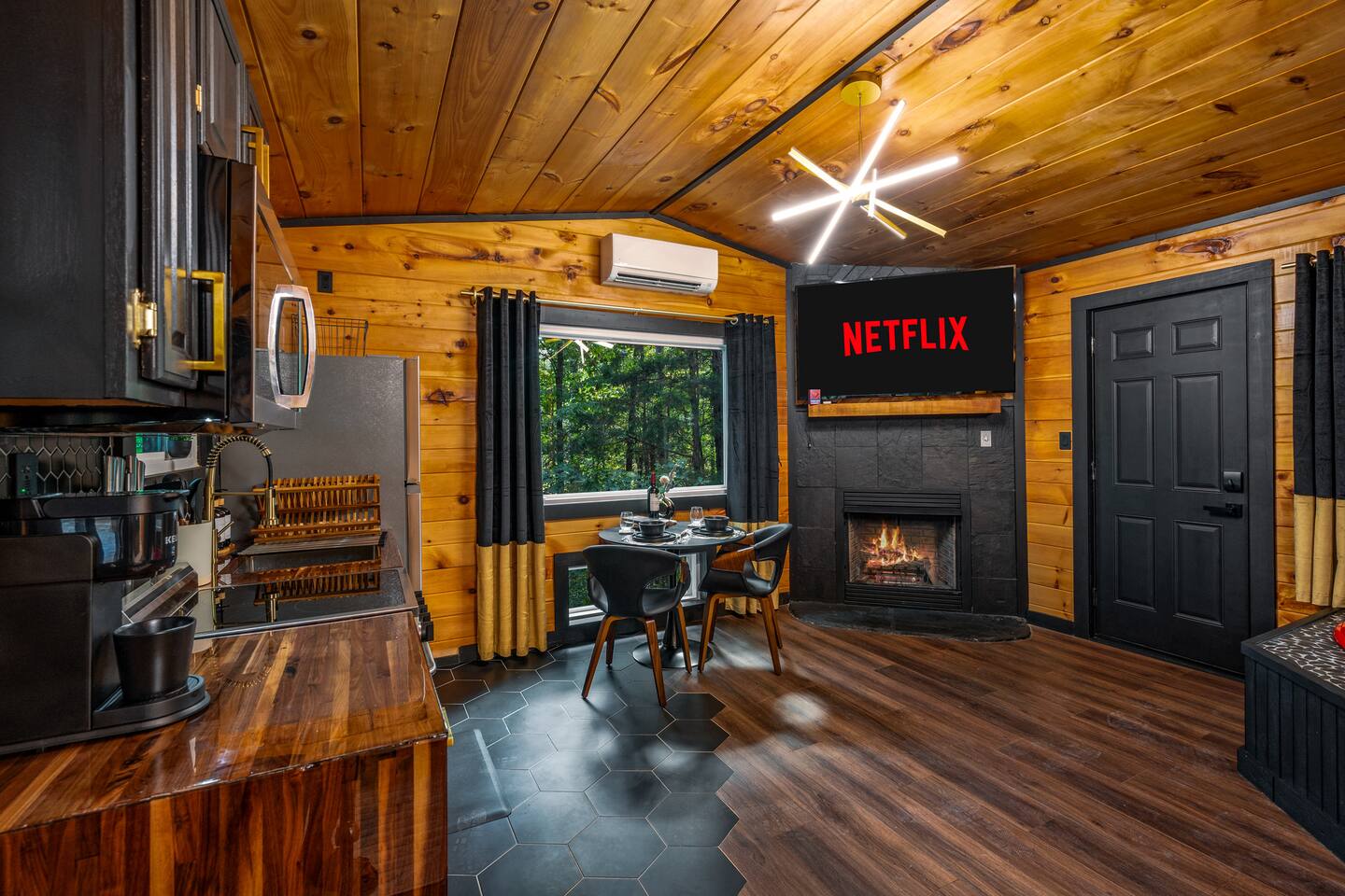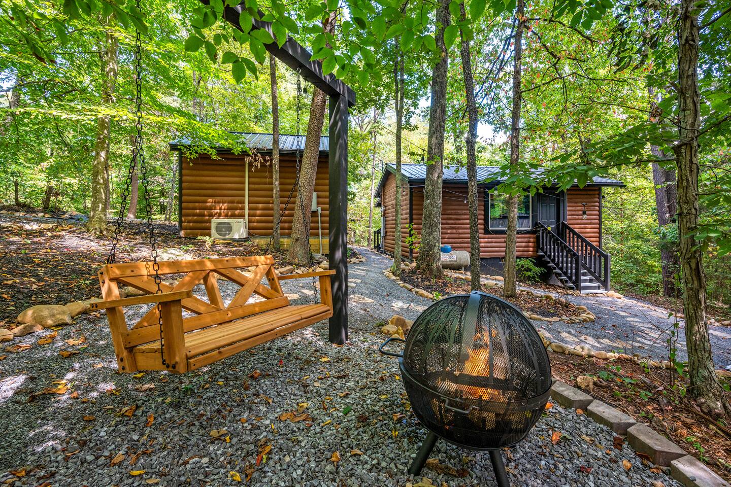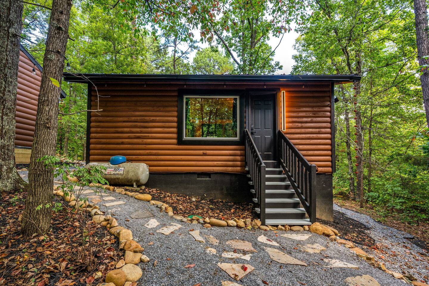 Welcome to Honey Mountain Resort, the perfect getaway for couples! Our five newly renovated luxury honeymoon cabins are thoughtfully designed to create an intimate and romantic atmosphere, ensuring you and your special someone can truly connect. Each cabin features its own private movie theater, hot tub pergola, fire pit, and convenient parking, allowing you to enjoy cozy evenings together under the stars. If your dream cabin is already booked, don’t worry—just click on my profile picture to explore our other enchanting options. We can’t wait to help you create unforgettable memories here at Honey Mountain Resort. Feel free to reach out with any questions; we’re here to assist you! The Forbidden Honey is a fully furnished 1 bed, 1 bath studio log cabin with a spacious yard that provides plenty of activities, such as: private theater room, personal hot tub pergola and fire pit. (All these amenities are for your exclusive use, NOT a shared space.) MAIN LIVING AREA: consists of a kitchen, dining table, 65” smart TV, propane fireplace, king bed, and a heart shaped jetted tub. KITCHEN: equipped with the essentials to cook a yummy meal, including a Keurig individual cup coffee maker with complimentary coffee pods. BATHROOM: fitted out with a large walk-in tile shower with dual shower head and complimentary shampoo, conditioner and body wash. You will also find cozy waffle bath robes for your comfort. FRONT DECK: you will find a gas fire table with comfy seating and a bbq. PRIVATE THEATER ROOM: can be found just steps from the front deck. The theater room consists of an 85” smart tv with a sound system, large chaise lounger, barstool eating table, electric fireplace, and popcorn machine. FIRE PIT: as you exit the cabin on the back side, you will find a lighted pathway that leads to a 2 seater bench swing with a fire pit, perfect for roasting some s’mores or just enjoying the nature! PERSONAL HOT TUB PERGOLA: as you continue down the lighted pathway, you will find a large pergola fitted out with a 65” tv, electric fireplace and private hot tub. Amenities Included: 🔥 Indoor Propane Fireplace 🪵 Wood Burning Fire Pit 🛁 Exclusive Outdoor Hot Tub 🫶🏼 Indoor Love Tub 🍔 BBQ 🔥Outdoor Propane Fire Table 📺 Smart TV 🎬 Free access to Netflix 🔊 WiFi 📽️ Private Theater Room 🚿Walk-in tile shower 🧴Shampoo, conditioner and body wash 👘 Bath Robes ☕️ Coffee Maker ♨️Microwave 💆♀️ Hair dryer 🛏 Plenty of towels, blankets and pillows