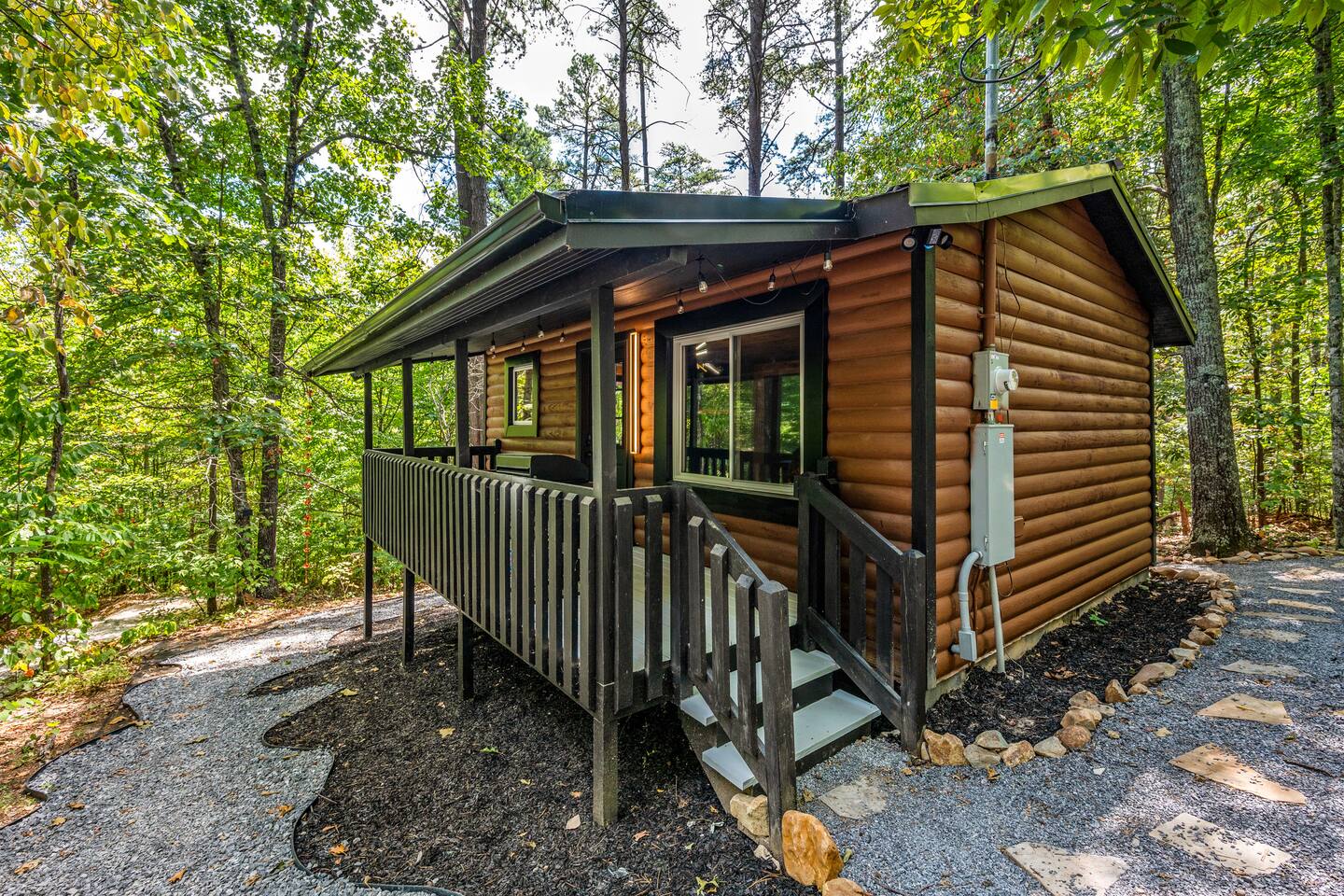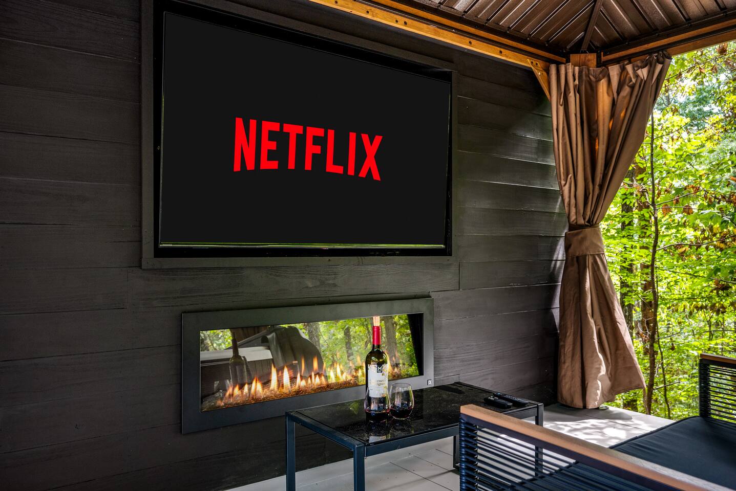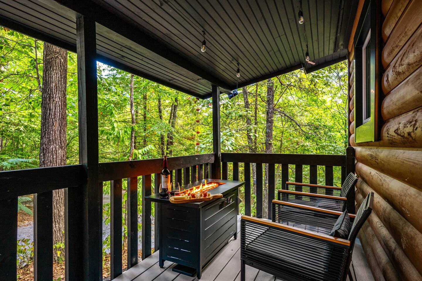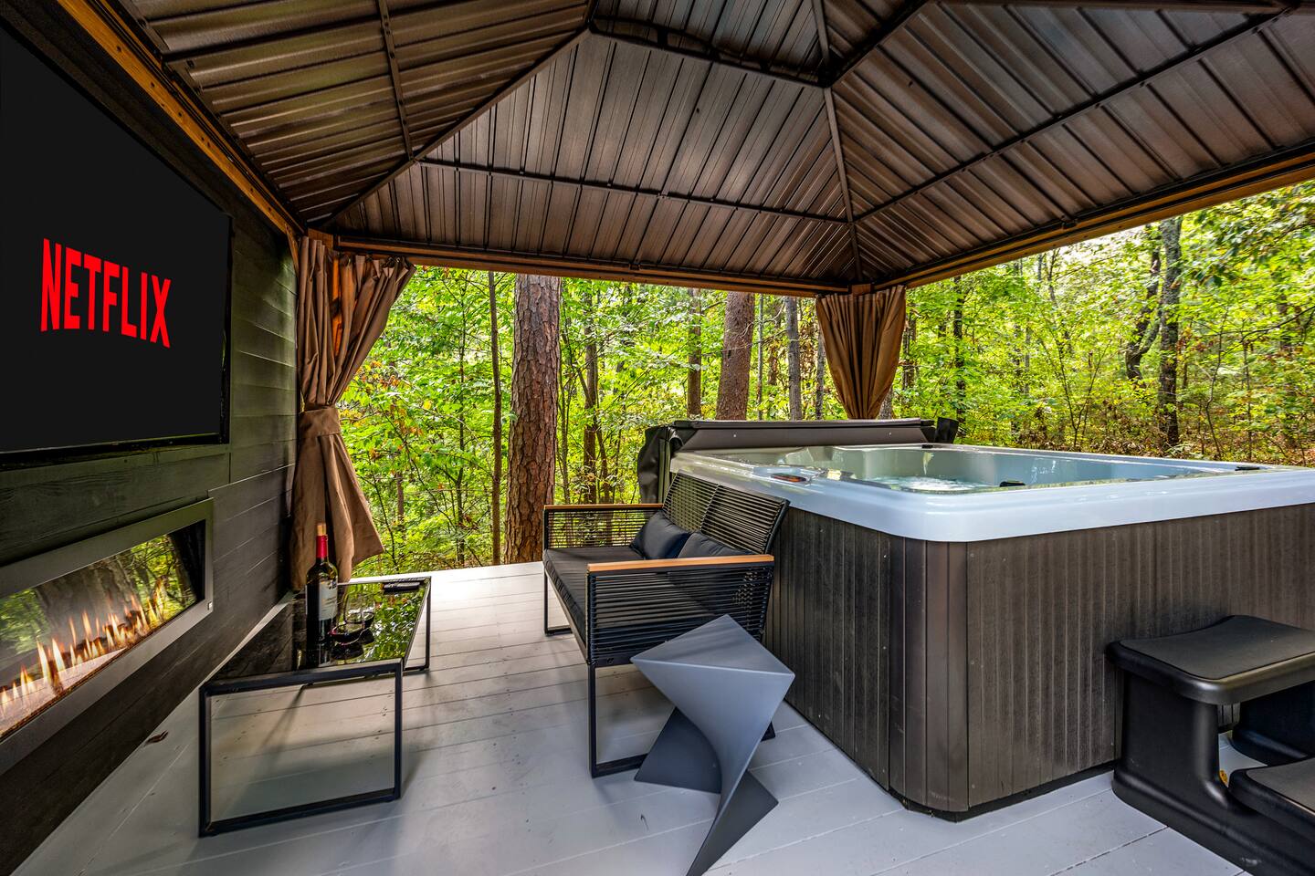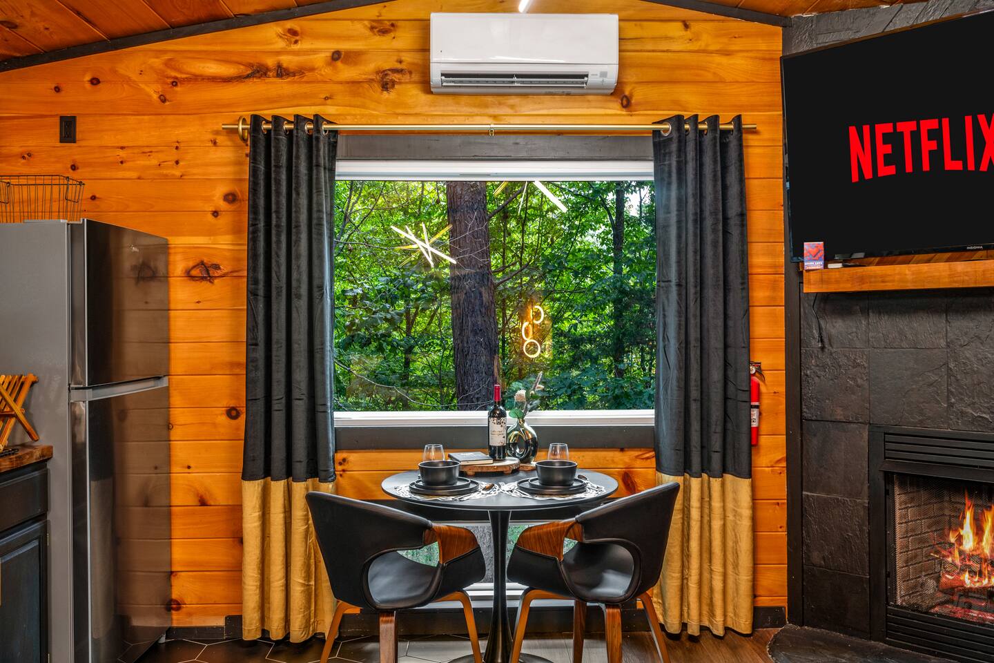 Welcome to Honey Mountain Resort, the perfect getaway for couples! Our five newly renovated luxury honeymoon cabins are thoughtfully designed to create an intimate and romantic atmosphere, ensuring you and your special someone can truly connect. Each cabin features its own private movie theater, hot tub pergola, fire pit, and convenient parking, allowing you to enjoy cozy evenings together under the stars. If your dream cabin is already booked, don’t worry—just click on my profile picture to explore our other enchanting options. We can’t wait to help you create unforgettable memories here at Honey Mountain Resort. Feel free to reach out with any questions; we’re here to assist you! The Forbidden Honey is a fully furnished 1 bed, 1 bath studio log cabin with a spacious yard that provides plenty of activities, such as: private theater room, personal hot tub pergola and fire pit. (All these amenities are for your exclusive use, NOT a shared space.) MAIN LIVING AREA: consists of a kitchen, dining table, 65” smart TV, propane fireplace, king bed, and a heart shaped jetted tub. KITCHEN: equipped with the essentials to cook a yummy meal, including a Keurig individual cup coffee maker with complimentary coffee pods. BATHROOM: fitted out with a large walk-in tile shower with dual shower head and complimentary shampoo, conditioner and body wash. You will also find cozy waffle bath robes for your comfort. FRONT DECK: you will find a gas fire table with comfy seating and a bbq. PRIVATE THEATER ROOM: can be found just steps from the front deck. The theater room consists of an 85” smart tv with a sound system, large chaise lounger, barstool eating table, electric fireplace, and popcorn machine. FIRE PIT: as you exit the cabin on the back side, you will find a lighted pathway that leads to a 2 seater bench swing with a fire pit, perfect for roasting some s’mores or just enjoying the nature! PERSONAL HOT TUB PERGOLA: as you continue down the lighted pathway, you will find a large pergola fitted out with a 65” tv, electric fireplace and private hot tub. Amenities Included: 🔥 Indoor Propane Fireplace 🪵 Wood Burning Fire Pit 🛁 Exclusive Outdoor Hot Tub 🫶🏼 Indoor Love Tub 🍔 BBQ 🔥Outdoor Propane Fire Table 📺 Smart TV 🎬 Free access to Netflix 🔊 WiFi 📽️ Private Theater Room 🚿Walk-in tile shower 🧴Shampoo, conditioner and body wash 👘 Bath Robes ☕️ Coffee Maker ♨️Microwave 💆♀️ Hair dryer 🛏 Plenty of towels, blankets and pillows