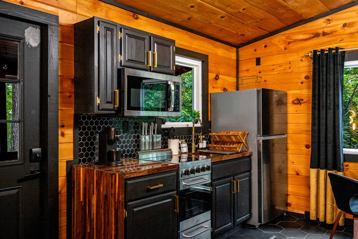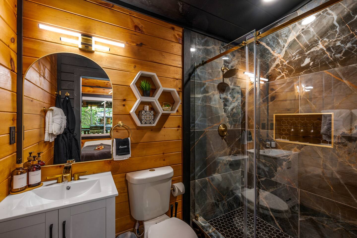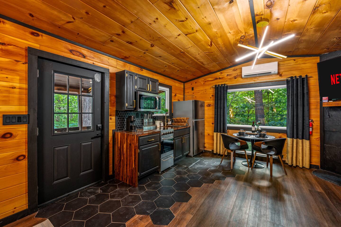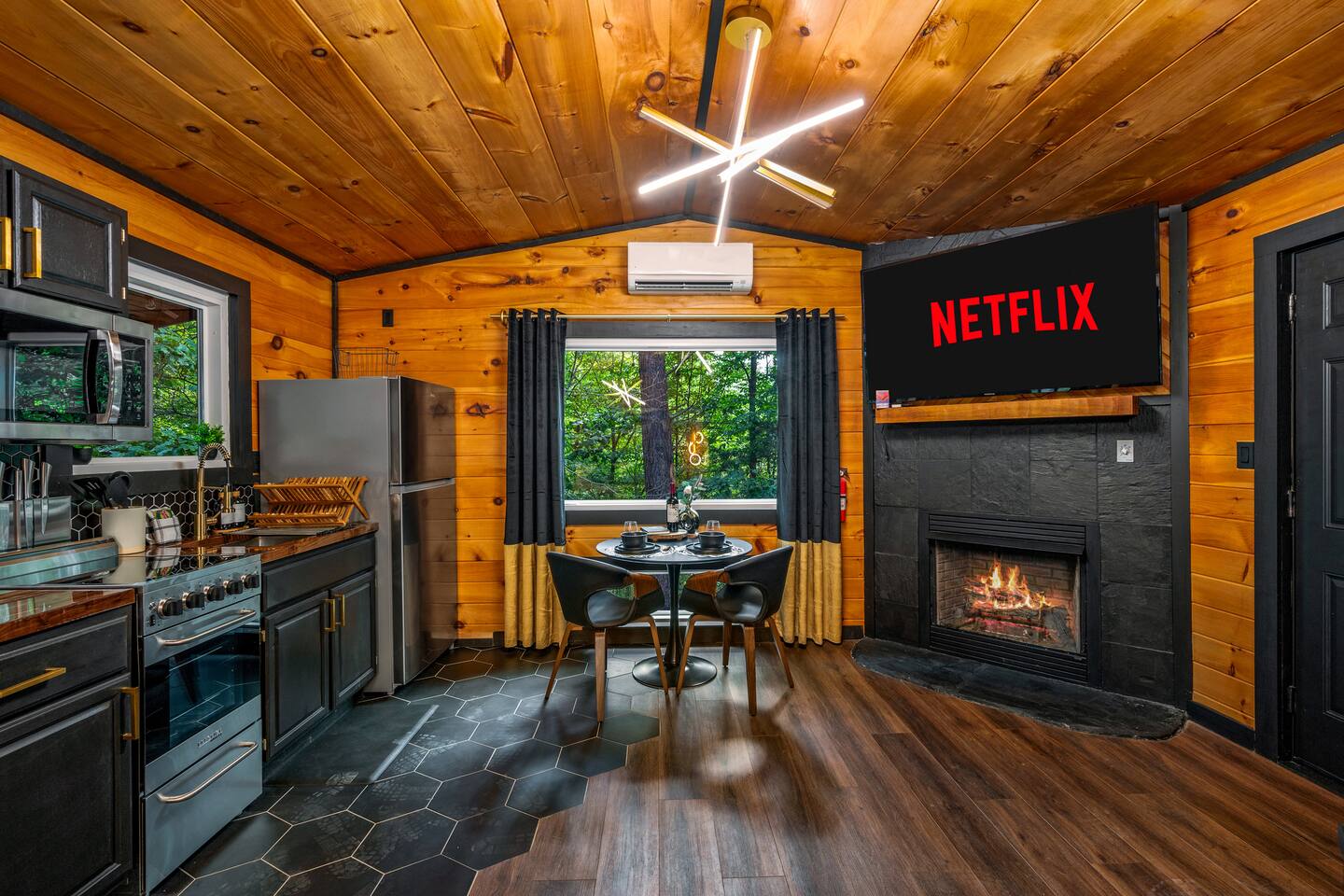 Welcome to Honey Mountain Resort, the perfect getaway for couples! Our five newly renovated luxury honeymoon cabins are thoughtfully designed to create an intimate and romantic atmosphere, ensuring you and your special someone can truly connect. Each cabin features its own private movie theater, hot tub pergola, fire pit, and convenient parking, allowing you to enjoy cozy evenings together under the stars. If your dream cabin is already booked, don’t worry—just click on my profile picture to explore our other enchanting options. We can’t wait to help you create unforgettable memories here at Honey Mountain Resort. Feel free to reach out with any questions; we’re here to assist you! The Forbidden Honey is a fully furnished 1 bed, 1 bath studio log cabin with a spacious yard that provides plenty of activities, such as: private theater room, personal hot tub pergola and fire pit. (All these amenities are for your exclusive use, NOT a shared space.) MAIN LIVING AREA: consists of a kitchen, dining table, 65” smart TV, propane fireplace, king bed, and a heart shaped jetted tub. KITCHEN: equipped with the essentials to cook a yummy meal, including a Keurig individual cup coffee maker with complimentary coffee pods. BATHROOM: fitted out with a large walk-in tile shower with dual shower head and complimentary shampoo, conditioner and body wash. You will also find cozy waffle bath robes for your comfort. FRONT DECK: you will find a gas fire table with comfy seating and a bbq. PRIVATE THEATER ROOM: can be found just steps from the front deck. The theater room consists of an 85” smart tv with a sound system, large chaise lounger, barstool eating table, electric fireplace, and popcorn machine. FIRE PIT: as you exit the cabin on the back side, you will find a lighted pathway that leads to a 2 seater bench swing with a fire pit, perfect for roasting some s’mores or just enjoying the nature! PERSONAL HOT TUB PERGOLA: as you continue down the lighted pathway, you will find a large pergola fitted out with a 65” tv, electric fireplace and private hot tub. Amenities Included: 🔥 Indoor Propane Fireplace 🪵 Wood Burning Fire Pit 🛁 Exclusive Outdoor Hot Tub 🫶🏼 Indoor Love Tub 🍔 BBQ 🔥Outdoor Propane Fire Table 📺 Smart TV 🎬 Free access to Netflix 🔊 WiFi 📽️ Private Theater Room 🚿Walk-in tile shower 🧴Shampoo, conditioner and body wash 👘 Bath Robes ☕️ Coffee Maker ♨️Microwave 💆♀️ Hair dryer 🛏 Plenty of towels, blankets and pillows
